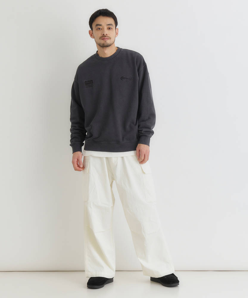 【仕様】シンプルながらも存在感のあるバックプリントが特徴のクルーネックプルオーバー。クルーネックとリラックスフィットが、動きやすさを確保しつつも、都会的な印象を与えます。【素材】 ピグメント加工のスウェットは、ウォーム感と柔らかさを兼ね備えています。通気性も良く、季節を問わず快適に着用できます。また、耐久性が高く長く愛用できるため、日常使いにも最適です。 【スタイリング】 カジュアルなパンツとの相性が抜群で、カジュアルな外出やリラックスした休日のおしゃれに最適です。シンプルなスニーカーやレザーシューズを合わせて、こなれたスタイルに仕上げましょう。シンプルなアクセサリーでアクセントを加えるのもおすすめです。