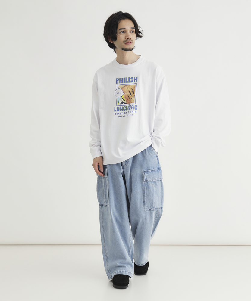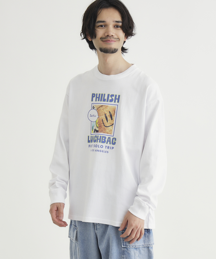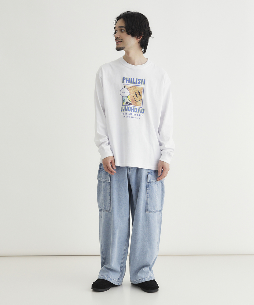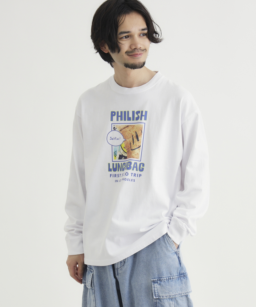 【仕様】【Philip Lunmbang】のイラストプリント、ロングスリーブTシャツです。手描きタッチのポップなグラフィックが、大人の休日にふさわしい遊び心とリラックスした印象に。身幅やアームホールにゆとりを持たせた旬のビッグシルエットで、袖を通すだけで現代的なストリートスタイルが完成します。【素材】「空紡糸」を使用しており、ざっくりとしたドライな肌触りとふっくらとしたボリューム感が特徴です。吸汗性と速乾性に優れ、汗ばむ季節も快適。洗濯を繰り返すことで、古着のような味わい深い風合いへと変化していく過程もお楽しみいただけます。【スタイリング】インパクトのあるバックプリントやフロントデザインを主役に、シンプルなデニムやカーゴパンツと合わせるだけで様になります。子供っぽくならないよう、あえてスラックスや革靴と合わせて都会的にハズすのも大人のテクニックです。肌寒い時期にはジャケットやブルゾンのインナーとして、アートワークをチラリと覗かせるアクセント使いもおすすめです。