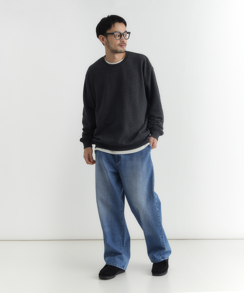 予約期間:12月10日(水)12:00~12月21日(日)23:59お届け予定:12月下旬(状況によりお届け時期が前後する場合がございます。)予約以外の商品を同時にお買い上げの場合、決済は別々になります。イベント、クーポン利用の対象外となります。店舗受け取りはご利用できません。裾上げ・ラッピング対象外となります。不良品以外の返品・交換はできかねます。撮影商品はサンプルを使用しているため、実際の商品仕様と異なる場合がございます。★予約特典★次回ECで使える500円OFFクーポンプレゼント!クーポンプレゼントは1注文につき1枚になります。クーポンの付与は12月29日を予定しており、マイページにお届けします。クーポンの有効期間は付与から1か月間になります。こんなに使えて¥1,980!!適度な厚さで快適!部屋着に見せない。大人の余裕を感じさせる「リラックスフィット」。■Point・何枚あっても使えるベーシックなデイリーウェアが¥1,980。・脱「部屋着」大人の余裕を感じさせる「リラックスフィット」。・裏毛仕様で春・秋・冬の3シーズン使える。・古着のような風合いで表情に深みがありのっぺりしない。・ぶ厚すぎない生地で「動きにくい」「暑すぎる」「肩が凝る」から解放。【仕様】トレンドのビッグシルエットが特徴のプルオーバーは、ストリートスタイルにもマッチするカジュアルな一着。シンプルながらも存在感のあるデザインが、様々なコーディネートに取り入れやすく、デイリーユースに最適です。【素材】 TC裏毛を使用し、肌触りは柔らかく通気性も抜群。軽やかな素材感が動きやすさを提供し、快適さを追求した仕上がり。普段着としてだけでなく、オフの日のお出かけにも活躍します。 【スタイリング】 ビッグシルエットの特性を活かし、少しオーバーサイズのパンツやデニムと合わせるのがおすすめ。シンプルなTシャツとのレイヤードスタイルで、洗練された印象を与えます。※こちらの商品はオンラインショップ、一部店舗での限定展開となります。また店頭での発売日と前後する可能性がございます。予めご了承下さい。