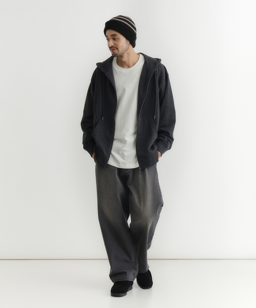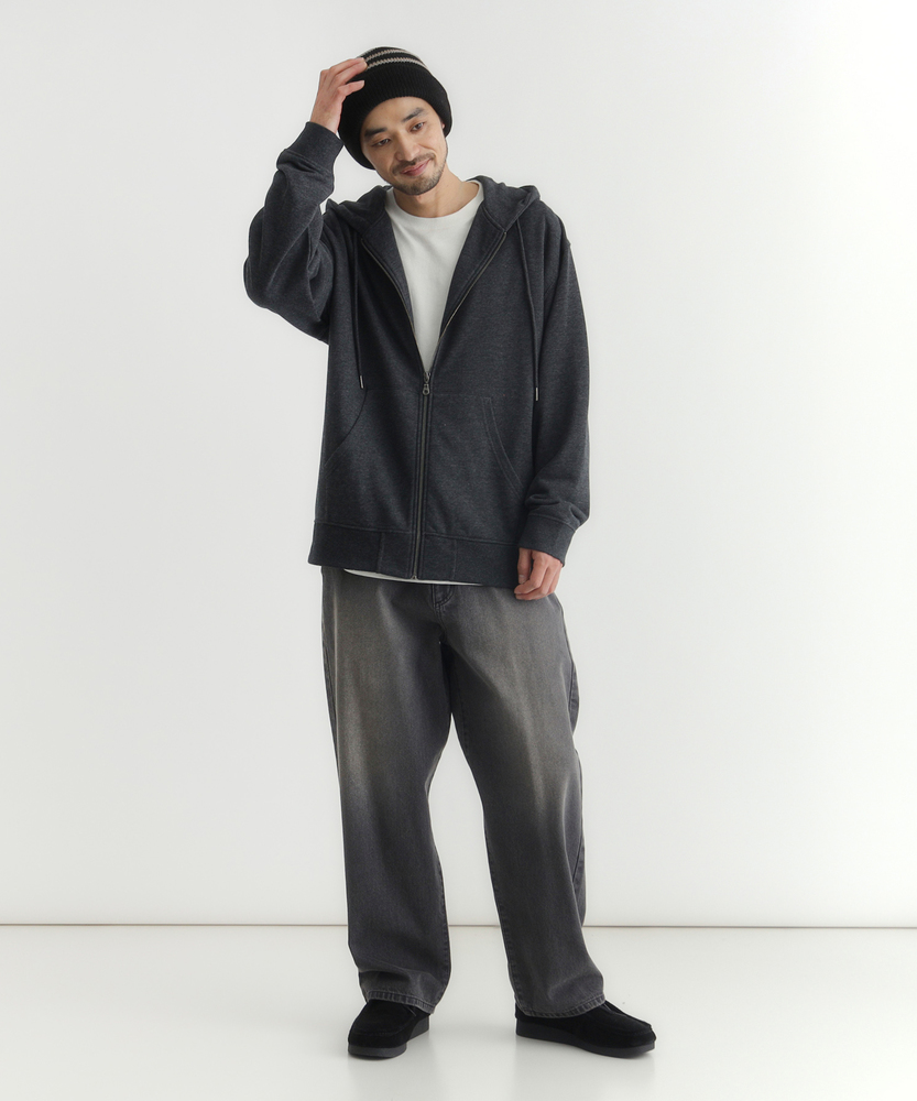 予約期間:12月10日(水)12:00~12月21日(日)23:59お届け予定:12月下旬(状況によりお届け時期が前後する場合がございます。)予約以外の商品を同時にお買い上げの場合、決済は別々になります。イベント、クーポン利用の対象外となります。店舗受け取りはご利用できません。裾上げ・ラッピング対象外となります。不良品以外の返品・交換はできかねます。撮影商品はサンプルを使用しているため、実際の商品仕様と異なる場合がございます。★予約特典★次回ECで使える500円OFFクーポンプレゼント!クーポンプレゼントは1注文につき1枚になります。クーポンの付与は12月29日を予定しており、マイページにお届けします。クーポンの有効期間は付与から1か月間になります。こんなに使えて¥2,990 !!適度な厚さで快適!部屋着に見せない。大人の余裕を感じさせる「リラックスフィット」。■Point・何枚あっても使えるベーシックなデイリーウェアが¥2,990。・脱「部屋着」大人の余裕を感じさせる「リラックスフィット」。・裏毛仕様で春・秋・冬の3シーズン使える。・古着のような風合いで表情に深みがありのっぺりしない。・ぶ厚すぎない生地で「動きにくい」「暑すぎる」「肩が凝る」から解放。【仕様】シンプルで着やすいフルジップパーカーは、どんなスタイルにもマッチする万能アイテム。前面のジップ仕様で着脱がしやすく、カジュアルからスポーティーまで幅広いシーンで活躍します。【素材】 柔らかなTC裏毛を使用しており、肌触りが良く、快適な着心地を実現。抜群の通気性と軽やかなフィット感で、普段使いに最適な一着です。長時間の着用でもストレスを感じません。 【スタイリング】 ゆったりとしたシルエットが特徴で、カジュアルなパンツと合わせるとバランス良くスタイリングが可能。タイトなインナーやシンプルなTシャツを重ね着することで、旬なレイヤードスタイルを楽しめます。キャップやアクセサリーで個性をプラスするのもおすすめです。 ※こちらの商品はオンラインショップ、一部店舗での限定展開となります。また店頭での発売日と前後する可能性がございます。予めご了承下さい。