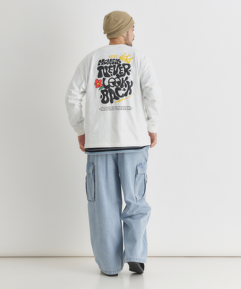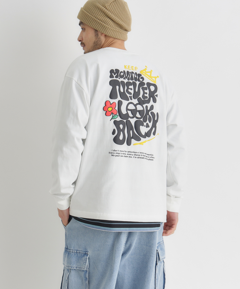 【仕様】立体的な質感が特徴の発泡プリントを採用し、フラットになりがちなカットソースタイルに豊かな表情と奥行きをプラスしました。グラフィティアートを彷彿とさせるポップなタイポグラフィは、配置やサイズ感にこだわり、モダンで洗練された印象に。背中で語るポジティブなメッセージが、大人の休日に適度な抜け感と遊び心を演出します。【素材】 肌に馴染む滑らかなタッチと、適度なハリ感を兼ね備えた上質な素材を使用しています。体のラインを拾いすぎない絶妙な肉厚感で、一枚着としても様になる頼もしさが魅力。繰り返しの着用でも型崩れしにくく、クリーンな見た目を長く保つことができるため、デイリーウェアとして気兼ねなくヘビーユースしていただけます。 【スタイリング】キャッチーなグラフィックを主役に、ボトムスはスラックスやきれいめのチノパンで引き締めるのが正解。あえてジャケットやカーディガンのインナーに投入し、Vゾーンからロゴを覗かせれば、こなれた大人のハズしテクニックが完成します。足元はレザーシューズで品良くまとめると、都会的で洗練されたストリート・ミックスを楽しめます。
