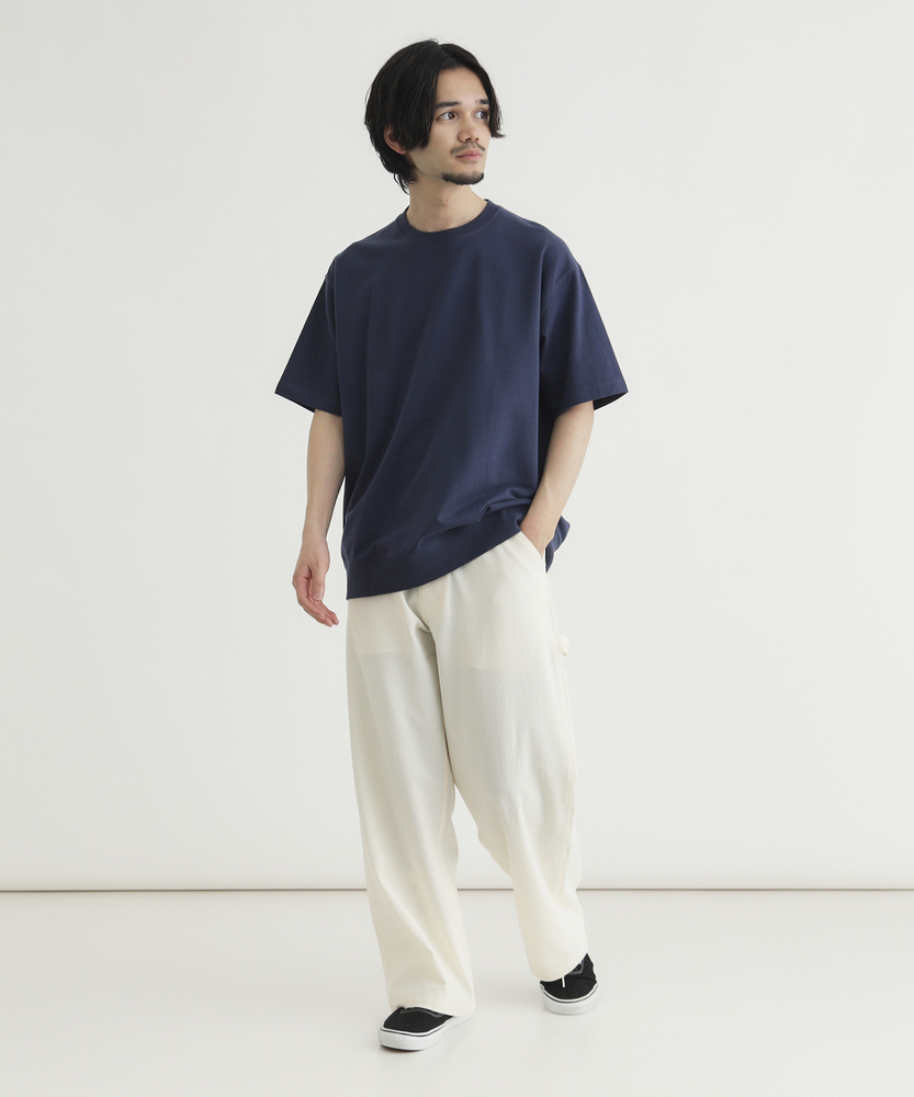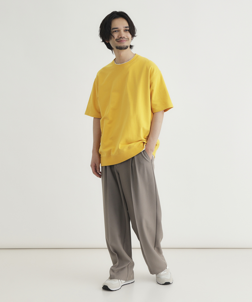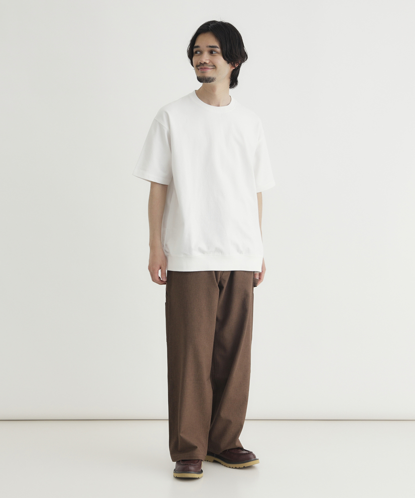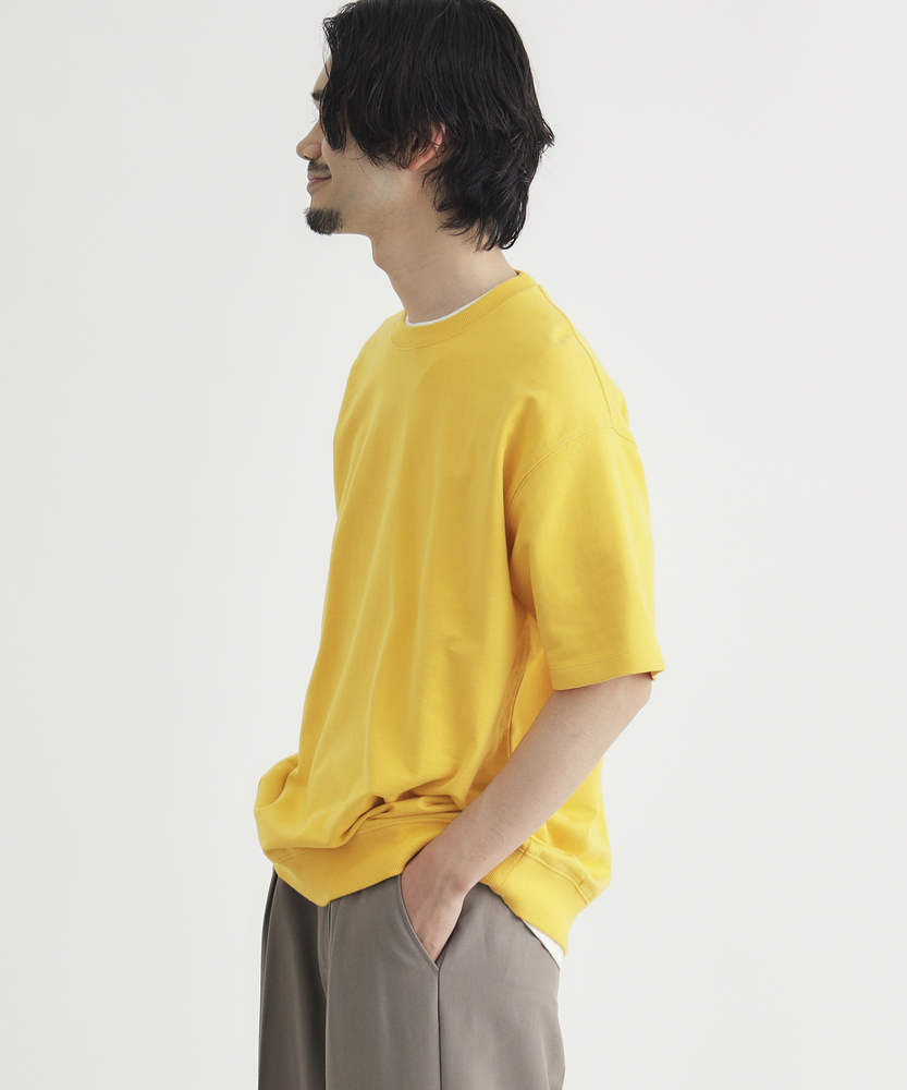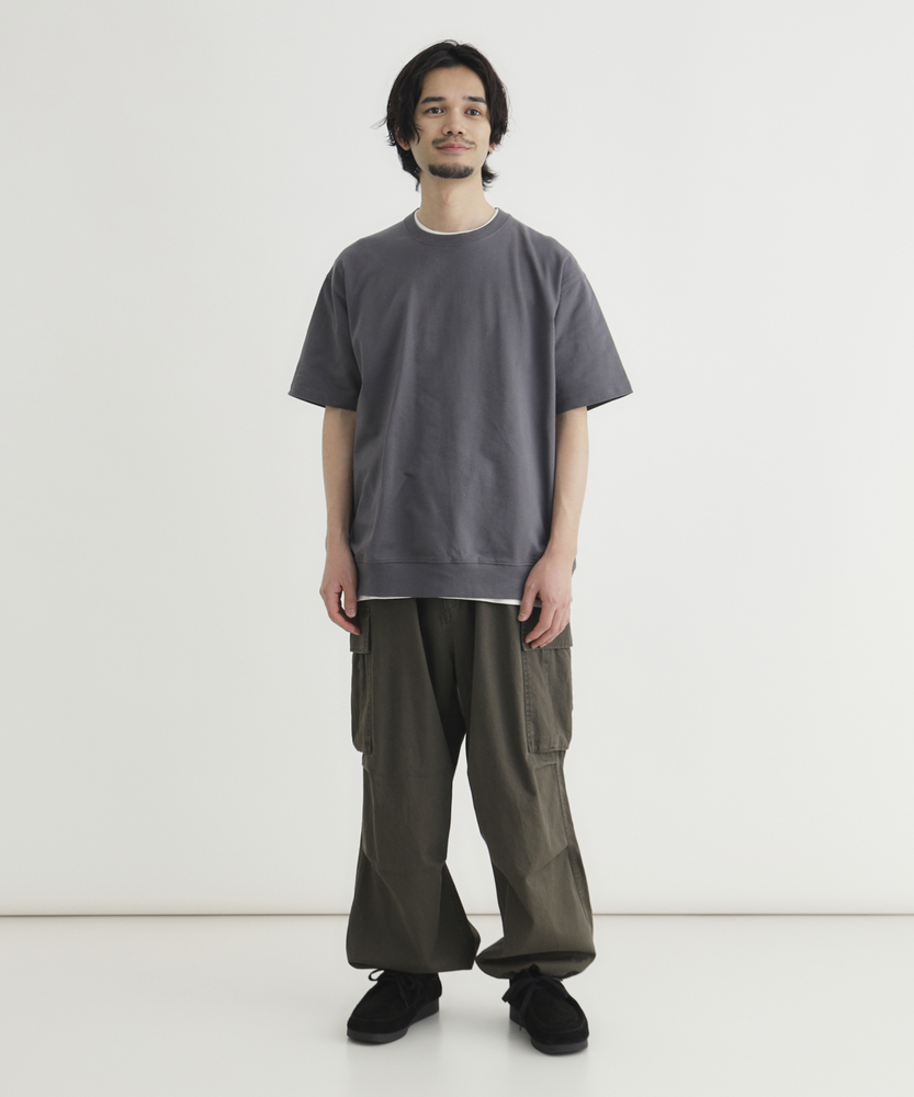 Tシャツの手軽さとスウェットのタフさを融合。一枚で着ても様になる「大人のための新定番」。理想の厚みを追求した、こだわりの素材感。■Point・独自開発の「インレイ素材」天竺より厚く、スウェットより薄い絶妙な生地感。しっかりとした肉厚感で安心の着心地です。・メリハリを生む「裾リブ」仕様腰回りがすっきりと収まるリブデザイン。だらしなく見えず、大人の品格を保ちます。・透けを気にせず「一枚で決まる」体のラインを拾いすぎない程よいハリ感。インナーを気にせず、夏場も堂々と着られます。・毎日着たくなる「タフさ」洗濯を繰り返しても型崩れしにくい耐久性。吸汗性にも優れ、汗ばむ季節も快適です。・現代的な「ヴィンテージ・ルック」古き良き半袖スウェットをモダンに再構築。シンプルながらも存在感のある佇まいです。・着回し力抜群の「カラー展開」ベーシックな色からアクセントカラーまで。色違いで揃えたくなる豊富なバリエーション。【仕様】Tシャツの気軽さに、スウェットのようなディテールを取り入れたハイブリッドなデザインです。最大の特徴である「裾リブ」は、着用時のシルエットに自然な丸みを持たせ、腰回りをすっきりと見せる効果があります。シンプルなクルーネックながらも、リラックス感のあるシルエットで、一枚着るだけでこなれた印象を演出します。【素材】「丁度いい肉厚感」を実現するために一から生地を作りました。一般的なTシャツ生地よりも厚みがあり、スウェットよりも薄手で軽やかな「インレイ素材」を使用しています。吸汗性に優れ、しっかりとした質感は型崩れしにくく、長く愛用できるタフさが魅力です。肌触りも良く、シーズンレスで活躍する素材感です。【スタイリング】デニムやカーゴパンツと合わせた王道のアメカジスタイルはもちろん、スラックスやイージーパンツと合わせれば、大人の休日スタイルが完成します。裾リブのおかげで着丈のニュアンス調整がしやすく、ワイドパンツとも好相性。一枚での着用はもちろん、シャツとのレイヤードなど、Tシャツ以上スウェット未満の汎用性の高さが楽しめます。【BACK NUMBER】ワーク・ミリタリーといったアメリカンカジュアルを根幹に、古き良きヴィンテージウェアの魅力を受け継ぎながらも、現代のライフスタイルや着こなしに合わせた素材・シルエットで再構築した、【Re-Vintage】をコンセプトに掲げるブランド。