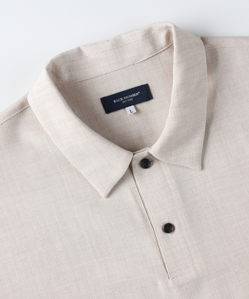 大人の余裕を感じさせる、清涼リラクシング。麻のような風合いで、夏の装いを格上げ。ルーズ過ぎない、計算された洗練シルエット。■Point・清涼感あふれる麻のような風合い。サラッとした心地よい肌触り。汗ばむ季節も快適に過ごせます。見た目にも涼しげな印象を与えます。・大人の抜け感を演出するシルエット。ゆったりとしたドロップショルダー。リラックス感のある着心地を実現。体型をさりげなくカバーします。・だらしなく見せない、裾リブ仕様。裾が適度にまとまるリブデザイン。ルーズになりすぎず上品な印象に。メリハリのあるスタイルを作ります。・ヴィンテージ感漂うディテール。ブランドのルーツを感じる仕上がり。シンプルながらも奥行きのある表情。着るほどに愛着が湧く一枚です。・落ち着いたトーンのカラー展開。着回し力の高いベーシックな色合い。どんなボトムスとも相性抜群です。手持ちのアイテムにすっと馴染みます。・デイリーユースに嬉しい扱いやすさ。気兼ねなく日常使いできるタフさ。お手入れのしやすさも魅力の一つ。毎日つい手に取りたくなる一枚。【仕様】ゆったりとしたドロップショルダーが特徴的な、リラックス感あふれるポロシャツです。身幅にゆとりを持たせつつも、裾をリブ仕様にすることで、ルーズになりすぎない大人のシルエットを構築。ヴィンテージウェアのディテールを現代風にアップデートし、シンプルながらも洗練されたモダンな印象を与えます。【素材】麻のようなシャリ感と清涼感を持ち合わせた、ドライなタッチの生地を使用しています。汗ばむ季節でも肌離れが良く、サラッと快適な着心地をキープ。見た目にも涼しげで、上品な風合いが魅力です。デイリーに気兼ねなく着用できるタフさも兼ね備えており、長く愛用していただけます。【スタイリング】細身のテーパードパンツやスラックスと合わせれば、都会的でクリーンな大人カジュアルが完成します。休日のリラックススタイルには、ワイドパンツやショートパンツを合わせて抜け感をプラスするのがおすすめ。足元はレザーサンダルやローファーで引き締めると、より洗練された印象に仕上がります。【BACK NUMBER】ワーク・ミリタリーといったアメリカンカジュアルを根幹に、古き良きヴィンテージウェアの魅力を受け継ぎながらも、現代のライフスタイルや着こなしに合わせた素材・シルエットで再構築した、【Re-Vintage】をコンセプトに掲げるブランド。