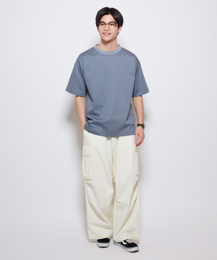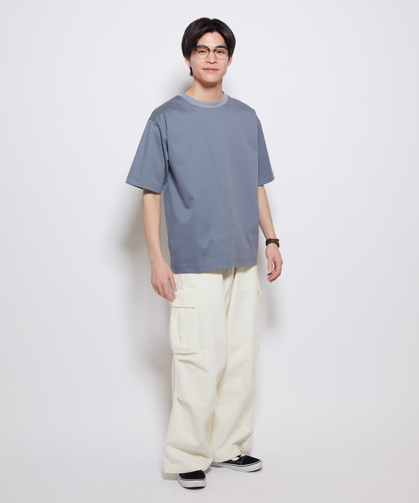 上品な光沢が「大人」を格上げする。Tシャツ以上、シャツ未満の清潔感。滑らかな肌触りのシルケットTシャツ。■Point・大人のための「上品な光沢感」シルケット加工による微光沢が、カジュアルなTシャツをドレッシーな印象へ昇華させます。毛羽立ちのないクリアな表面感が、着る人の品格を高めます。・「滑らか」で快適な肌触り素肌に直接触れるものだからこそ、こだわり抜いたスムースコットン100%。しっとりと肌に馴染む、極上の着心地をお楽しみください。・一枚で決まる「絶妙なゆるさ」タイト過ぎず、大き過ぎない「ややゆったり」としたシルエット。身体のラインを拾いにくく、リラックス感がありながらもスマートに見せます。・「ヨレにくい」端正な首元太めのリブ幅で首元をしっかりとホールドし、だらしなさを回避。顔周りが引き締まり、ジャケットのインナーとしても最適です。・汗ばむ季節も「サラッと」清潔コットン特有の吸湿性と、加工による接触の良さが融合。暑い日でもベタつきにくく、涼やかで清潔な印象をキープします。・オンオフ使える「高い汎用性」休日のラフなスタイルから、ビジネスカジュアルまで対応可能。シンプルだからこそ、素材の良さが際立つ一着です。【仕様】装飾を削ぎ落としたミニマルなクルーネックデザイン。肩肘張らないリラックスしたサイズ感ながら、計算されたカッティングにより、だらしなく見えない都会的なシルエットを実現しました。首元のリブは程よい厚みを持たせ、一枚着としての存在感と耐久性を両立させています。【素材】綿100%のスムース生地に、シルクのような光沢を与える「シルケット加工」を施しました。一般的なTシャツに見られる表面の毛羽立ちを抑え、つるりとした滑らかな質感に仕上げています。見た目の高級感だけでなく、肌離れの良さと柔らかさを兼ね備えた、大人のための上質素材です。【スタイリング】スラックスやチノパンと合わせれば、清潔感のあるキレイめカジュアルが完成します。画像のようにホワイト系のボトムスと合わせることで、爽やかでモダンな印象に。質感に高級感があるため、ジャケットやカーディガンのインナーに差し込んでもカジュアルになりすぎず、上品にまとまります。【BACK NUMBER】ワーク・ミリタリーといったアメリカンカジュアルを根幹に、古き良きヴィンテージウェアの魅力を受け継ぎながらも、現代のライフスタイルや着こなしに合わせた素材・シルエットで再構築した、【Re-Vintage】をコンセプトに掲げるブランド。