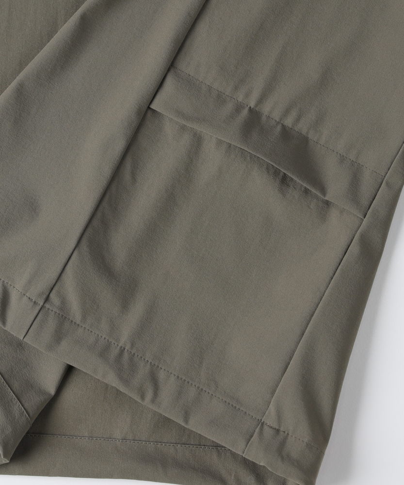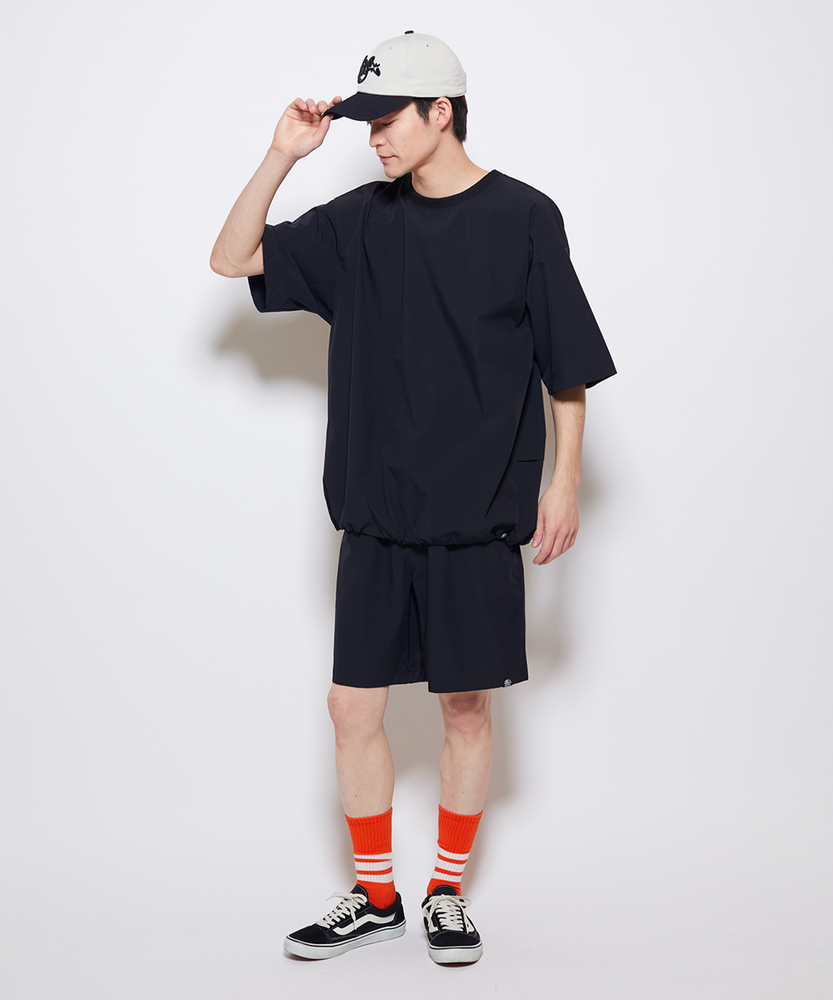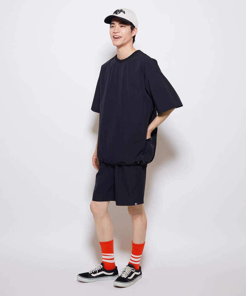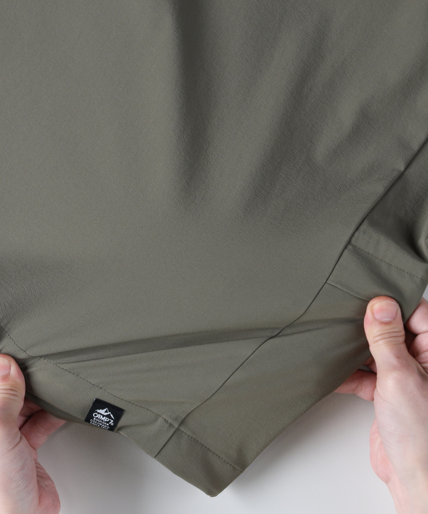 「ただのTシャツ」を超えた、大人の機能美。シルエットが変わる、都会派テックウェア。夏を制する「接触冷感」と「圧倒的な収納力」。■Point・変幻自在のシルエット。裾のドローコードを絞れば、バルーンシルエットに。その日の気分やボトムスに合わせて、フォルムの変化を楽しめます。1枚で着ても「単調にならない」大人の遊び心を演出。・手ぶら派に嬉しい収納力。脇下にはサイドポケットを配置。スマホや鍵など、ちょっとした小物をサッと収納可能。バッグを持たずに身軽に出かけたい、休日のスタイルに最適です。・「夏に負けない」多機能素材。触れた瞬間にひんやりとする「接触冷感」機能を搭載。さらに急な雨や水辺のレジャーにも対応する「耐久撥水」も装備。蒸し暑い季節も、ドライで快適な着心地をキープします。・ストレスフリーな着心地。縦横に伸びるストレッチ素材を採用し、動きやすさは抜群。ゆったりとした身幅設定で、肌への張り付きも軽減。リラックスしたい時間も、アクティブに動く日も快適です。・大人に似合うマットな風合い。ナイロン特有のスポーティさを残しつつ、ワッシャー加工で表情をプラス。微細なシワ感が「こなれた」雰囲気を醸し出します。光沢を抑えたドライタッチな質感は、洗練された印象を与えます。・タフに使える耐久性。擦れに強い「耐摩耗」性も備えたタフな仕上がり。アウトドアやキャンプなど、ハードなシーンでも気兼ねなく着用可能。日常着としてガシガシ着回せる頼もしい1着です。【仕様】一見するとミニマルなオーバーサイズTシャツですが、細部に機能的なディティールを凝縮しました。ドロップショルダーのリラックスしたサイジングが、今の空気感を演出。裾のドローコードやサイドポケットなど、ギアのような実用性をファッションに落とし込んでいます。【素材】ナイロンとポリウレタンを混紡した、高機能なテック素材を使用しています。「耐久撥水」「ストレッチ」「耐摩耗」「接触冷感」という4つの機能を搭載し、日常生活からアウトドアまで幅広くカバー。ソフトなワッシャー感のある生地は肌離れが良く、汗ばむ季節でも爽やかに過ごせます。【スタイリング】ドローコードを絞らずにワイドパンツと合わせれば、リラックス感のあるストリートスタイルに。裾を絞ってふくらみを持たせ、ショーツや細身のパンツと合わせればメリハリのあるスポーティな印象に仕上がります。テック系のパンツと合わせたセットアップ風の着こなしも、モダンで洗練された雰囲気が楽しめます。【CAMP7】CAMP7は、1971年アメリカ合衆国コロラド州ボルダーにて設立されたブランド。ロッキー山脈に集まる世界中のクライマーたちの要望に応え、常にハイクオリティな商品を開発・提供してきました。流行に左右されず、機能を追い求める姿勢が、古き良き時代のアメリカ製品として、愛好家たちの間で支持を受けています。 【セットアップで着用可能なアイテムはこちら】CP26101200065 【PLAY PROOF】アクティブショートパンツ/セットアップ対応