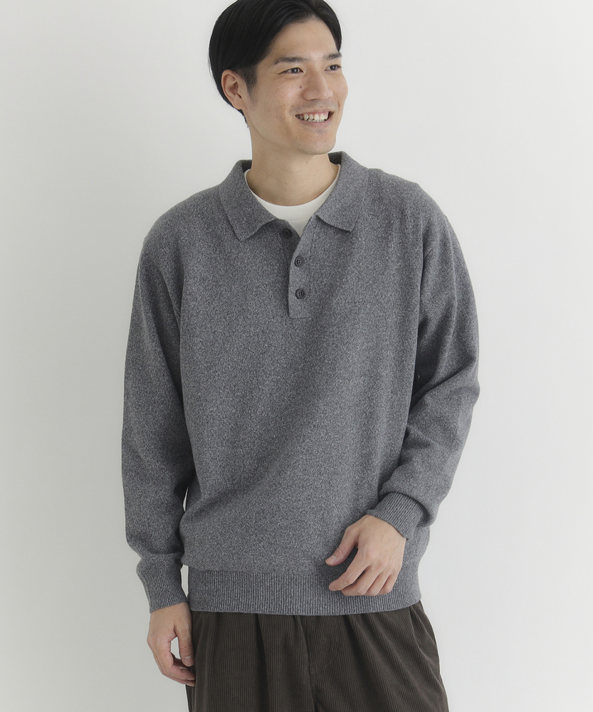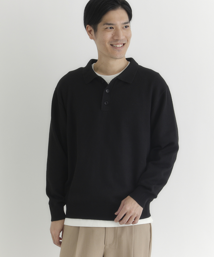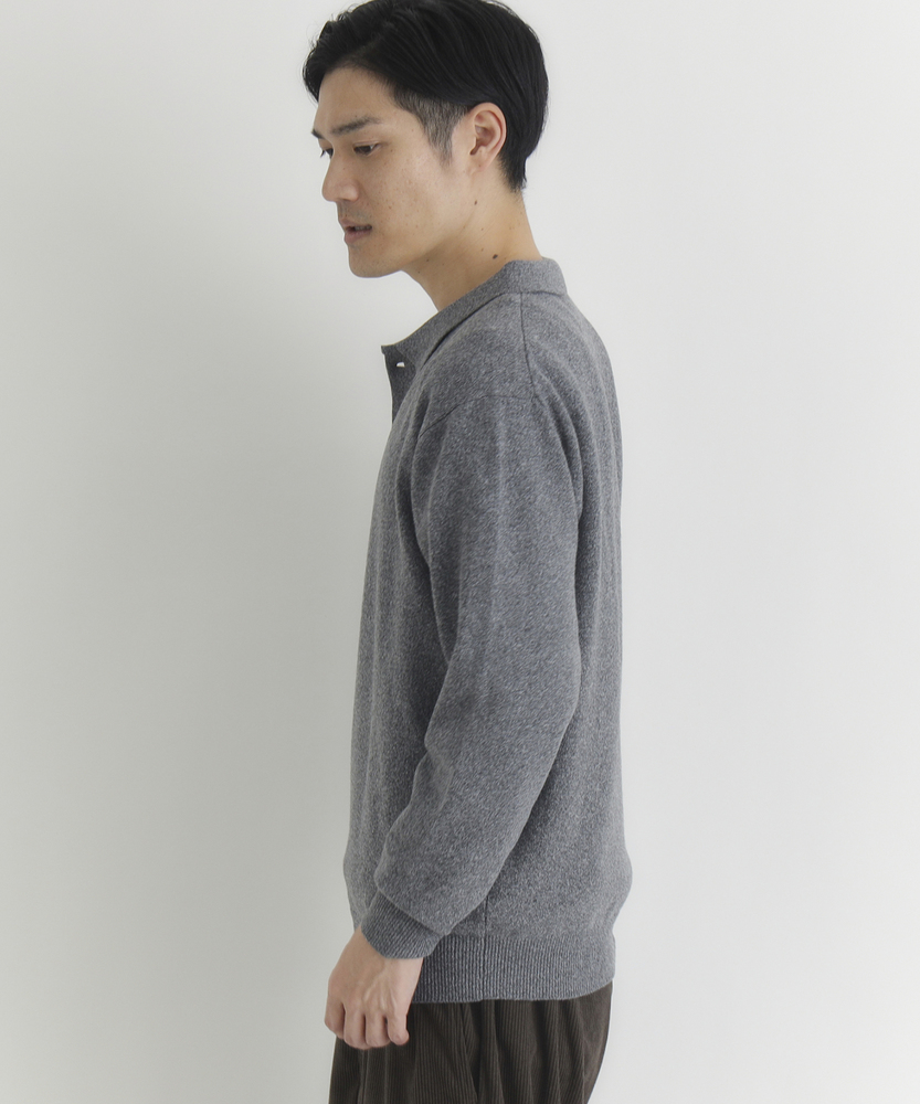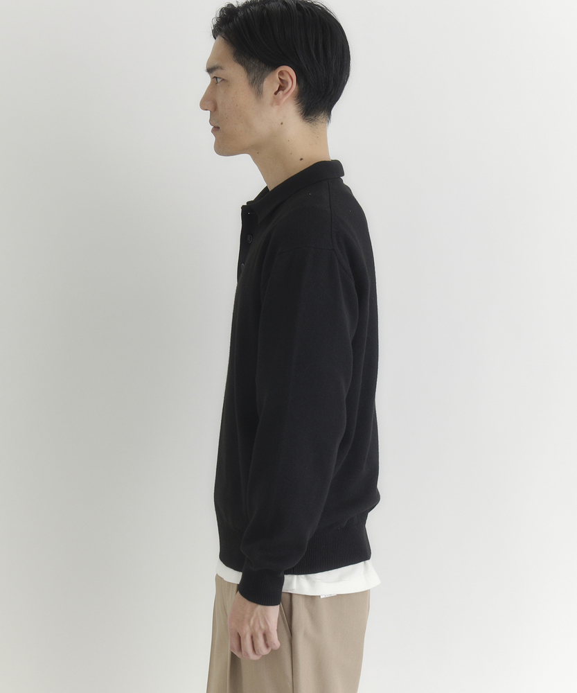 【仕様】衿付きポロの端正な顔立ちに、3つボタンの前立てが上品さを添えます。ややゆとりのあるボックスシルエットとリブ裾で体形を拾いすぎず、単体でもレイヤードでも都会的に整う一着です。【素材】 ポリ×ナイロンのニットは軽さと程よい伸縮性が両立し、滑らかな表面と復元性で型崩れしにくいのが特長。扱いやすく耐久性も高め、長く日常に寄り添います。 【スタイリング】 テーラードのインに合わせて衿を覗かせれば端正なオフィスカジュアルに。デニムやテーパードトラウザーと合わせ、前だけ軽くインして全体のバランスを整えるのがおすすめです。