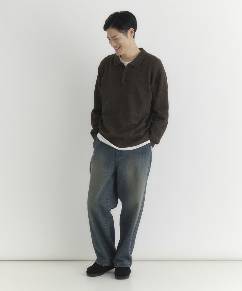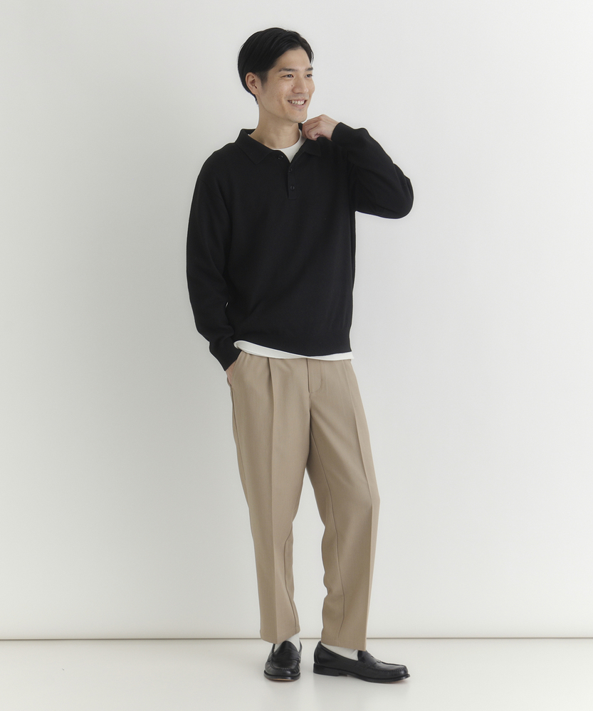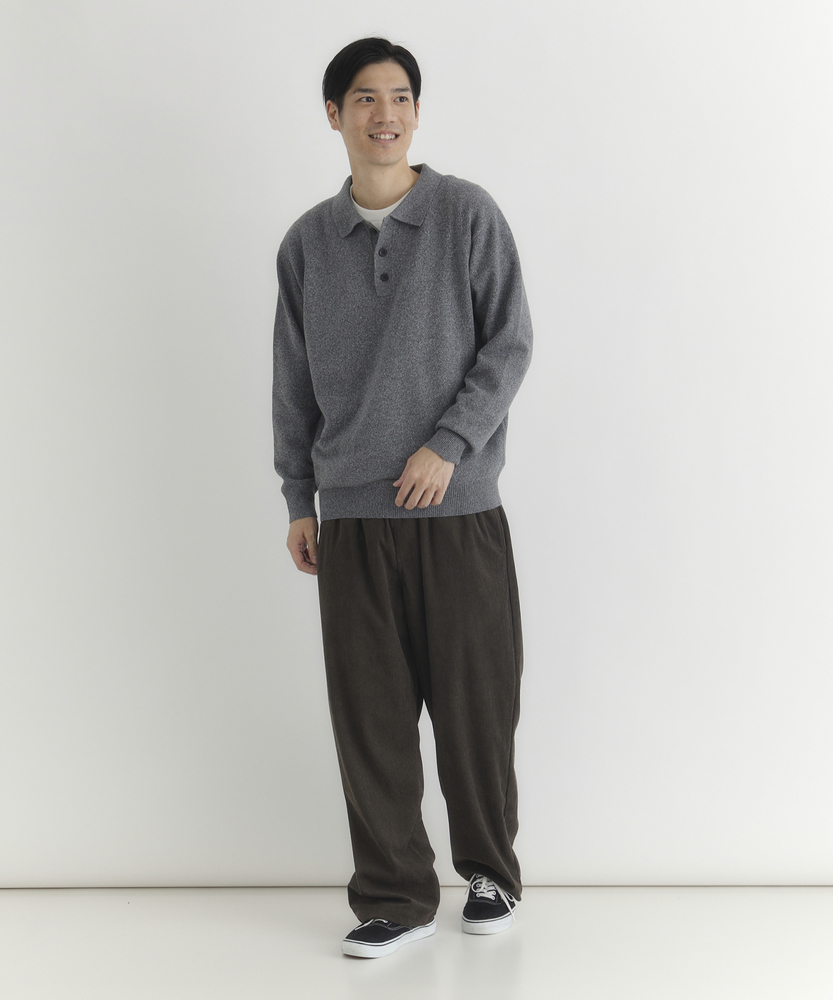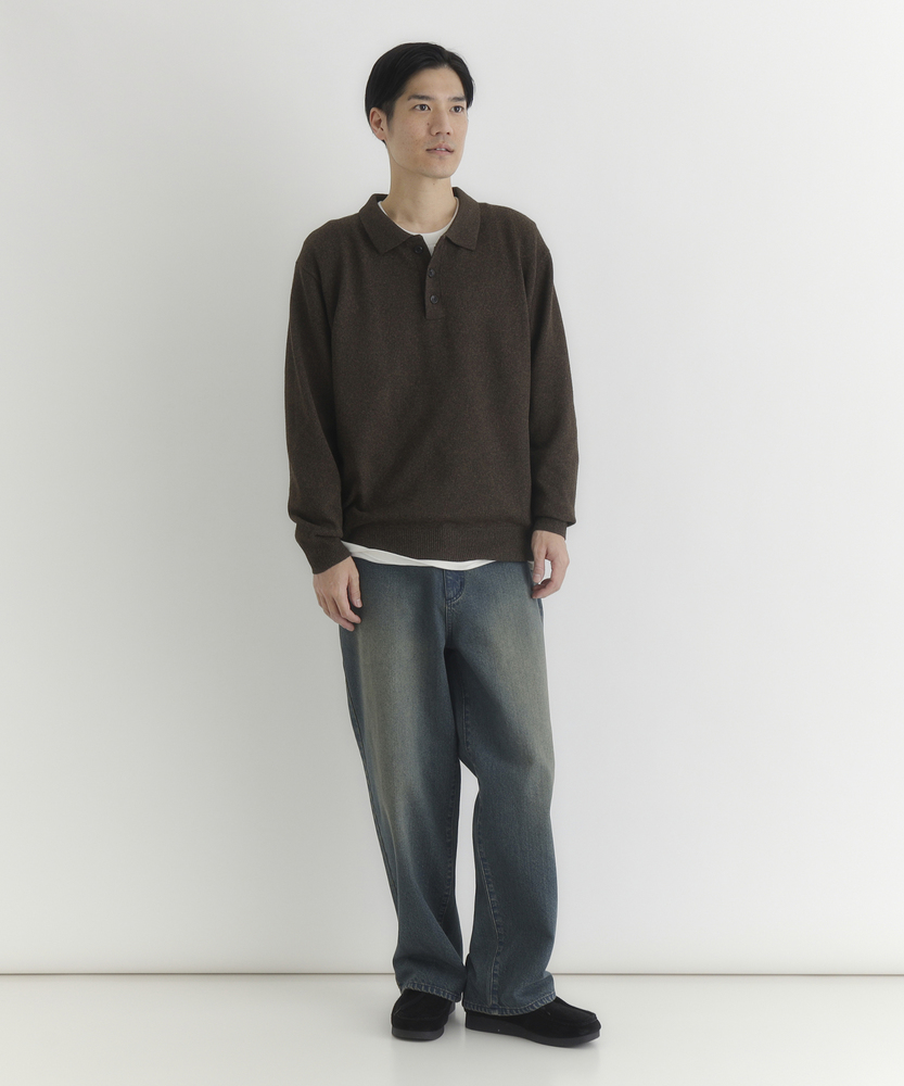 【仕様】衿付きポロの端正な顔立ちに、3つボタンの前立てが上品さを添えます。ややゆとりのあるボックスシルエットとリブ裾で体形を拾いすぎず、単体でもレイヤードでも都会的に整う一着です。【素材】 ポリ×ナイロンのニットは軽さと程よい伸縮性が両立し、滑らかな表面と復元性で型崩れしにくいのが特長。扱いやすく耐久性も高め、長く日常に寄り添います。 【スタイリング】 テーラードのインに合わせて衿を覗かせれば端正なオフィスカジュアルに。デニムやテーパードトラウザーと合わせ、前だけ軽くインして全体のバランスを整えるのがおすすめです。