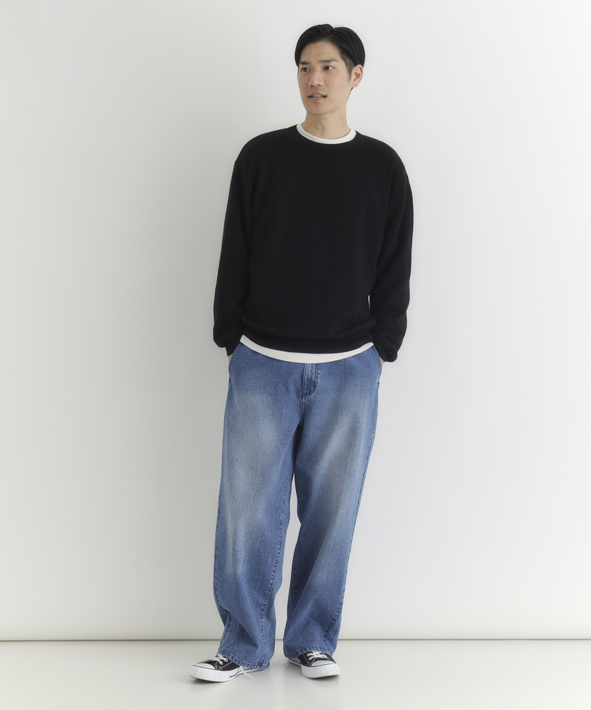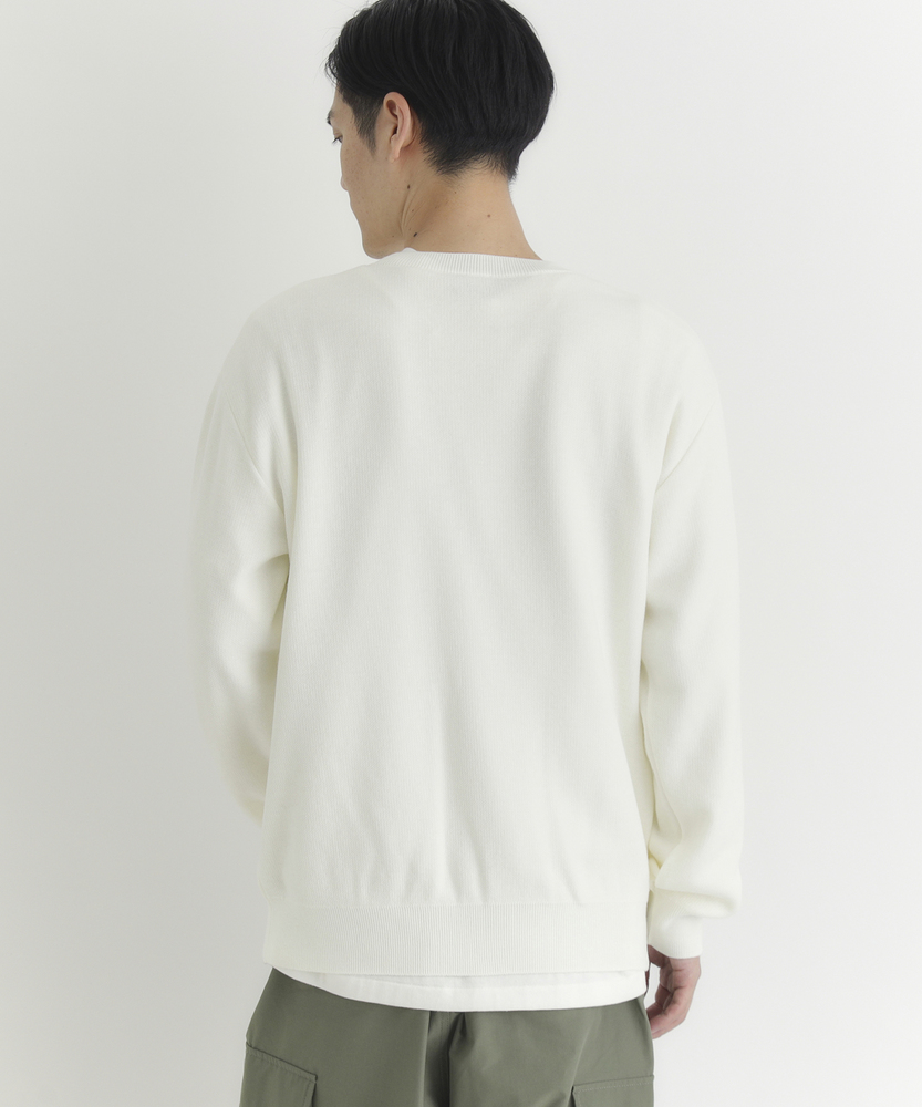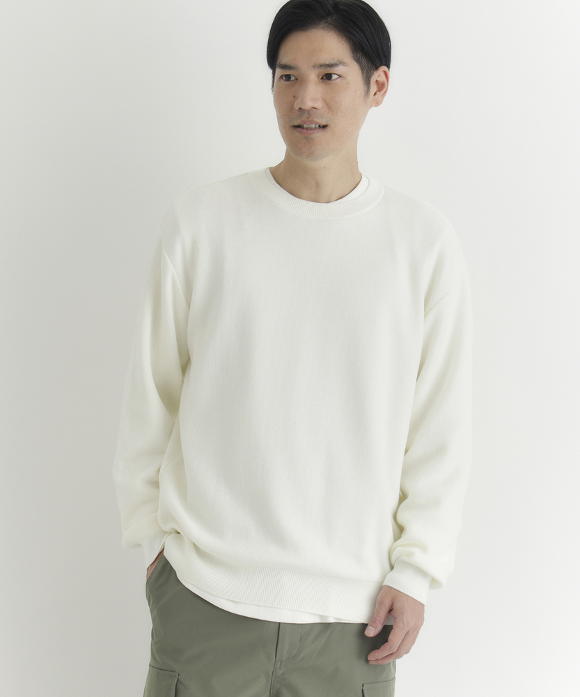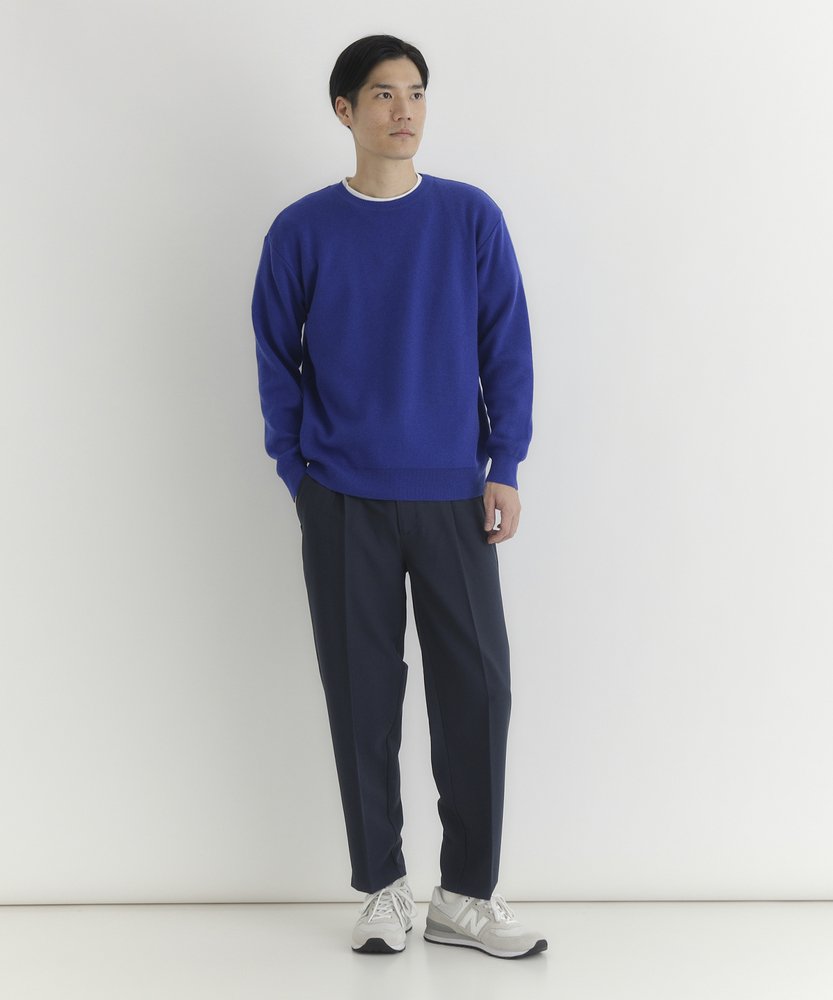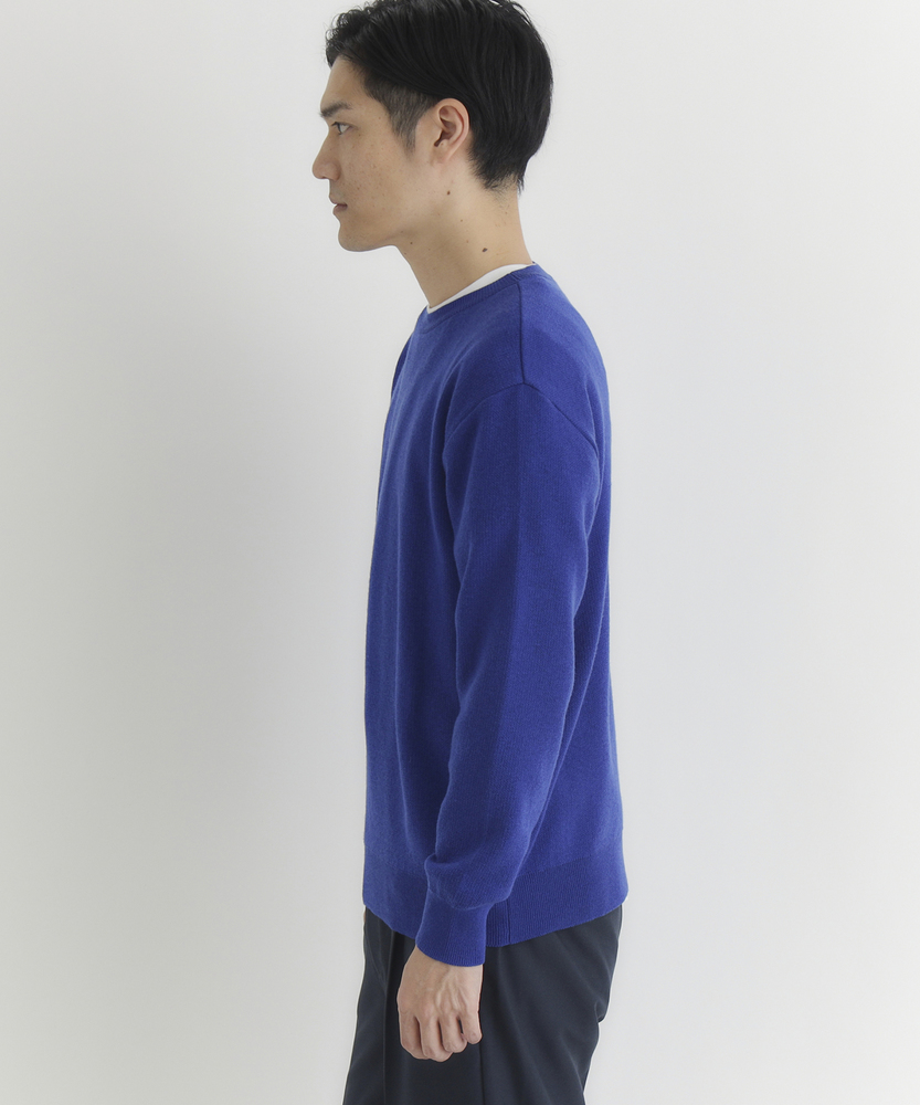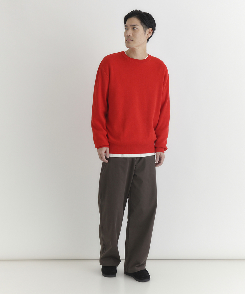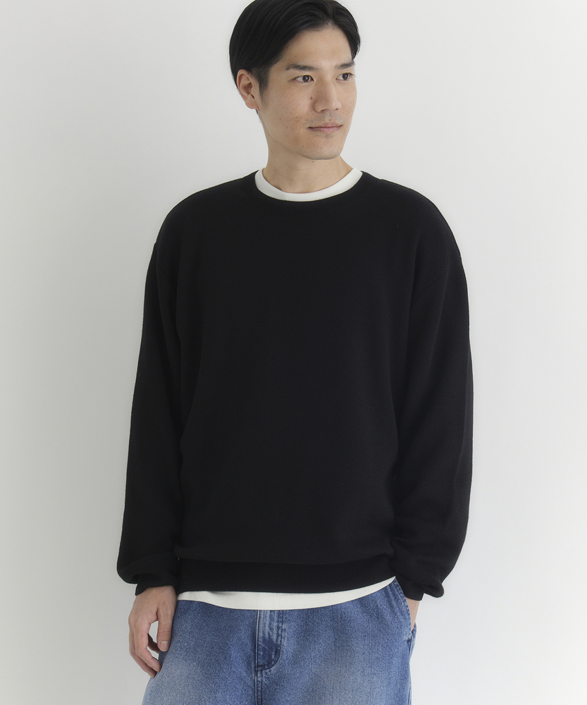 【仕様】クルーネックのミニマルな表情に、程よくゆとりをもたせたボックスシルエット。肩の落ち感が力まず今どきの抜けを作り、リブで程よく引き締める仕立て。日本製の丁寧な縫製が長く着られる佇まいを約束します。【素材】 しなやかで程よい厚みのニットが、身体のラインを整えつつ窮屈さを与えません。型崩れしにくく保温性も備え、季節の変わり目にも活躍。肌触りは滑らかでレイヤードにも映える上品な表情です。ケアもシンプルで日常の頼れる相棒に。 【スタイリング】 シャツやカットソーと合わせたレイヤードで都会的な表情に。テーパードパンツやデニムで洗練されたカジュアルに昇華し、レザーシューズで引き締めるとビジネス感も自然に演出できます。週末のリラックスからオフィスまで幅広く対応。
