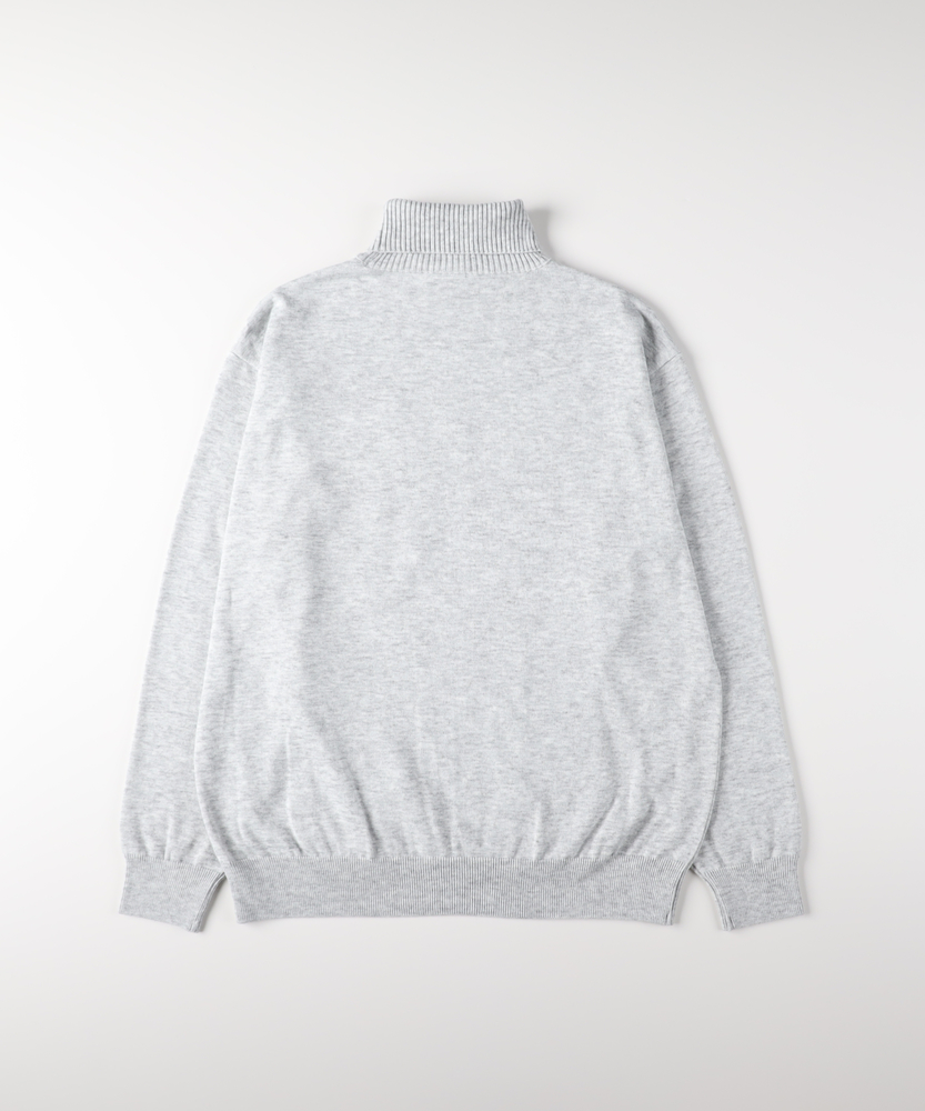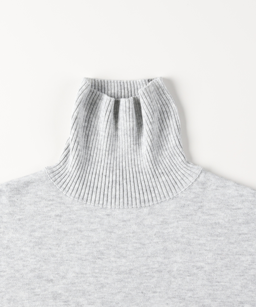 【仕様】首元を美しく見せる程よく高さのあるリブタートルと、肩の落ちるリラックスシルエットを合わせた一着。裾と袖口に施したリブが表情を整え、ミニマルながら都会的な存在感を生み出します。折り返してもしっかり収まるネックは、ジャケットのインナーから単体着用まで幅広く活躍します。【素材】 日本の編み立て技術で仕上げた滑らかな目面は、程よい厚みで保温性と通気性のバランスに優れます。伸縮性のあるリブは着脱やレイヤードで型崩れしにくく、長く清潔感を保てる仕上がりです。家庭でのケア性も考慮した編みと縫製により、日常の着回しに適した扱いやすさを実現しています。 【スタイリング】 クリーンなネックラインを生かしてチェスターやコートのインナーに、ボトムはテーパードスラックスで都会的に。休日はワイドデニムと合わせて程よいリラックス感を出し、革靴やレザーシューズで引き締めるのが洗練の鍵です。
