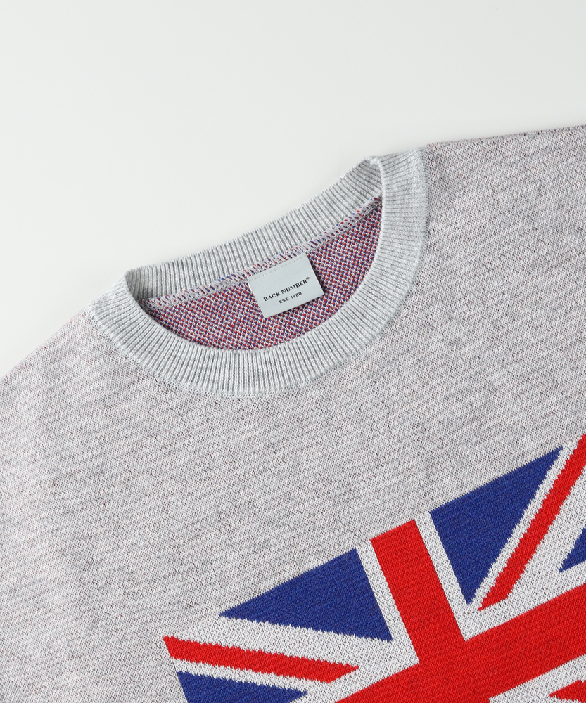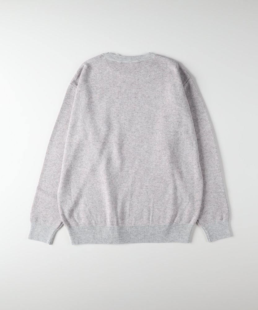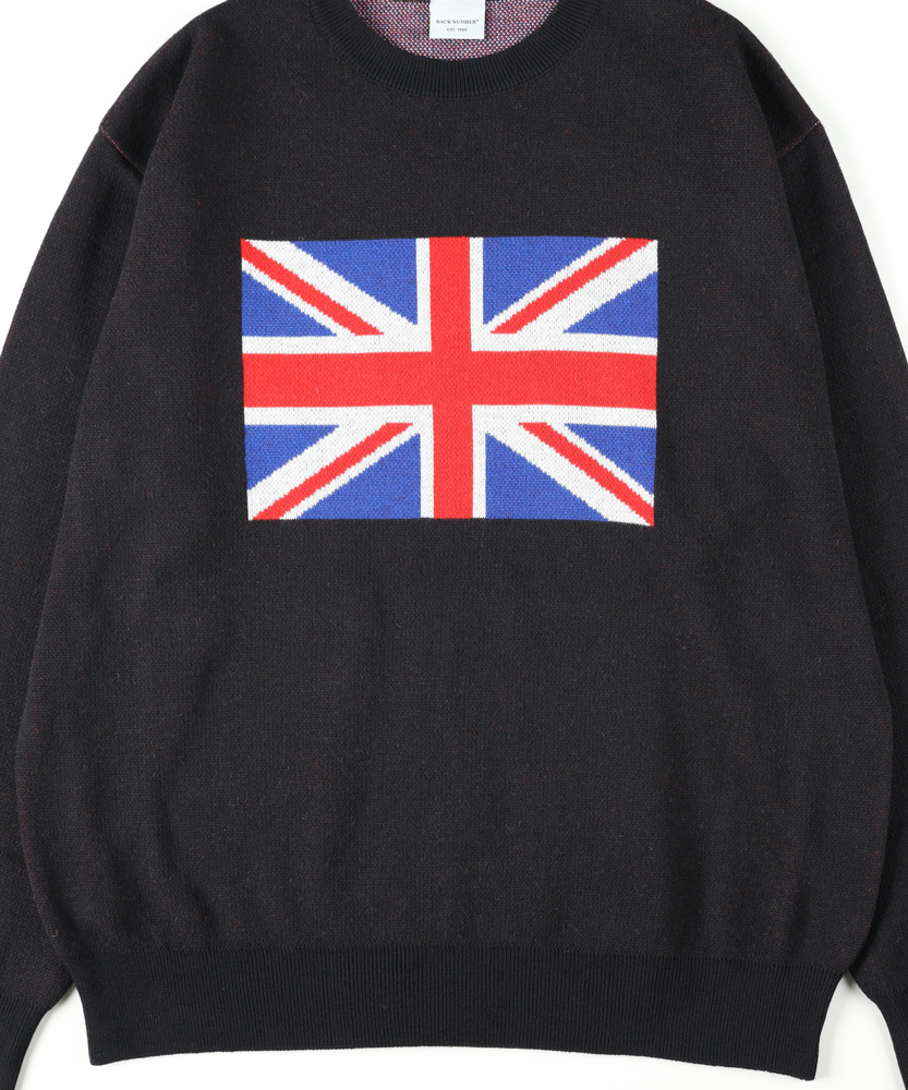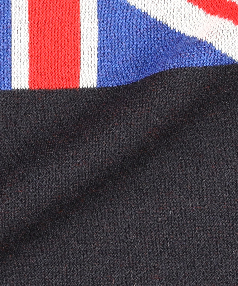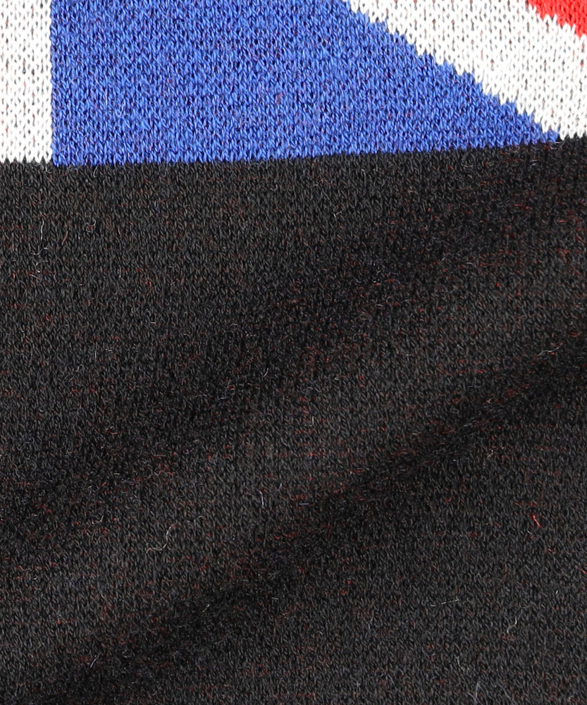 【仕様】クルーネックのボックスシルエットに国旗をモチーフのワンポイントで配した一着。ドロップショルダーで肩線を落とし、リブで袖口と裾を引き締めたバランスは、品のあるカジュアル感を演出します。幅広いシーンで長く愛用できる普遍的な佇まいです。【素材】 国内のニッティング技術で編み上げたジャカードは柄の表現が鮮明で立体感がありながら、柔らかな肌触りと適度な保温性を両立。目面の整った編み立てで型崩れしにくく、デイリーに扱いやすい耐久性も備えています。手入れ感も良く長時間の着用でも疲れにくい仕上がりです。 【スタイリング】 柄が中央に効いているため、クリーンなシャツを襟元から覗かせたレイヤードで知的に。テーパードパンツで裾まわりをすっきりまとめ、ローファーやレザーシューズで軽く引き締めると都会的な佇まいに。週末のカジュアルからジャケット合わせまで幅広く活躍します。