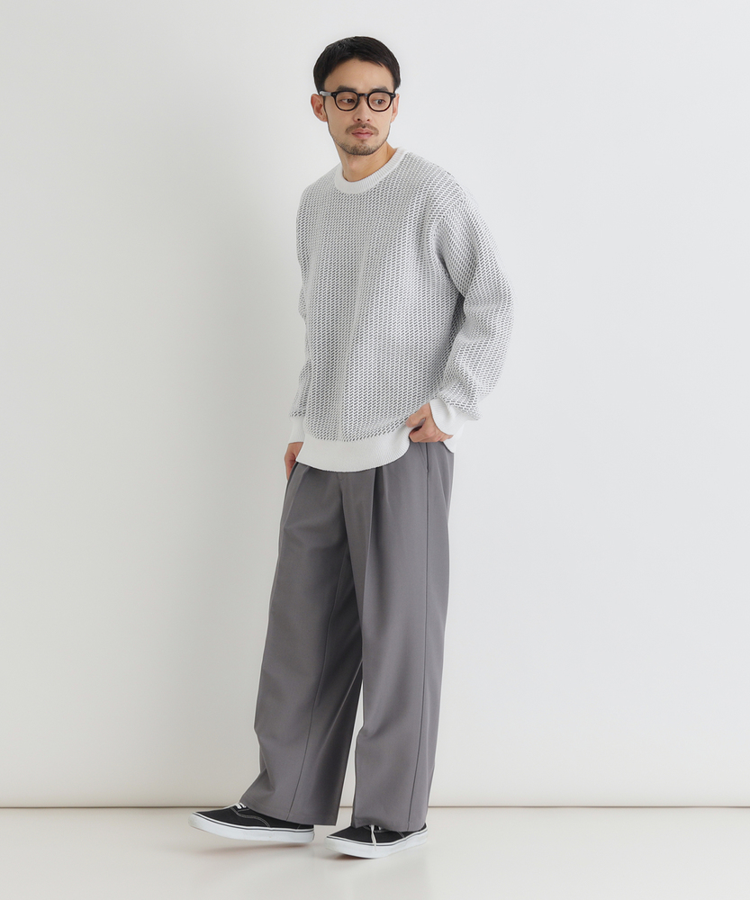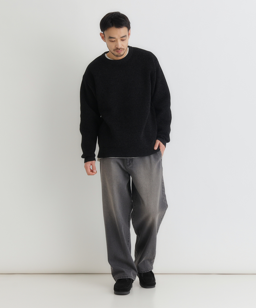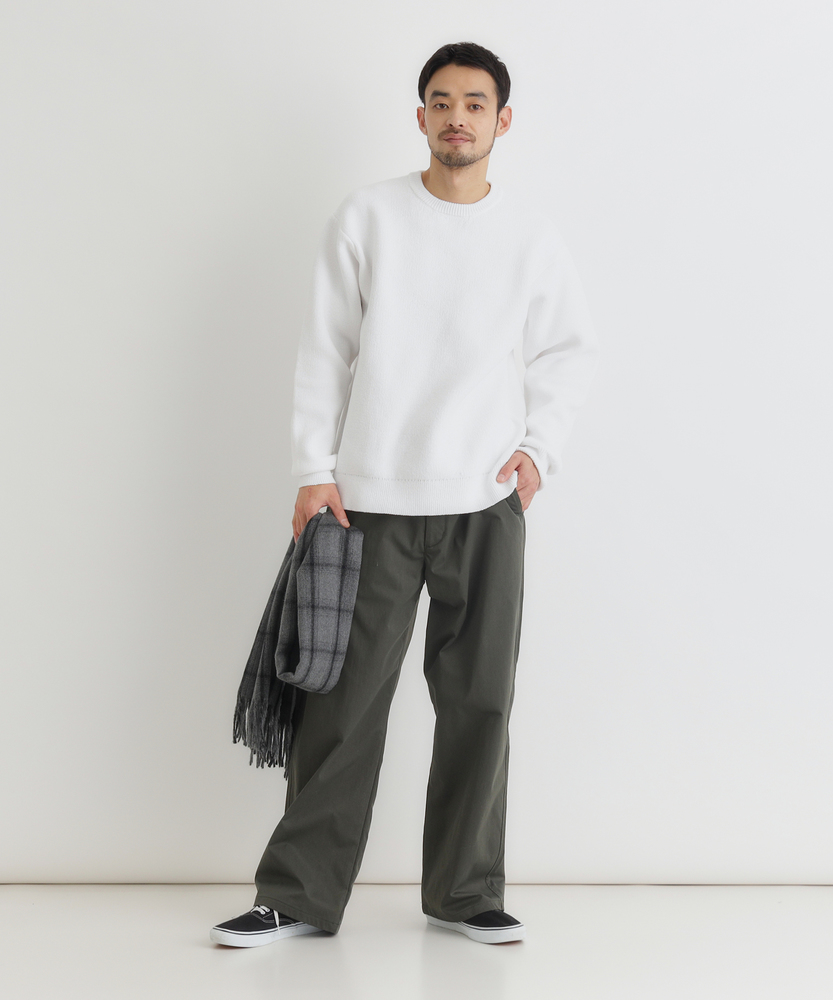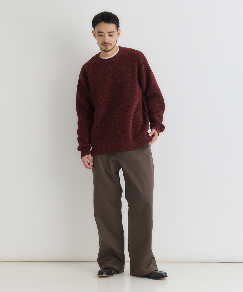 【仕様】モールジャガードのクルーネックセーターは、洗練されたシルエットと独自の編み模様が特徴です。ルーズフィットなスタイルがリラックス感を演出し、さりげないおしゃれを楽しむことができます。豊富なカラー展開で、用途に応じたスタイリングが力を引き立てます。【素材】 柔らかく、軽やかな着心地を実現するモール素材を使用。保温性に優れ、肌触りが良いため、寒い季節でも快適です。また、ジャガード編みの特性が立体感を生み出すため、コーディネート全体に深みを加えます。 【スタイリング】ゆったりとしたパンツやチノパンと合わせて、カジュアルな日常コーデが完成します。また、レザーシューズやブーツを合わせれば、クラス感のある休日スタイルに。アウターを羽織って、シンプルながらもセンスを感じさせるコーディネートが楽しめます。