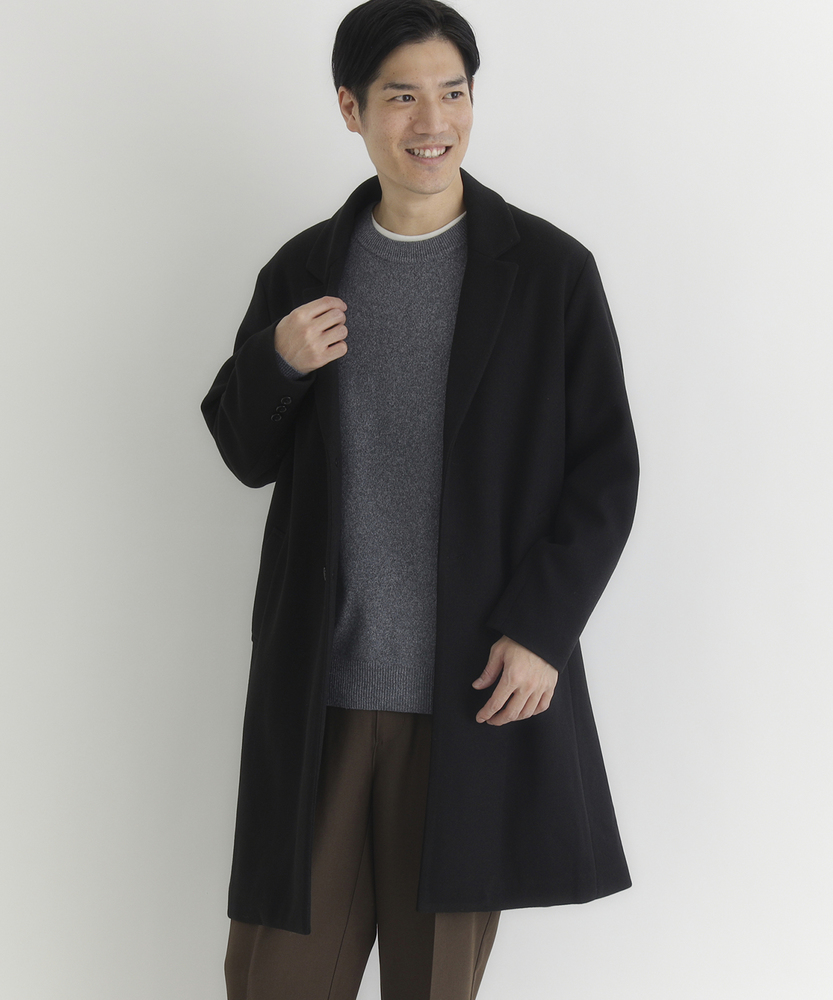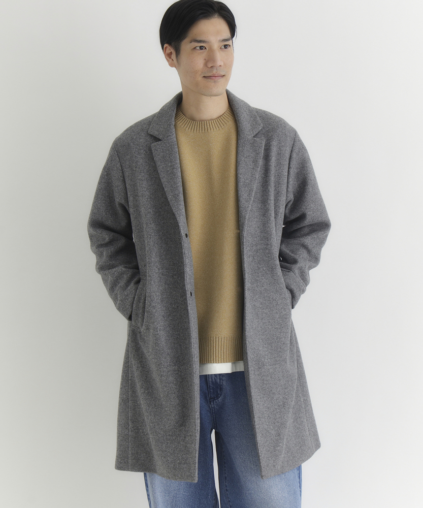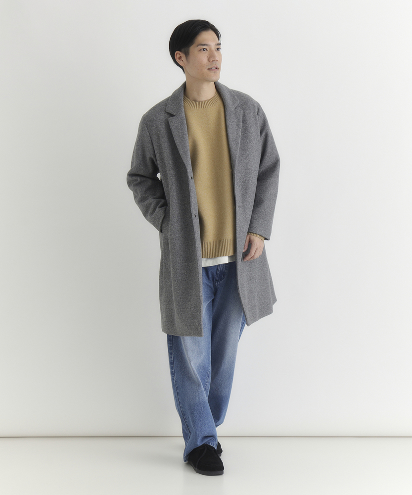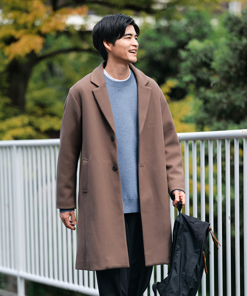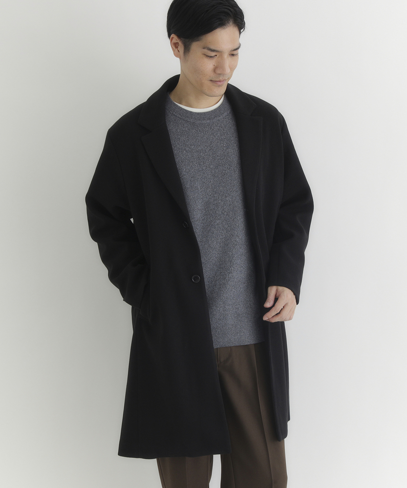 【仕様】シンプルかつ洗練されたライトメルトンチェスターコート。ゆったりとしたリラックスシルエットが特長で、スタイリッシュさと快適さを両立しています。シングルボタンのデザインは、スマートな印象を与え、さまざまなシーンに活躍します。【素材】 ニットメルトンを使用し、軽量でソフトな肌触りが魅力。暖かさを保ちながら、着心地も抜群です。通勤や街歩きなど、日常のシーンで活躍できる高機能な素材が特徴です。 【スタイリング】 シンプルなTシャツやタートルネックと合わせることで、暖かさを保ちながらもスタイリッシュなコーディネートを楽しめます。デニムやスラックスとの相性も良く、カジュアルからビジネスシーンまで幅広く使えるアイテムです。