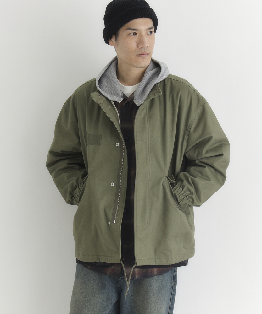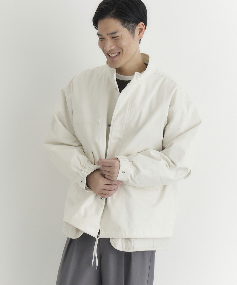羽織るだけでサマ見え。人気のモッズコートがショート丈&トレンドシルエットで新登場!オーバーサイズで大人の方も取り入れやすいアイテム。■Point・アームや身幅はゆったり、着丈は長すぎない。トレンドのシルエット。・ライナー付きで3シーズン使えてコスパ◎。【仕様】ショート丈のモッズシルエットを洗練させたデザイン。ミニマルな立ち襟はスナップで閉じられ比翼のフロントがクリーンな顔立ちに。斜めフラップポケットやドローストリングで実用性を確保し、ややボクシーなフォルムが都会的で力強い印象を与えます。【素材】程よいハリと密度のある表地が構築感を生み、風を遮る安定した着心地を実現。ライナーは滑らかなキルティング構造で保温性と軽さを両立し、着脱でシーズンの幅が広がる機能的な構成です。 【スタイリング】 厚手ニットやフーディーと重ねて冬の主役に。ライナーを外せば春先まで活躍。裾のドローコードでシルエットを調整し、テーパードパンツとブーツでミニマルかつタフな都市的スタイルに仕上げてください。