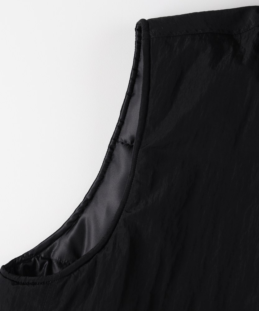 【仕様】ビッグシルエットのスタンド中綿ベストは、トレンドを意識したシンプルでありながら存在感のあるアイテム。襟部分にはリブを採用し、オリジナリティ溢れるドットボタンがアクセント。カジュアルなスタイリングにぴったりです。【素材】 ナイロンワッシャー生地を使用し、軽やかで動きやすさを実現。表地に撥水加工が施されているため、急な天候変化にも対応可能。さらに、中綿により保温性を一層高め、季節の変わり目にも重宝するアイテムです。 【スタイリング】 Tシャツや長袖シャツにサッと羽織ることで、シンプルでありながらもスタイリッシュなコーディネートが完成します。スリムなパンツと合わせて、カジュアルな日常やアウトドアシーンに最適なスタイルを楽しめます。 【セットアップで着用可能なアイテムはこちら】CP25201200039 ワッシャーナイロンサイドラインパンツ/セットアップ対応