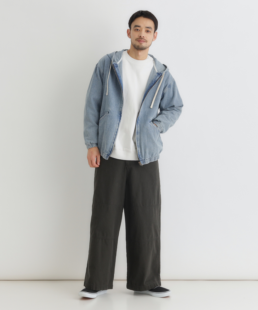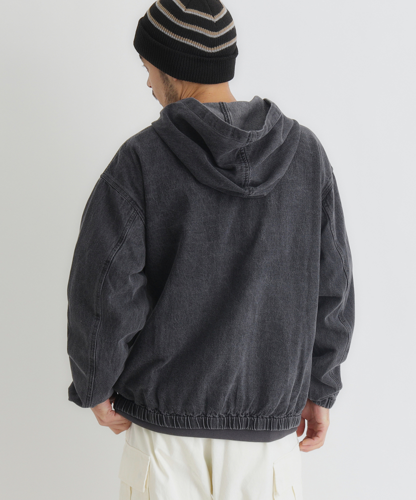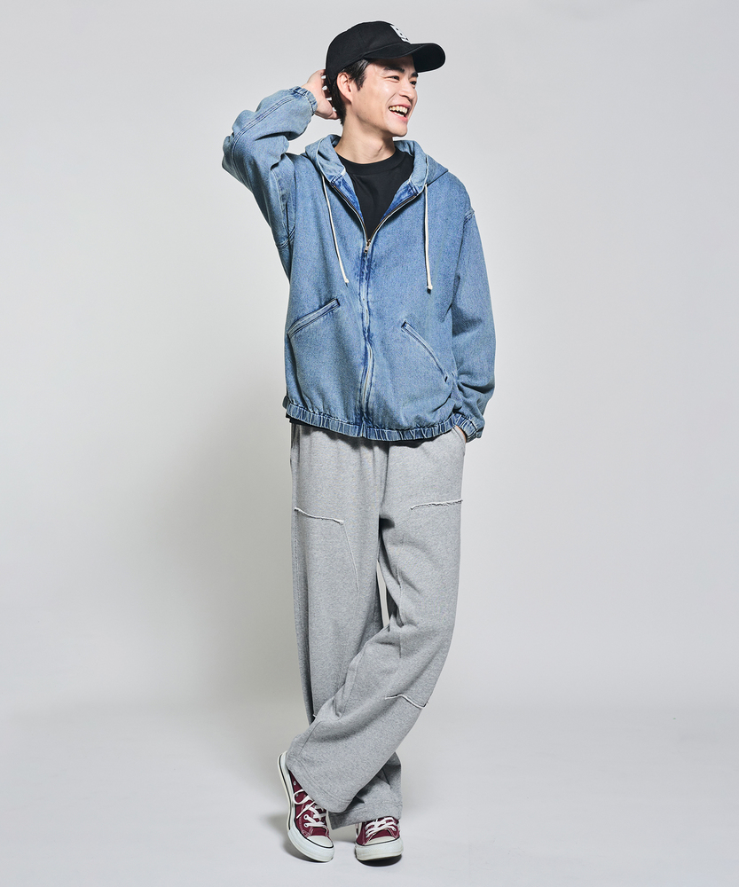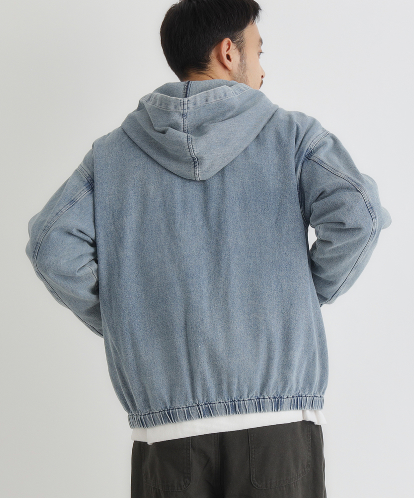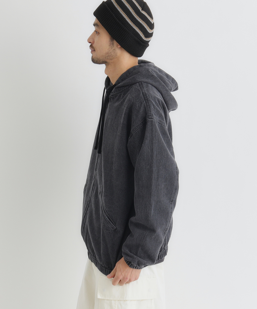 【仕様】カジュアルかつスタイリッシュなデニムフルジップパーカー。フード付きのデザインで、リラックスした雰囲気を演出します。サイドポケットの実用性もあり、デイリーユースに最適なアイテムです。【素材】 デニム素材を使用し、柔らかく快適な着心地を実現。色落ち感が絶妙で、着込むほどに味わいが増すのが特徴です。軽やかな素材感で、春秋のアウターとしても活躍します。 【スタイリング】 シンプルなTシャツやロングシャツとのレイヤリングを楽しんで。ボトムスにはジーンズやチノパンを合わせ、スニーカーでカジュアルダウンすると、こなれたスタイルに。季節の変わり目に大活躍する一着です。