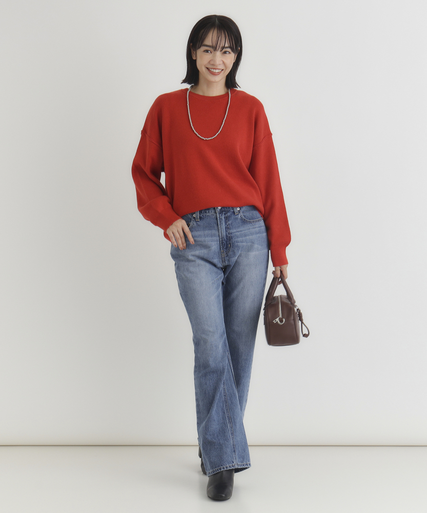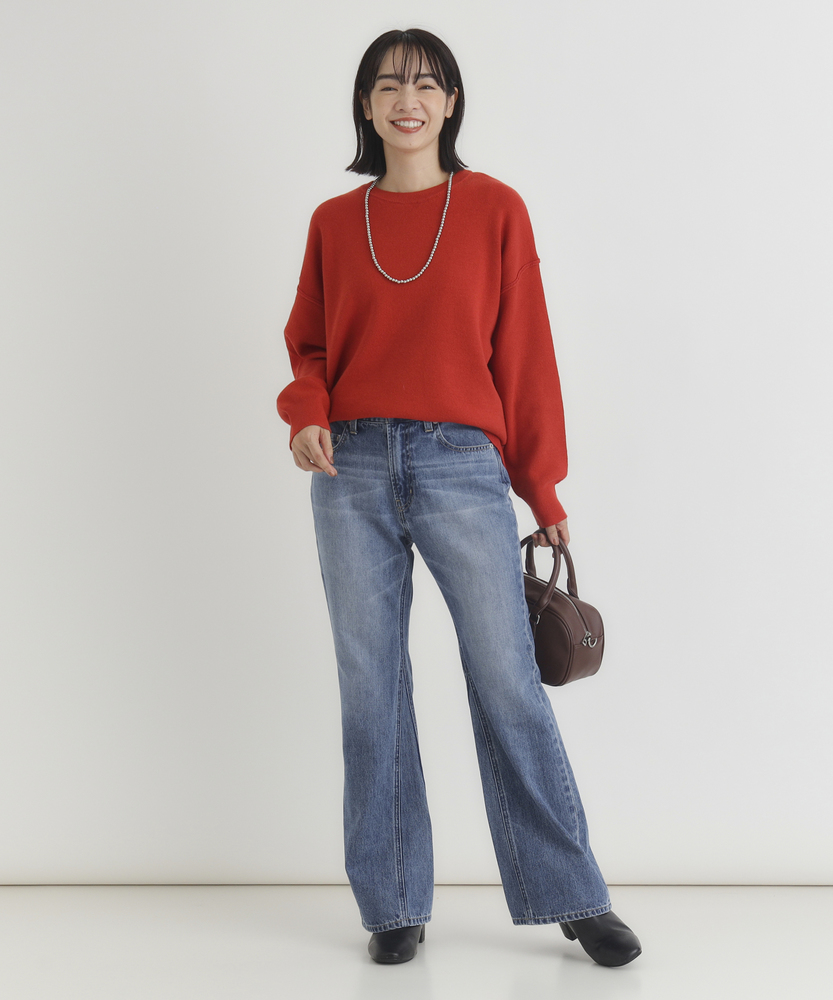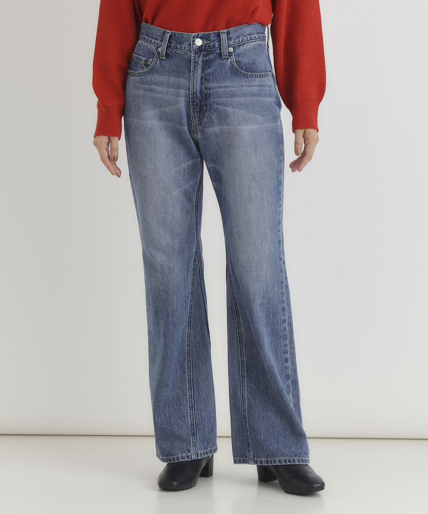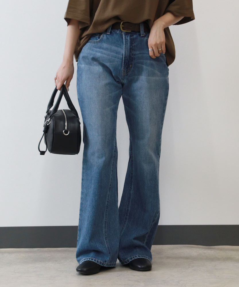 【仕様】クラシックなフレアシルエットが特徴のジーンズは、脚を美しく見せる効果があります。ウエスト部分はすっきりとしたデザインで、どんなトップスとも相性抜群。カジュアルからエレガントまで幅広いスタイルに対応します。【素材】 柔らかなデニム素材を使用しており、着心地が良く、動きやすさを実現。適度なストレッチ性があり、体にフィットしながらも快適な着用感を提供します。日常使いに最適な耐久性も兼ね備えています。 【スタイリング】 シンプルなTシャツやブラウスと合わせて、デイリースタイルを楽しんで。ヒールを合わせることで、よりスタイリッシュな印象に。アクセサリーをプラスすれば、特別なシーンにもぴったりのコーディネートが完成します。