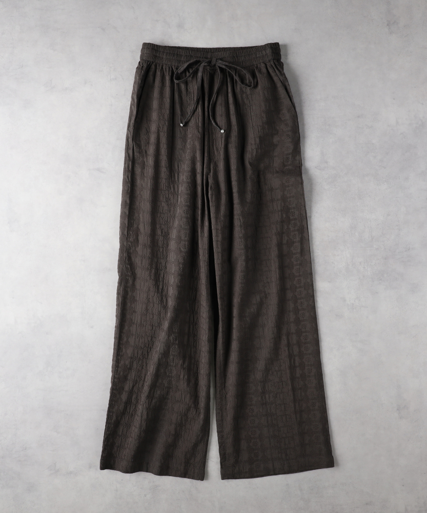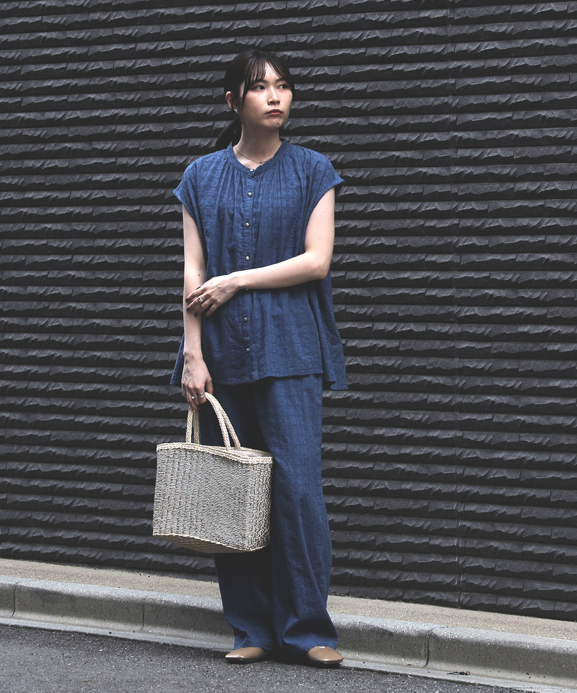 トレンドのインド刺繍生地を使用したパンツで、エスニックな風合いとリラックス感が魅力の一品です。繊細な刺繍が施され、着るだけでスタイリングに特別感を与えます。【仕様】洗練されたワイドパンツスタイルで、自由な動きを楽しめるシルエット。ウエストには調整可能なドローコードが付いており、快適なフィット感を提供します。刺繍のデザインがアクセントとなり、シンプルなトップスでも存在感を生み出します。【素材】軽やかなコットン素材を使用し、肌触りが良く、通気性も抜群。インドの伝統技術で生まれた刺繍は、手仕事の温かみを感じさせ、日常のコーディネートに華やかさをプラスします。リラックスした着心地で、デイリーユースに最適です。【スタイリング】シンプルなTシャツやタンクトップと合わせて爽やかなコーディネートがおすすめ。足元はスニーカーやサンダルでカジュアルにまとめたり、ヒールを合わせることで、リゾートスタイルも楽しめます。エスニックなテイストを添えたスタイリングが可能です。