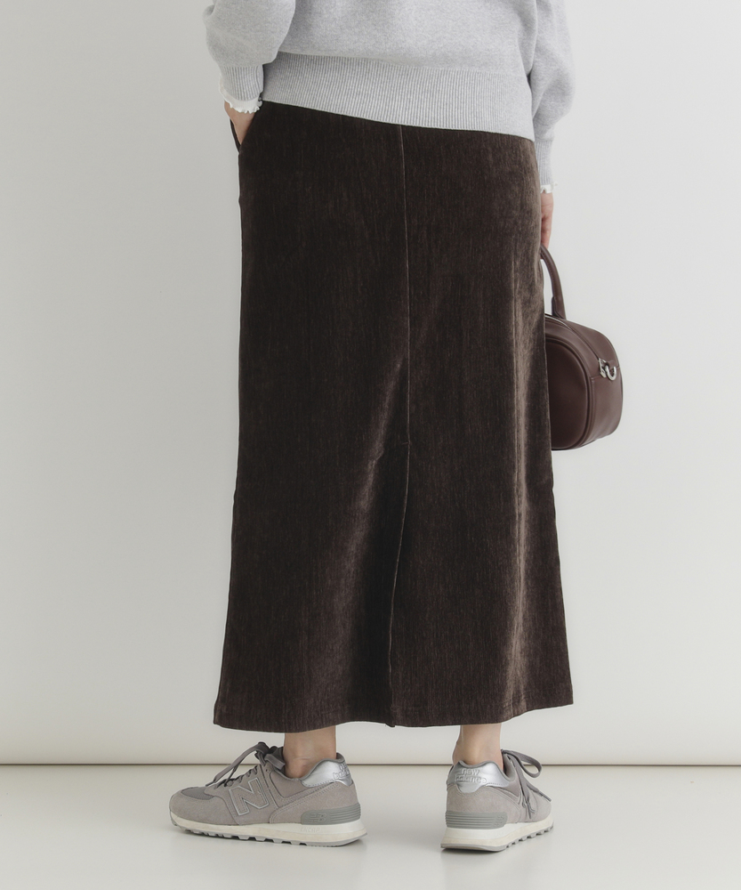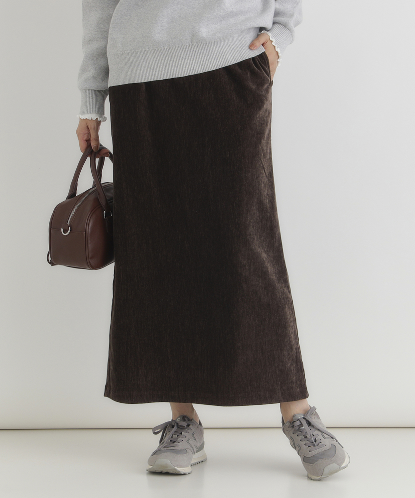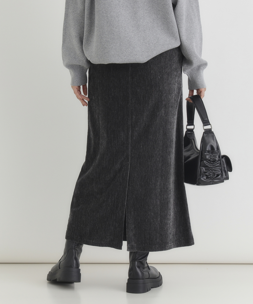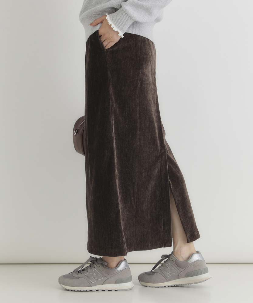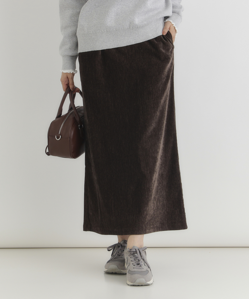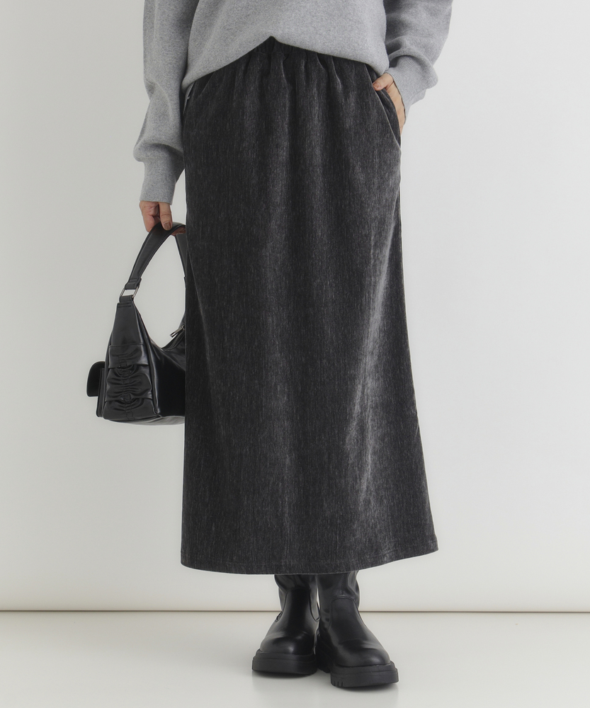 【仕様】シンプルでありながら洗練された印象のタイトスカート。ベーシックなデザインは、さまざまなスタイルにマッチし、コーディネートの幅を広げます。シルエットが美しく、女性らしさを引き立てます。【素材】 柔らかなシェニール生地を使用し、心地よい肌触りを実現。適度な伸縮性があり、動きやすさを確保。日常使いに最適で、季節を問わず活躍するアイテムです。 【スタイリング】 シンプルなトップスと合わせて、クリーンで洗練されたスタイルを楽しんで。ブーツやスニーカーと組み合わせることで、カジュアルダウンも可能。アクセサリーで個性をプラスするのもおすすめです。