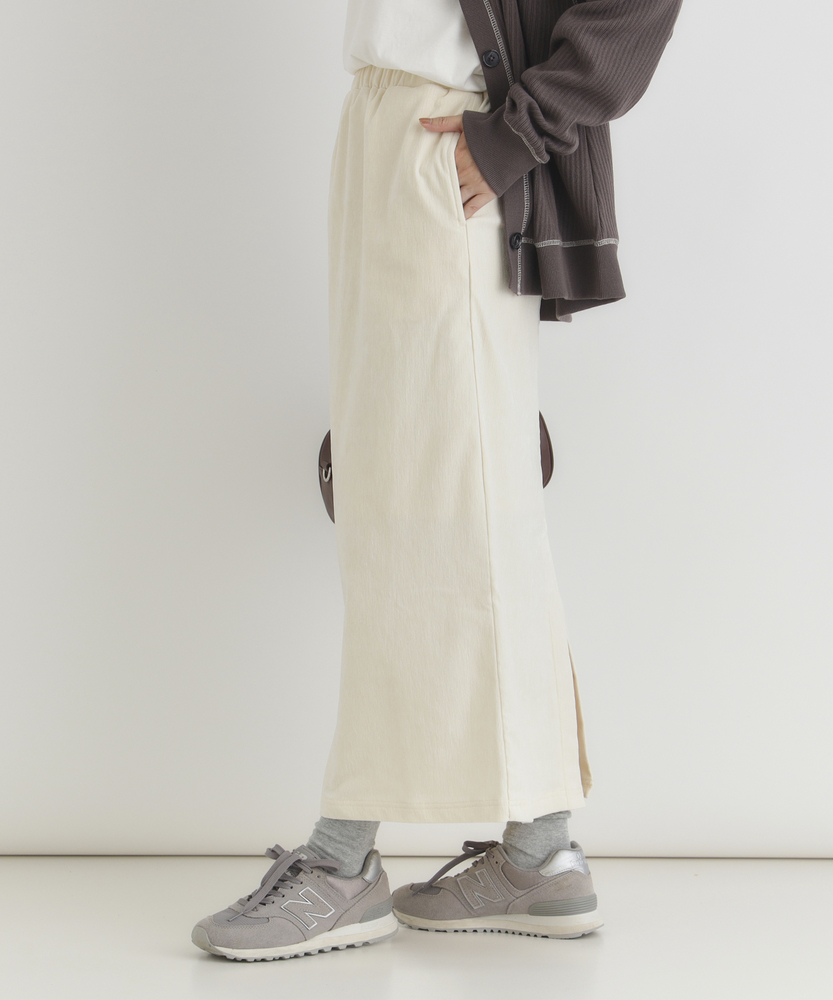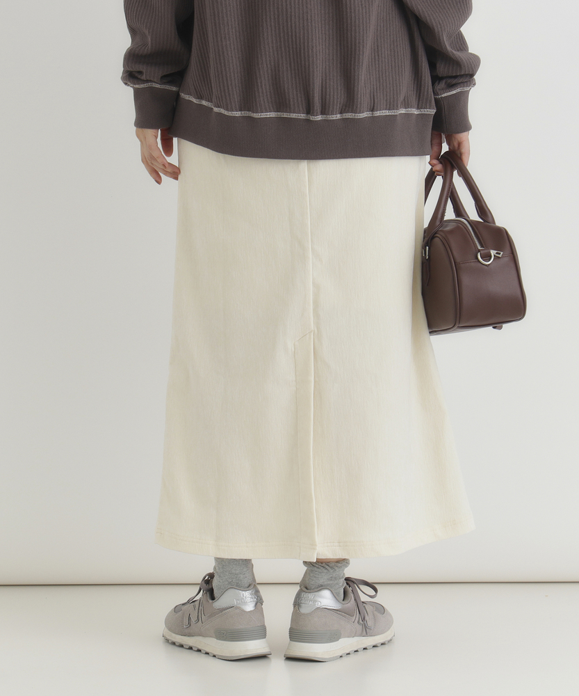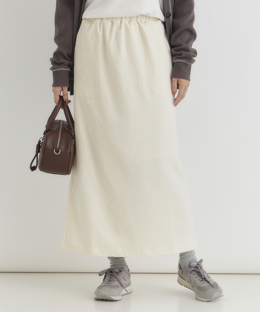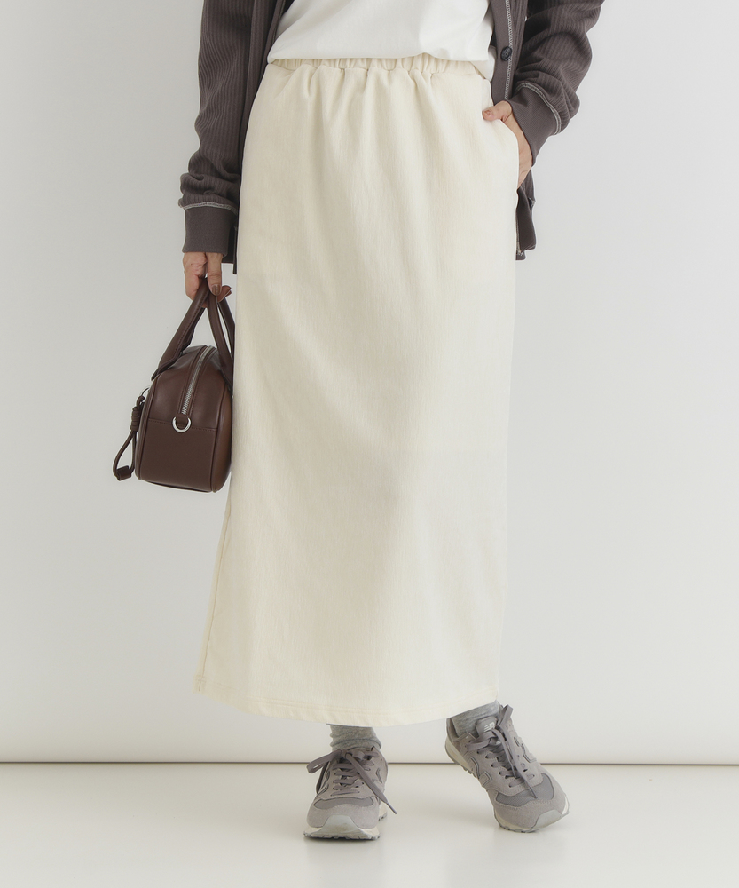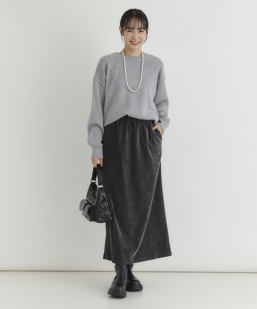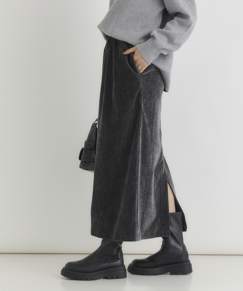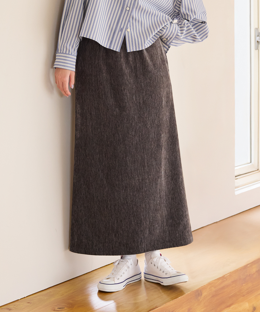 【仕様】シンプルでありながら洗練された印象のタイトスカート。ベーシックなデザインは、さまざまなスタイルにマッチし、コーディネートの幅を広げます。シルエットが美しく、女性らしさを引き立てます。【素材】 柔らかなシェニール生地を使用し、心地よい肌触りを実現。適度な伸縮性があり、動きやすさを確保。日常使いに最適で、季節を問わず活躍するアイテムです。 【スタイリング】 シンプルなトップスと合わせて、クリーンで洗練されたスタイルを楽しんで。ブーツやスニーカーと組み合わせることで、カジュアルダウンも可能。アクセサリーで個性をプラスするのもおすすめです。