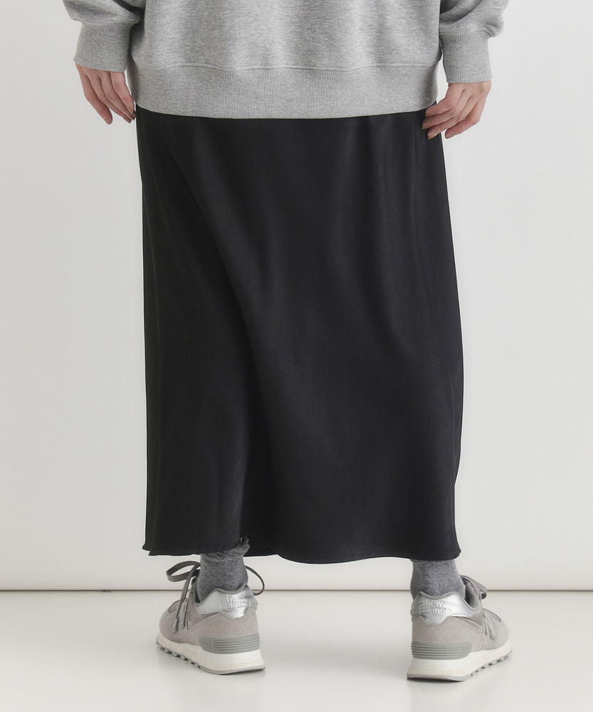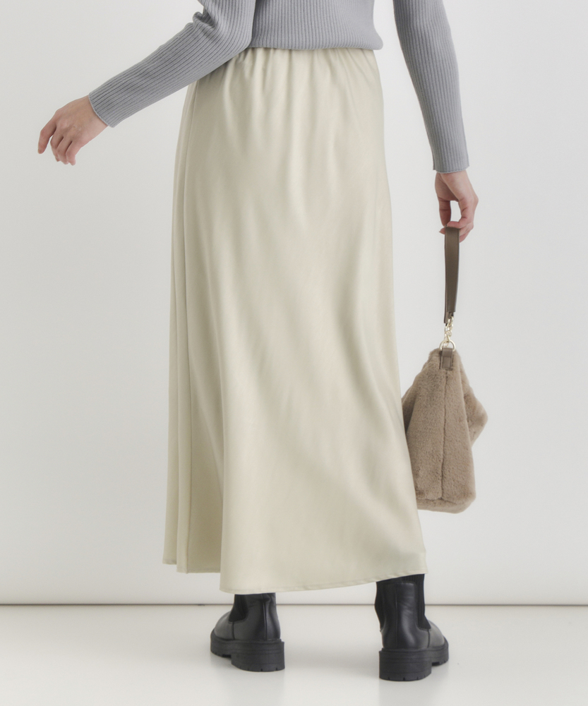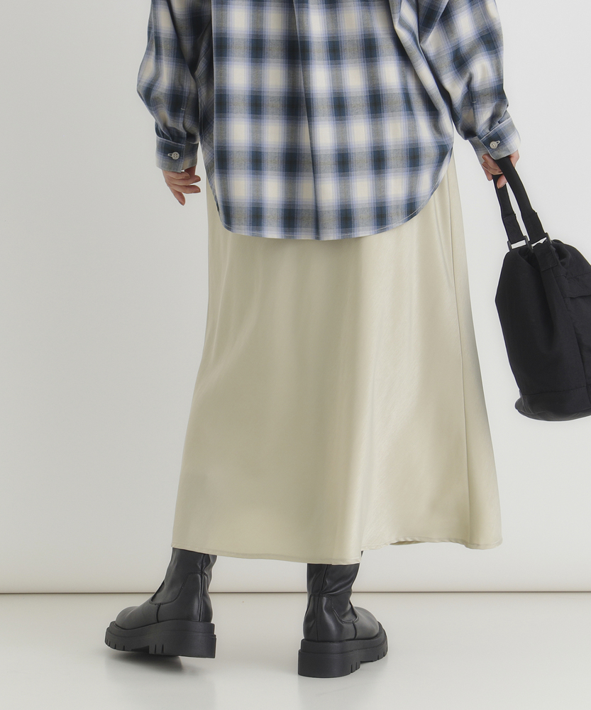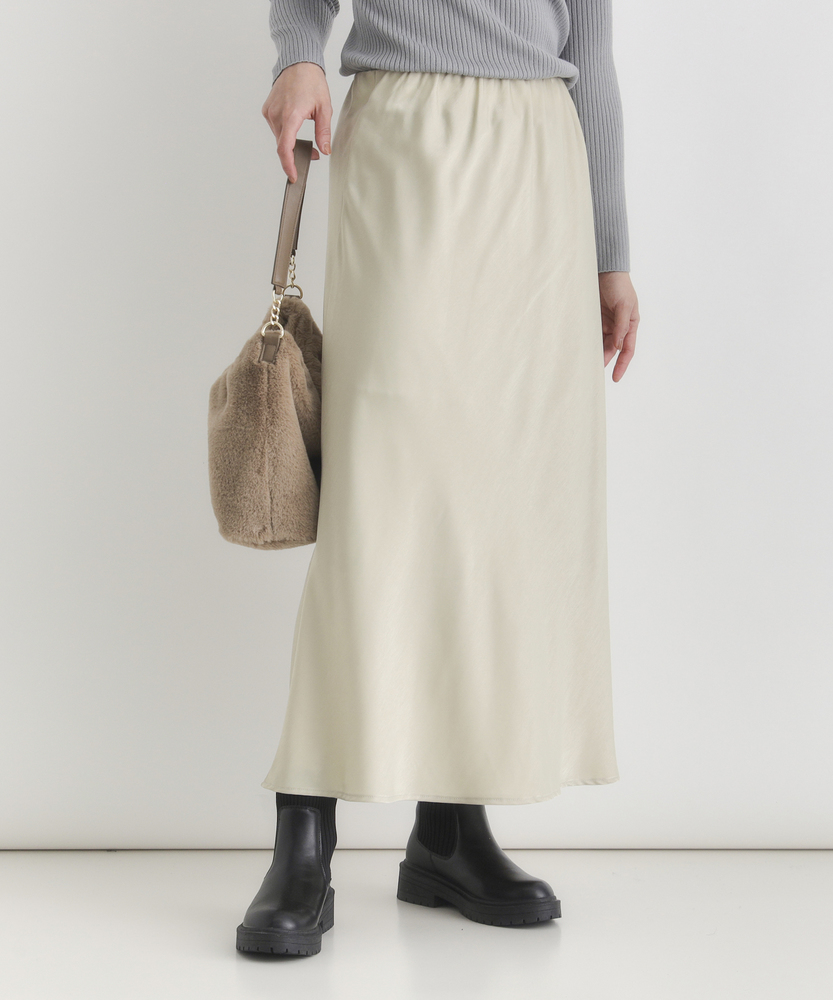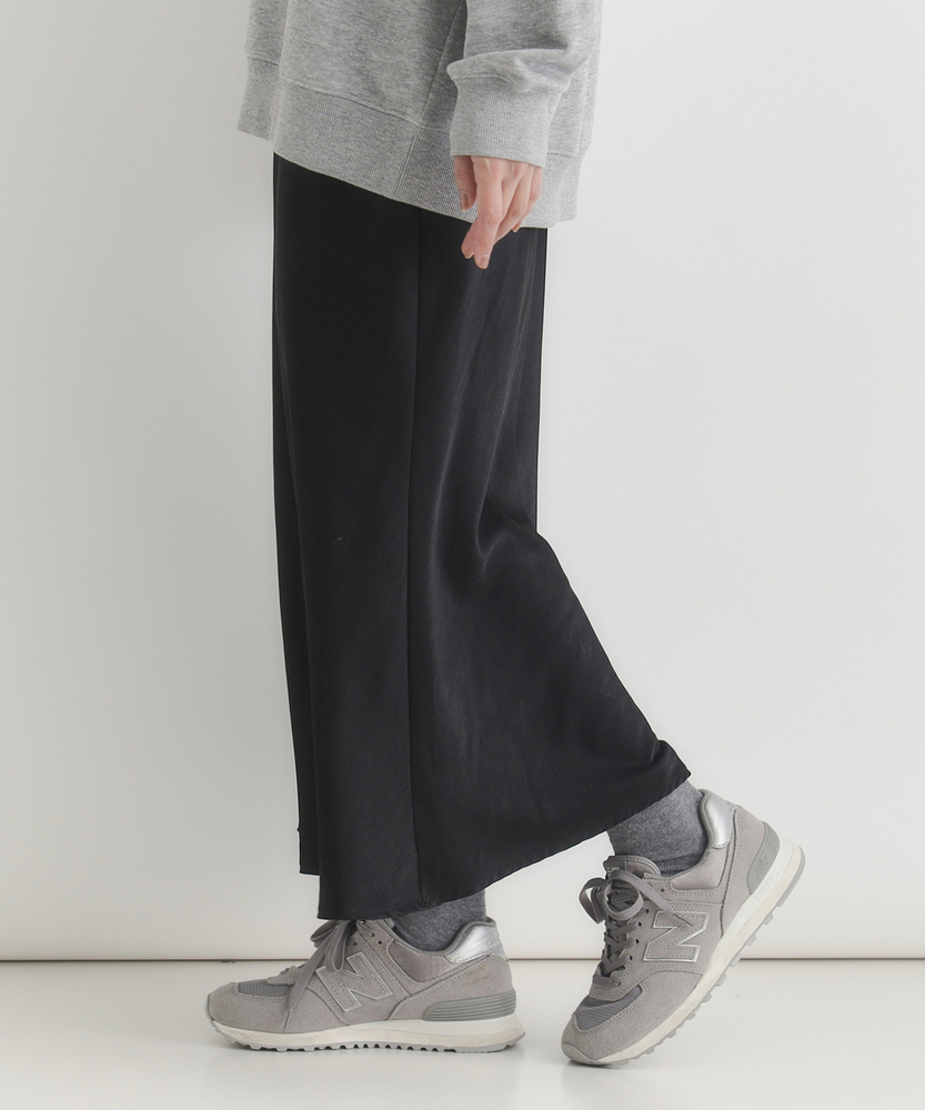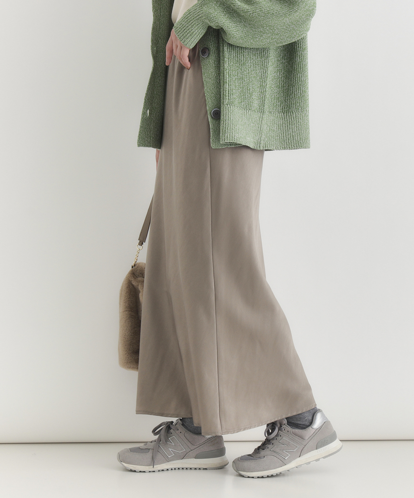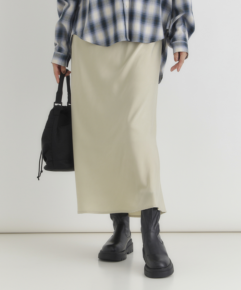 【仕様】シンプルで洗練されたシルエットが特徴のナロースカート。すっきりとしたラインが女性らしさを引き立て、どんなスタイルにも合わせやすい一着です。ウエストはゴム仕様で、快適な着心地を実現しています。【素材】 滑らかなサテン素材が、上品な光沢感を演出。軽やかで通気性が良く、デイリーから特別なシーンまで幅広く活躍します。柔らかなドレープが美しい動きを生み出し、エレガントな印象を与えます。 【スタイリング】 シンプルなトップスと合わせて、洗練されたカジュアルスタイルを楽しんで。ジャケットを羽織れば、オフィススタイルにもぴったり。足元にはスニーカーやヒールを合わせて、シーンに応じたコーディネートを楽しんでください。