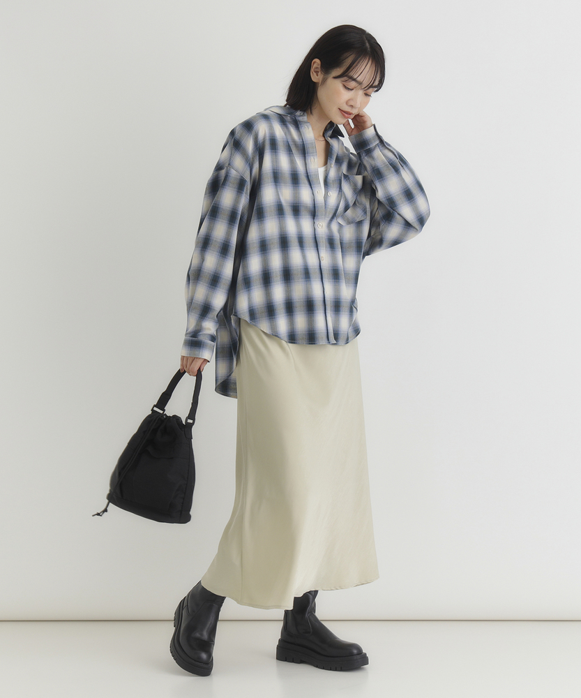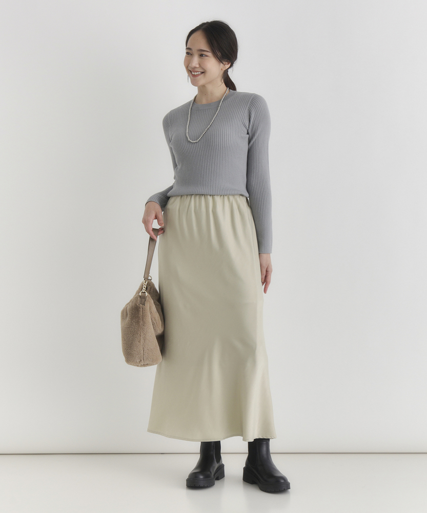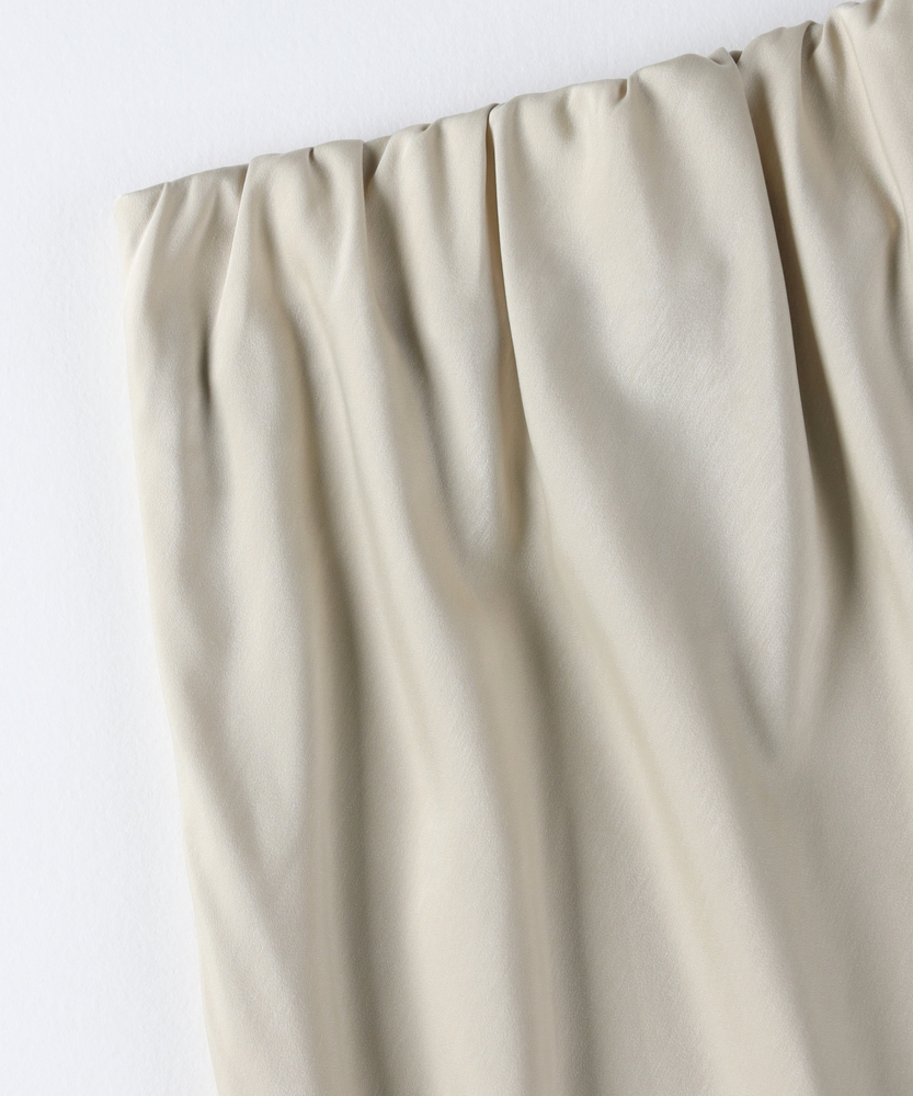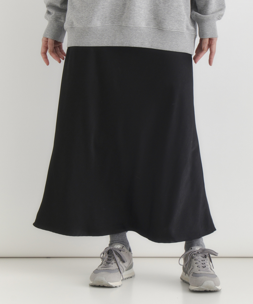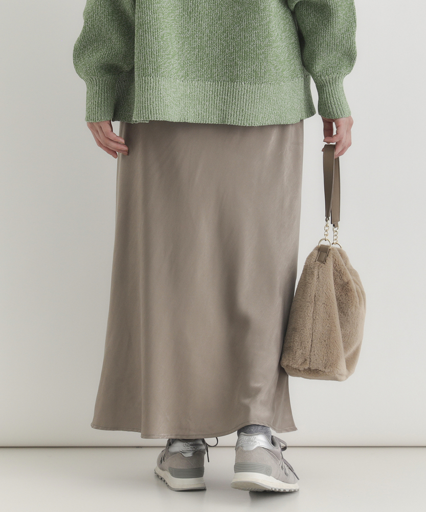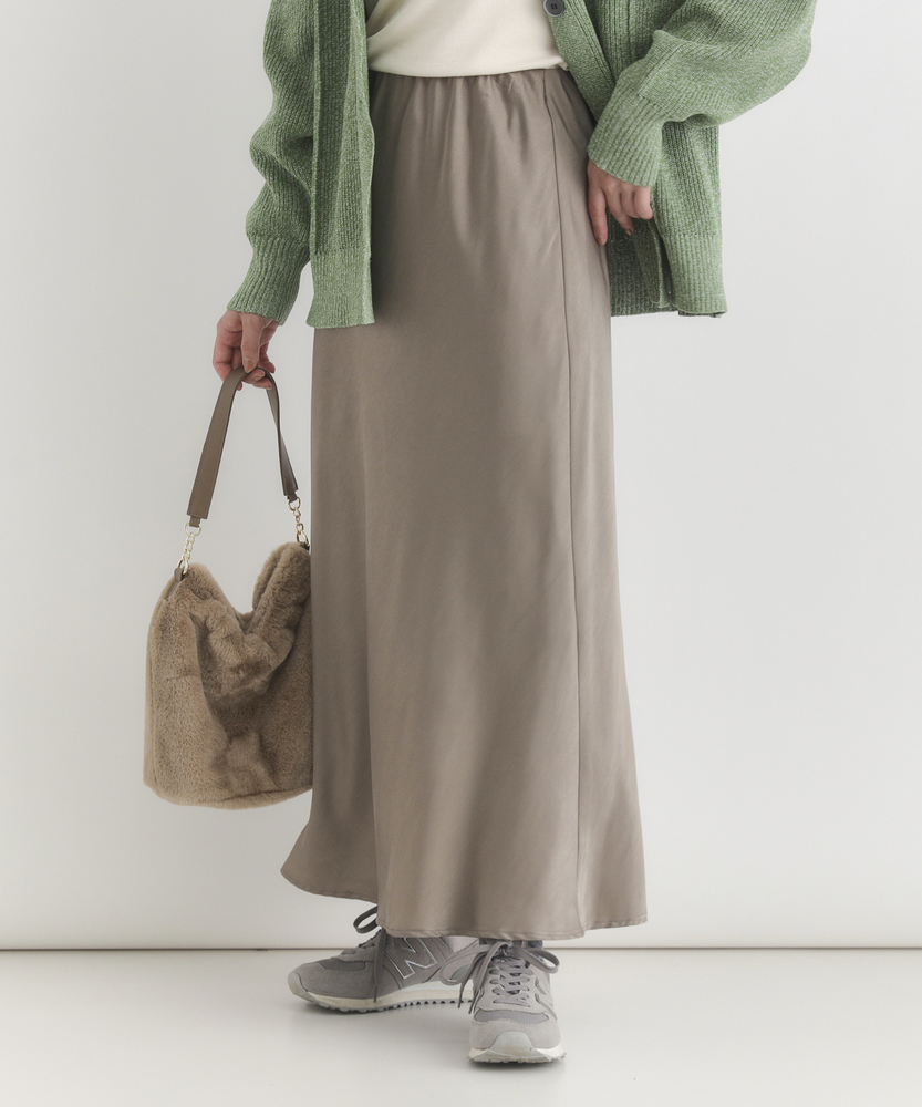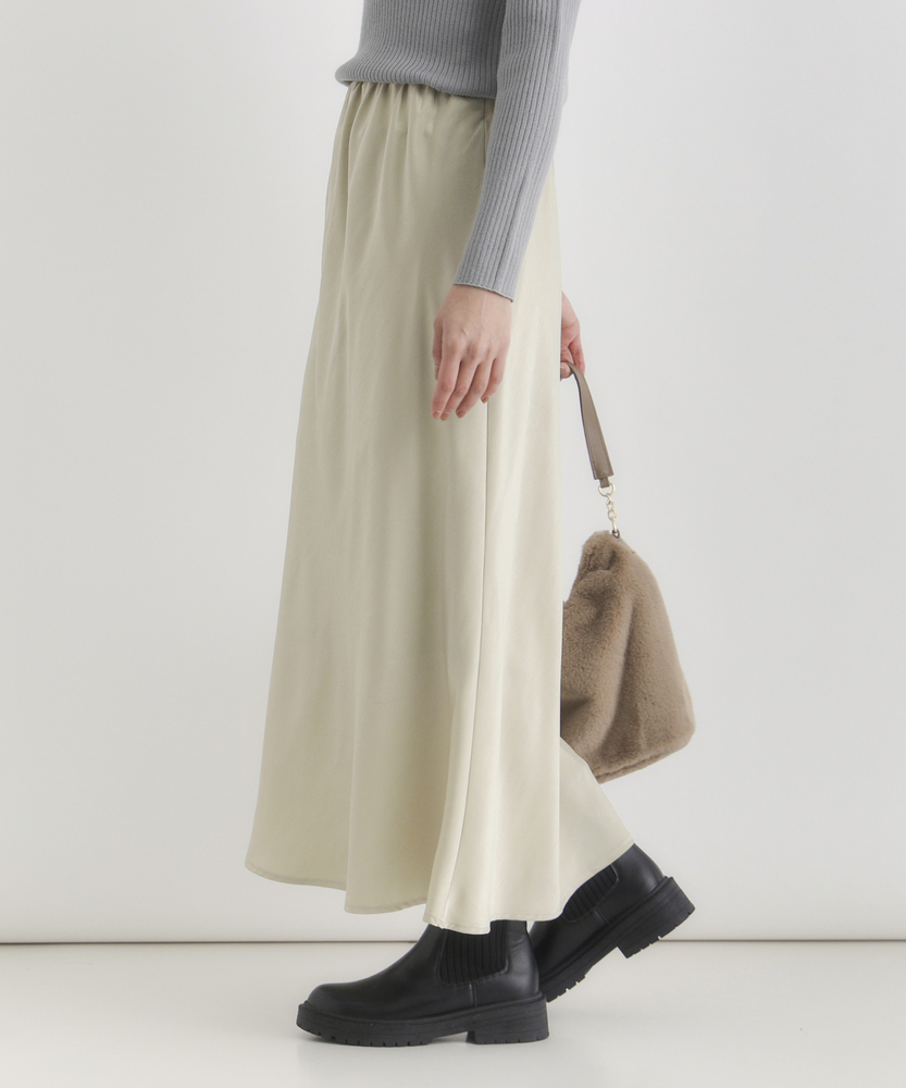 【仕様】シンプルで洗練されたシルエットが特徴のナロースカート。すっきりとしたラインが女性らしさを引き立て、どんなスタイルにも合わせやすい一着です。ウエストはゴム仕様で、快適な着心地を実現しています。【素材】 滑らかなサテン素材が、上品な光沢感を演出。軽やかで通気性が良く、デイリーから特別なシーンまで幅広く活躍します。柔らかなドレープが美しい動きを生み出し、エレガントな印象を与えます。 【スタイリング】 シンプルなトップスと合わせて、洗練されたカジュアルスタイルを楽しんで。ジャケットを羽織れば、オフィススタイルにもぴったり。足元にはスニーカーやヒールを合わせて、シーンに応じたコーディネートを楽しんでください。