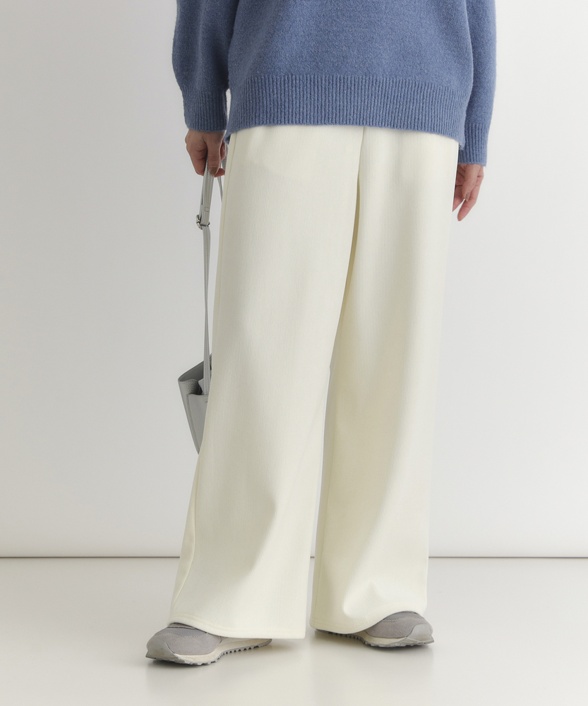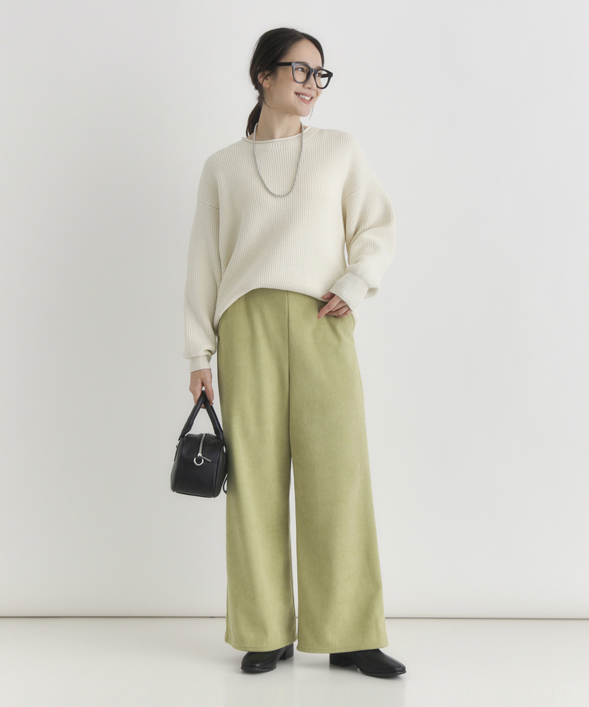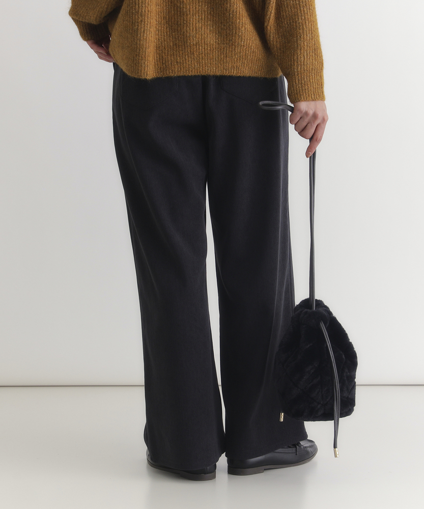 【仕様】心地よいシルエットを演出するセミワイドパンツ。 シンプルでありながら、カットコーデュロイの独特な凹凸感が上品さを引き立てます。 両サイドにポケットが付いており、機能性も兼ね備えています。【素材】 ゆったりとしたシルエットが、快適な着用感を提供。 ウエストはゴム仕様で、リラックスしたフィット感を実現。 動きやすさを追求しつつ、洗練された印象を与えるデザインです。 【スタイリング】 裏起毛仕立てにより、保温性と肌触りの良さが際立つアイテム。 お手入れも簡単で、日常使いにぴったりです。 カジュアルな中にも上品さを感じさせるスタイルは、さまざまなコーディネートにマッチします。