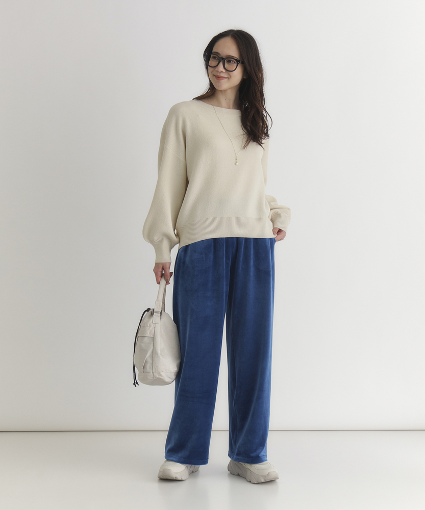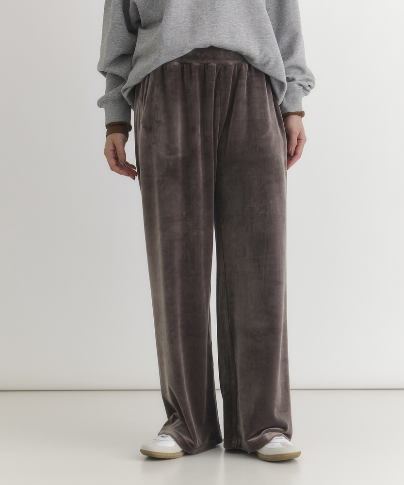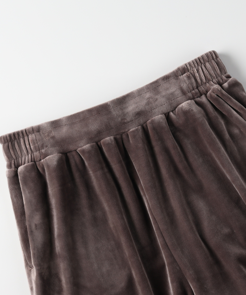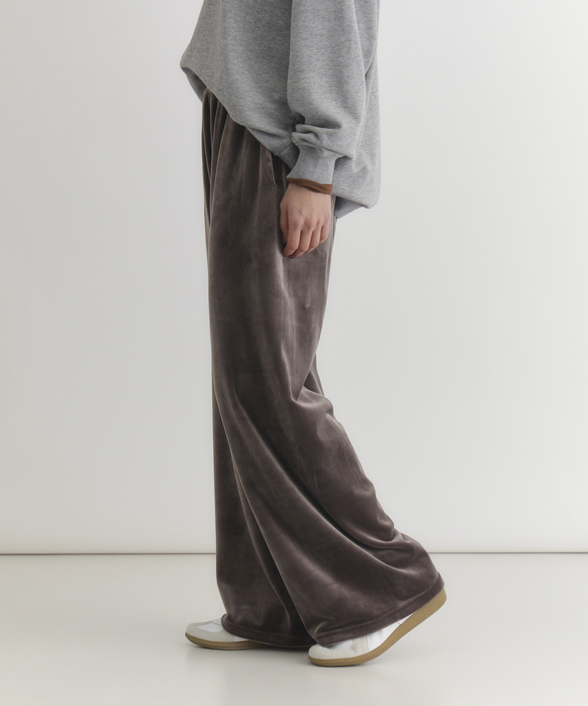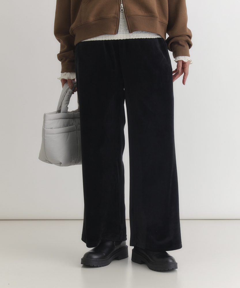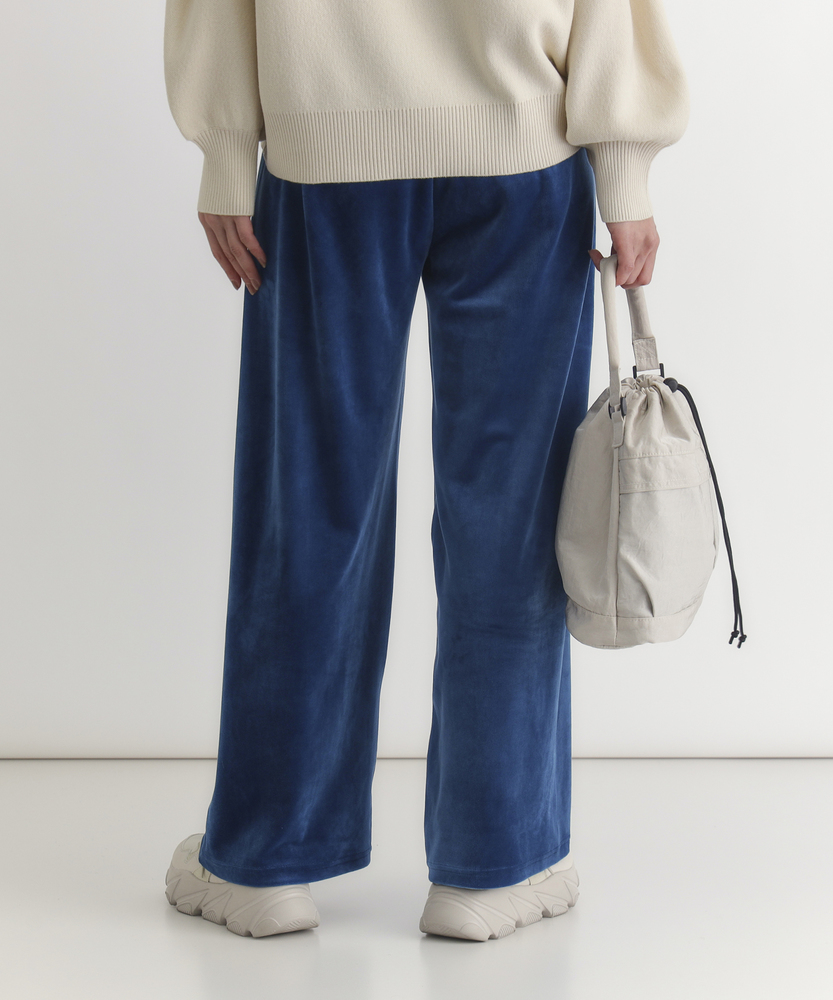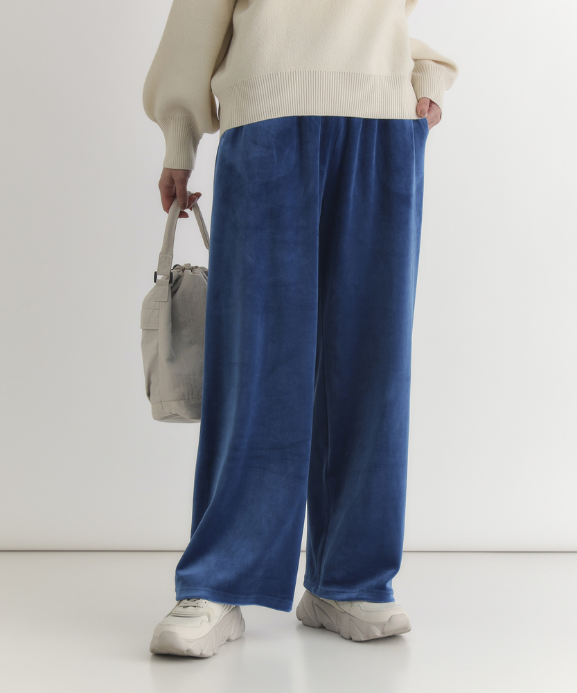 【仕様】肌ざわりの良いベロアときれいに見えるシルエットが特徴のベロアイージーパンツ。ゆったりとした着心地で、日常のスタイリングを華やかに引き立てます。ウエストはリラックス感のあるゴム仕様で、快適なフィット感を実現。【素材】 滑らかな触感のベロア素材が魅力。軽やかで通気性も良く、季節を問わず楽しめる一枚です。上品な光沢感が、カジュアルコーデに洗練されたエッセンスをプラスします。【スタイリング】 クリーンで心地よいスタイルを演出するこのパンツは、シンプルなニットやブラウスと合わせて、デイリーユースにもぴったり。フラットシューズやスニーカーでカジュアルに、ヒールで少しドレッシーにするなど、シーンに応じたコーディネートが可能です。