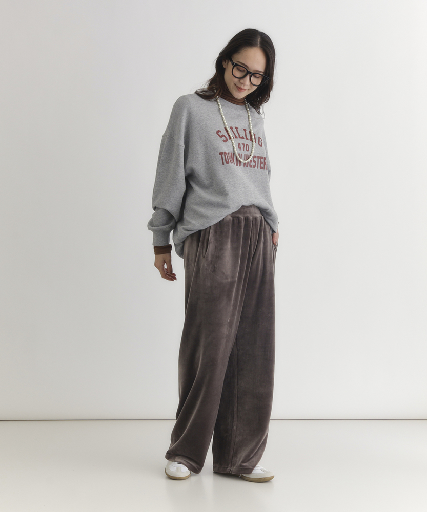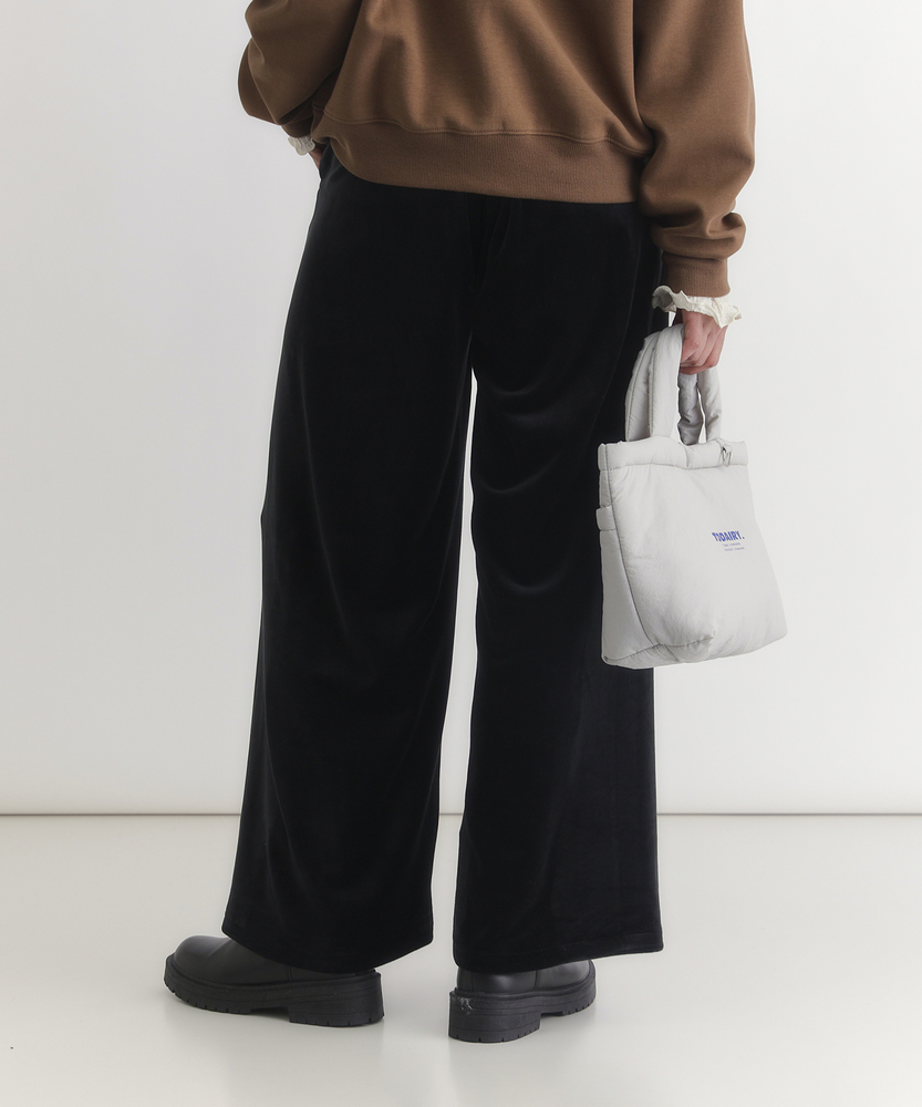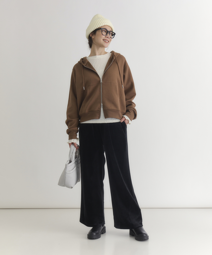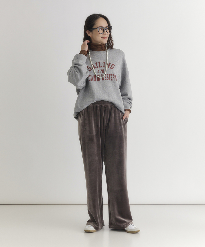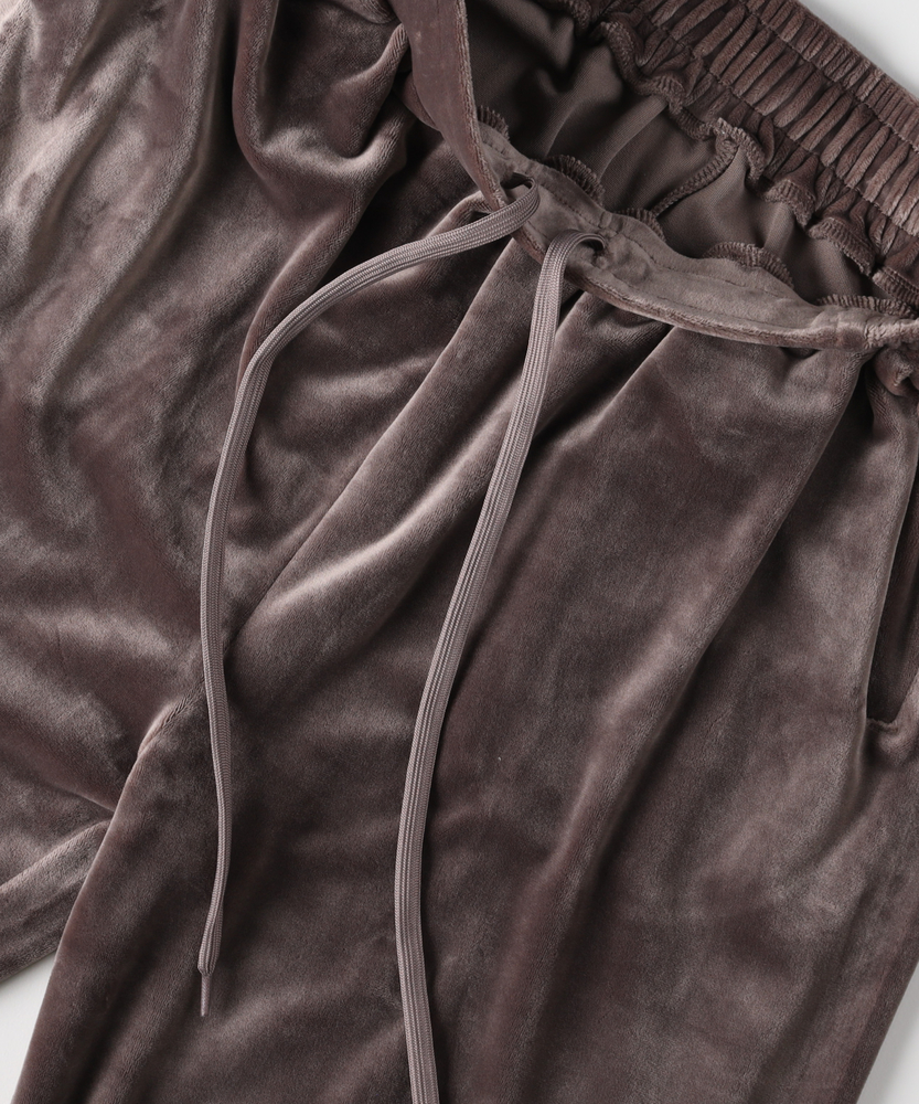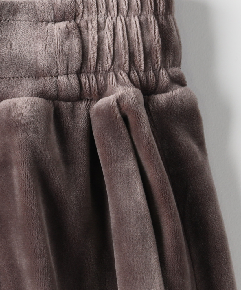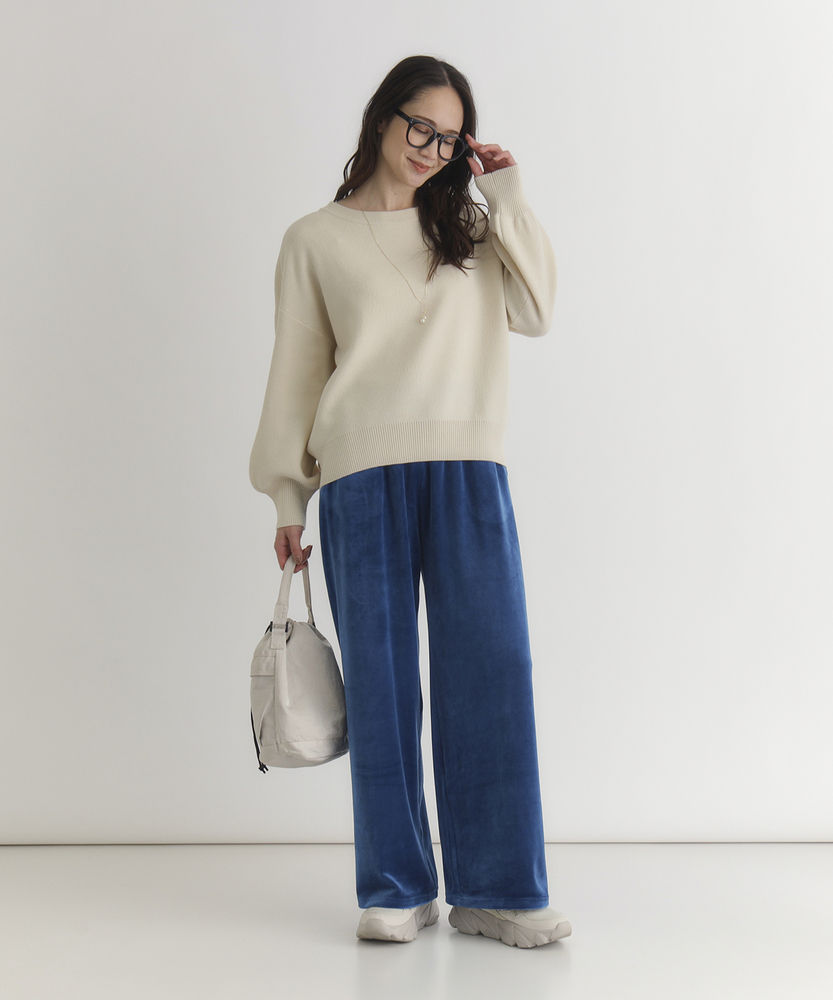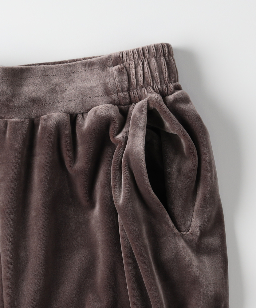 【仕様】肌ざわりの良いベロアときれいに見えるシルエットが特徴のベロアイージーパンツ。ゆったりとした着心地で、日常のスタイリングを華やかに引き立てます。ウエストはリラックス感のあるゴム仕様で、快適なフィット感を実現。【素材】 滑らかな触感のベロア素材が魅力。軽やかで通気性も良く、季節を問わず楽しめる一枚です。上品な光沢感が、カジュアルコーデに洗練されたエッセンスをプラスします。【スタイリング】 クリーンで心地よいスタイルを演出するこのパンツは、シンプルなニットやブラウスと合わせて、デイリーユースにもぴったり。フラットシューズやスニーカーでカジュアルに、ヒールで少しドレッシーにするなど、シーンに応じたコーディネートが可能です。