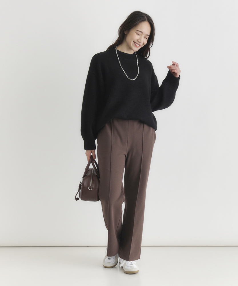 【仕様】セミフレアのシルエットが特徴のカットジョーゼットパンツ。すっきりとしたベーシックなデザインで、洗練された印象を与えます。フレア部分が軽やかに広がり、動くたびに美しいラインを演出します。【素材】 お手入れが簡単なカットジョーゼット素材を使用。 スタンダードなシルエットで、どんな体型にもフィットしやすい設計。ウエストはゴム仕様で、快適な着心地をもたらし、ゆったりとしたフィット感が特徴です。 【スタイリング】 細見え効果があるセミフレアシルエットが足を長く引き立て、スタイルアップが期待できます。シーンを選ばずに活躍するアイテムです。 【親子でお揃い キッズサイズはこちら▶MP25203100009】MP25203100009 カットジョーゼット裏起毛フレアパンツ(親子でお揃い)