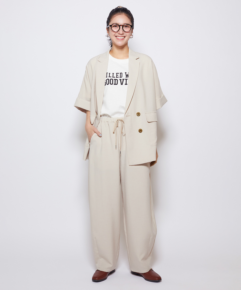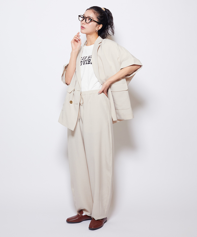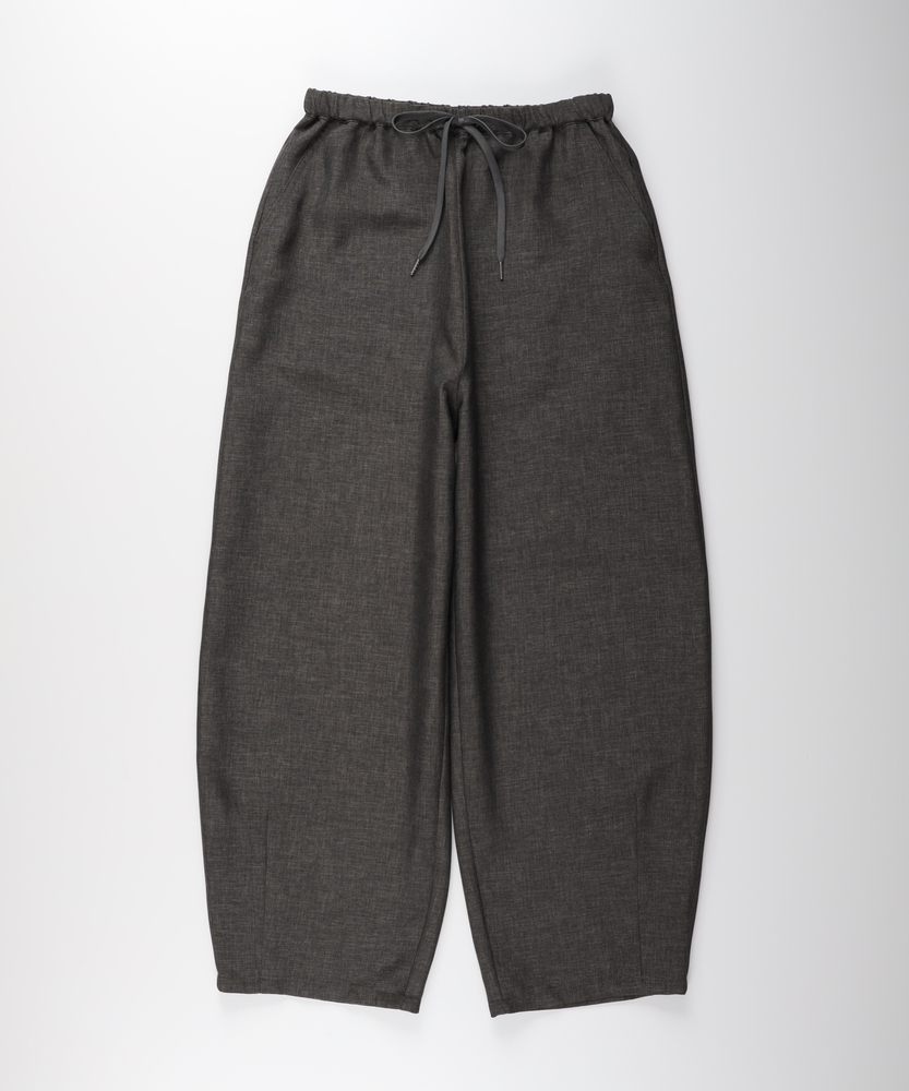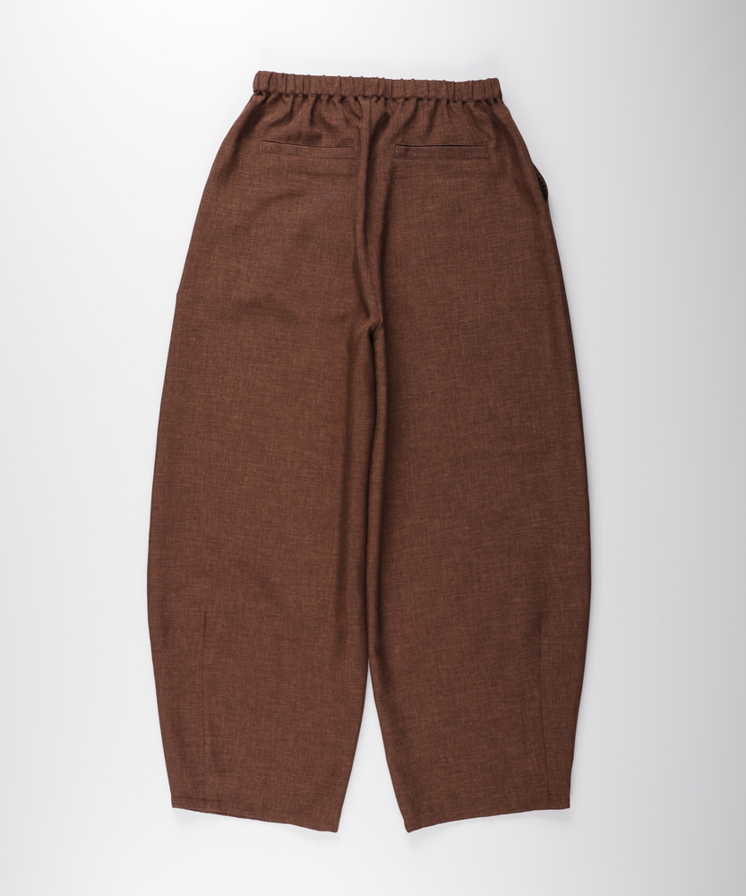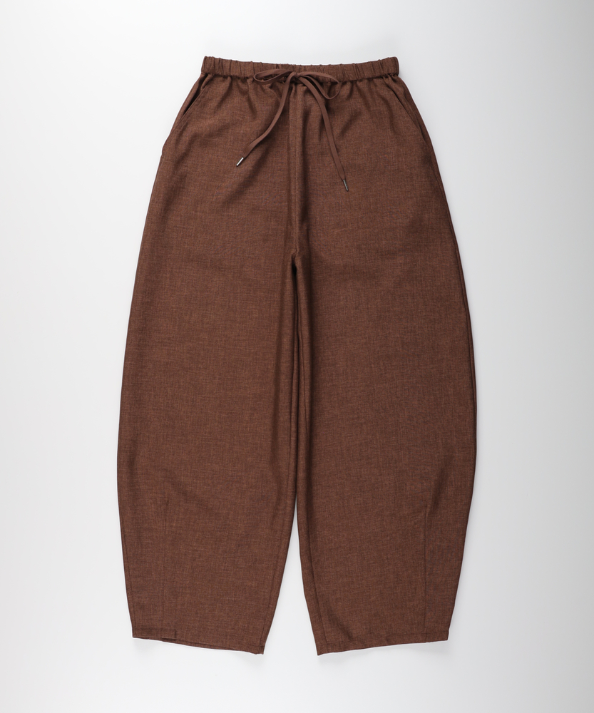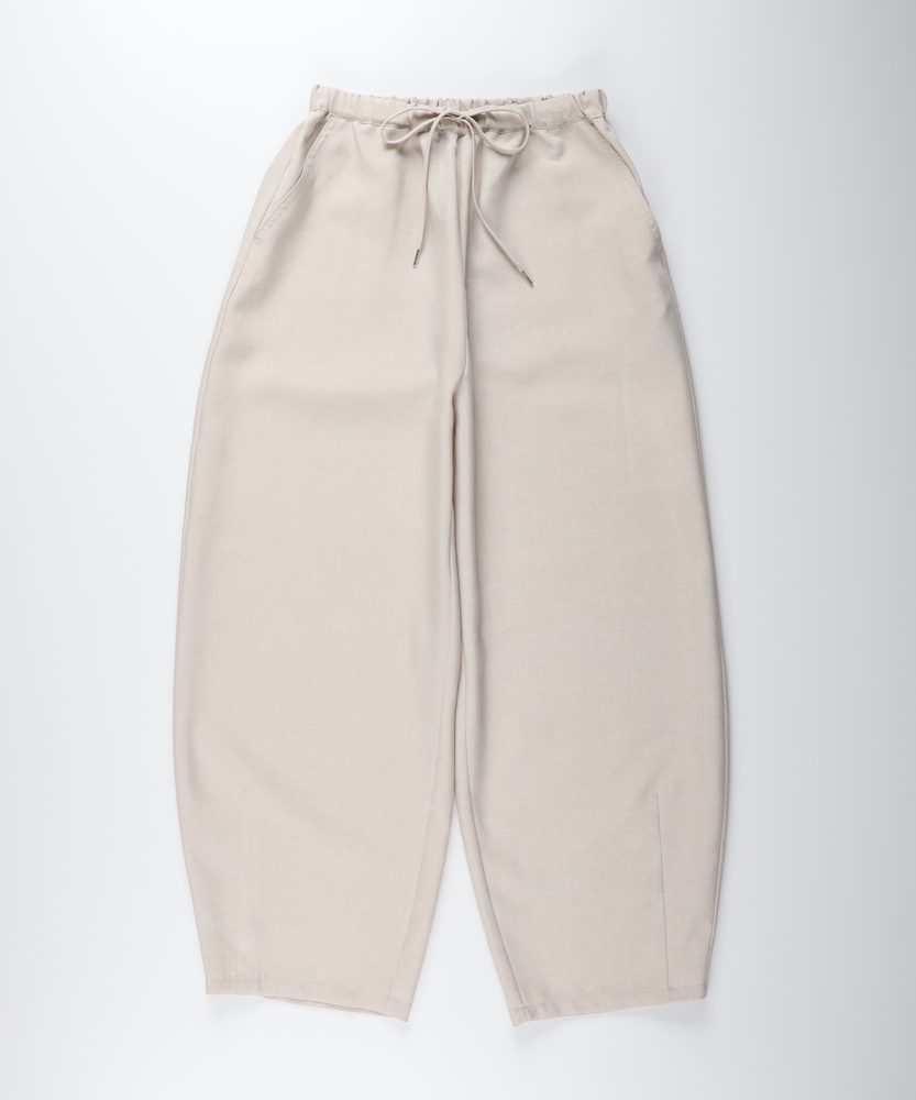 ふんわり包み込む、大人の「コクーン」シルエット。穿くだけで様になる、立体的なフォルムを味方に。リラックスと洗練を両立。オンオフ頼れる万能パンツ。■Point・「丸み」が可愛いコクーンシルエット腰回りはゆったり、裾に向かって緩やかに窄まる形。気になる太ももやヒップラインを自然にカバー。穿くだけで今っぽい「こなれ感」が生まれます。・品よく決まる「ドレープ感」動くたびに揺れる、しなやかな生地の表情。カジュアルになりすぎず、上品な印象をキープ。大人の余裕を感じさせる、きれいめな質感です。・実用的な「サイドポケット」スマホや鍵がすっぽり入るポケット付き。シルエットを崩さないよう、配置にもこだわりを。ちょっとした外出なら、手ぶらでもOK。・足首がのぞく「抜け感」のある丈感重たく見えない、絶妙なバランスの着丈。フラットシューズでもヒールでも相性抜群。足元のおしゃれも存分に楽しめます。【仕様】繭のように丸みを帯びたシルエットが特徴のコクーンパンツです。ヒップから太ももにかけてはたっぷりとゆとりを持たせつつ、裾に向かってテーパードさせることで、リラックス感がありながらもすっきりとした印象に仕上げました。ウエストのドローコードがスポーティなアクセントになり、トップスインした際も様になります。【素材】さらりとした肌触りで、落ち感のある上品な素材を使用しています。体のラインを拾いにくい程よい厚みがありながら、重さを感じさせない軽やかな穿き心地が魅力。シワになりにくい質感で、長時間のデスクワークや移動時にも清潔感を保ちます。シーズンレスで使いやすい風合いです。【スタイリング】同系色のジャケットやブラウスを合わせて、セットアップ風に着こなせば、オフィスにも対応するきれいめスタイルの完成。休日はロゴTシャツやスニーカーでカジュアルダウンさせると、大人のエフォートレスな装いに。足元はローファーで引き締めたり、サンダルで抜け感を出したりと、季節に合わせたアレンジを楽しめます。 【セットアップで着用可能なアイテムはこちら】HR26102300016 【そよラク】ペプラムギャザーベスト/セットアップ対応HR26102600005 【そよラク】ハーフスリーブジャケット/セットアップ対応