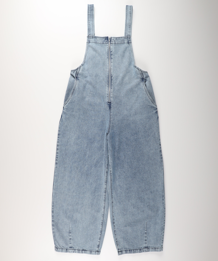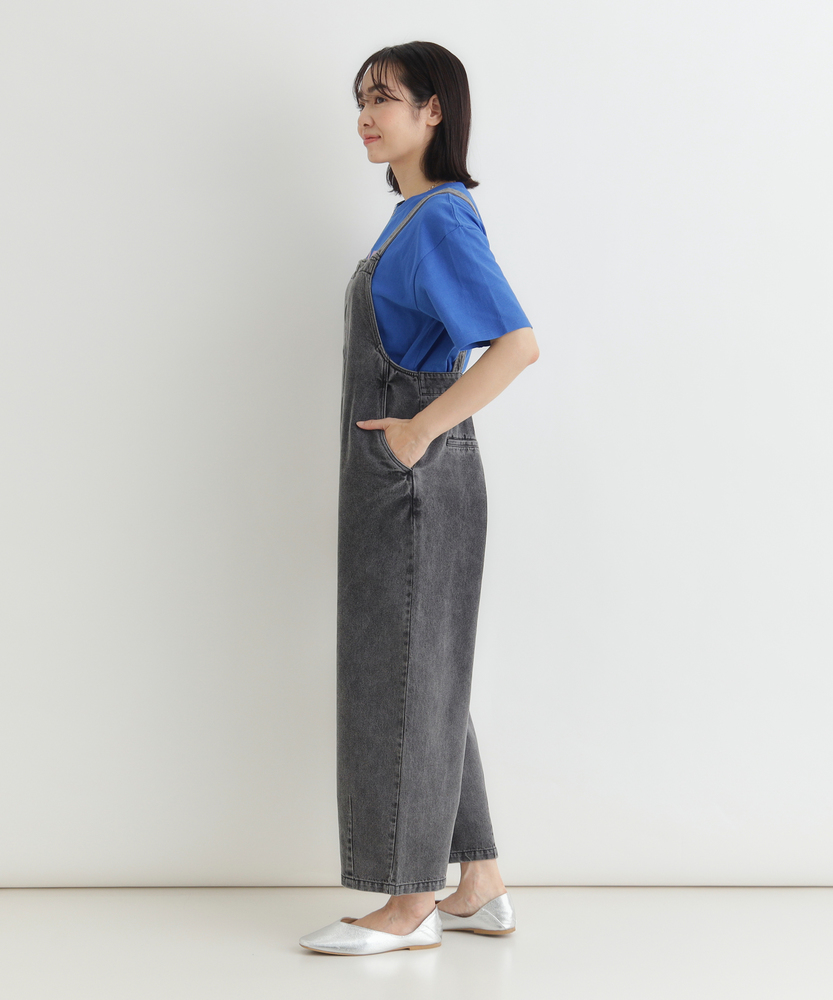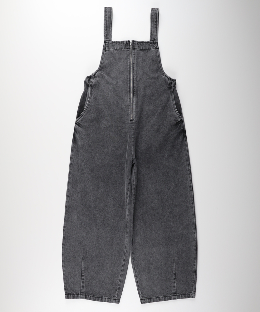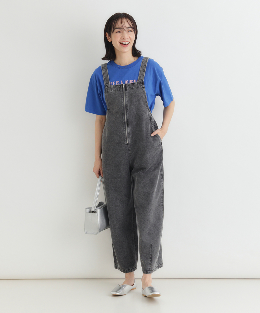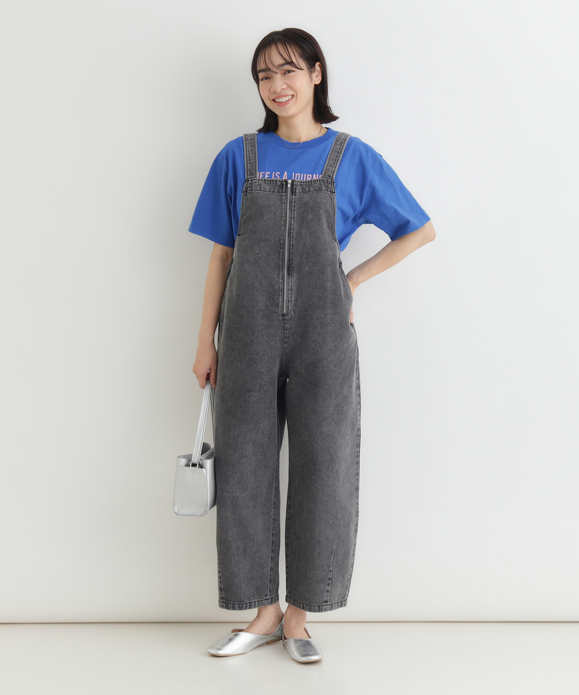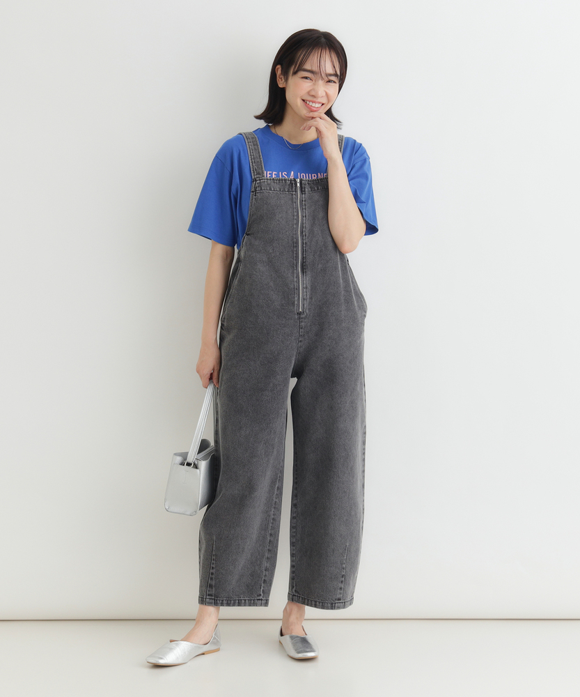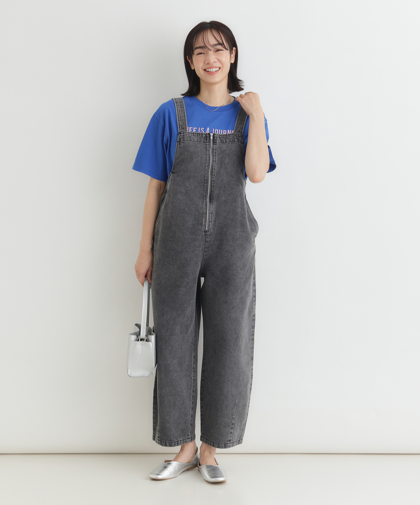 フロントジップで叶える「大人の抜け感」。幼く見えない、洗練されたデニムサロペット。着るだけで、こなれた日常スタイルが完成。■Point・アクセントになる「フロントジップ」縦のラインを強調し、スタイルアップ効果も。金属ファスナーが、カジュアルの中に都会的なシャープさを加えます。着脱がスムーズなのも嬉しいポイントです。・体型を拾わない「美ワイドシルエット」ゆったりとした着心地ながら、ルーズになりすぎない絶妙なバランス。気になる腰回りや脚のラインを自然にカバーします。リラックス感とスマートさを両立しました。・立体感を生む「裾ダーツデザイン」裾に施されたダーツ処理が、平面的なデニムに立体的な表情をプラス。ただのワイドパンツとは一味違う、こだわりのシルエットです。足元に軽やかなニュアンスを与えます。・ヴィンテージライクな「加工感」長年着込んだような、味のある色落ち加工が魅力。深みのあるダークトーンは、どんな色のトップスとも好相性。大人のカジュアルスタイルに馴染む落ち着いた風合いです。・実用的な「ポケットデザイン」両サイドには深めのポケットを配置し、機能性も確保。ヒップポケットは玉縁仕様ですっきりとさせ、余計な装飾を削ぎ落としたミニマルなデザインに仕上げています。【デザイン】ワークテイストなサロペットを、フロントジップと洗練されたシルエットで大人顔にアップデートしました。胸元から続くファスナーが全体を引き締め、アクセサリーなしでもサマになるデザインです。肩紐をシンプルに仕上げることで、子供っぽさを抑え、モードな雰囲気さえ漂う一着に仕上げています。【素材】程よい厚みがありながらも、洗いをかけたような馴染みの良いデニム生地を使用しています。硬すぎず、ごわつきにくい風合いで、シーズンレスに活躍。インナーを変えることで、春先から秋冬まで長く愛用できる頼れる素材感です。【着こなしポイント】Tシャツやタンクトップを合わせたヘルシーなスタイルはもちろん、甘めのブラウスを合わせてテイストをミックスさせるのもおすすめ。足元はスニーカーでカジュアルに、パンプスやブーツでレディにと、小物次第で幅広い表情を楽しめます。フロントジップの開け具合で、インナーの見え方を調整できるのも魅力です。