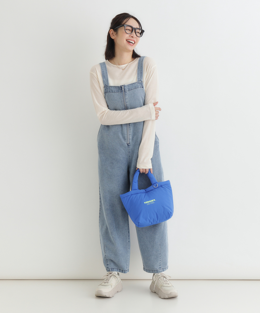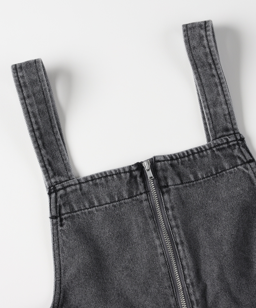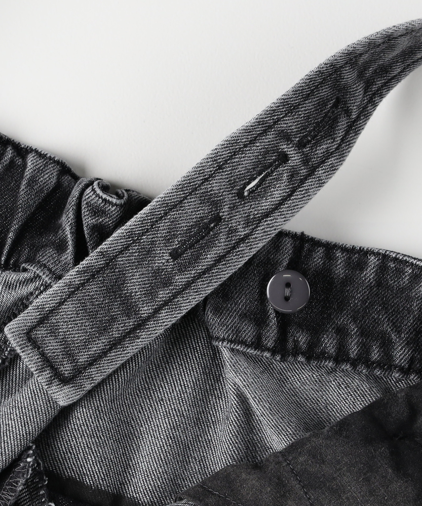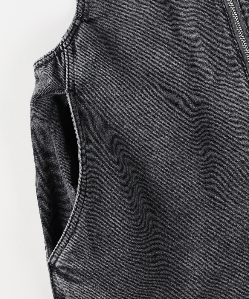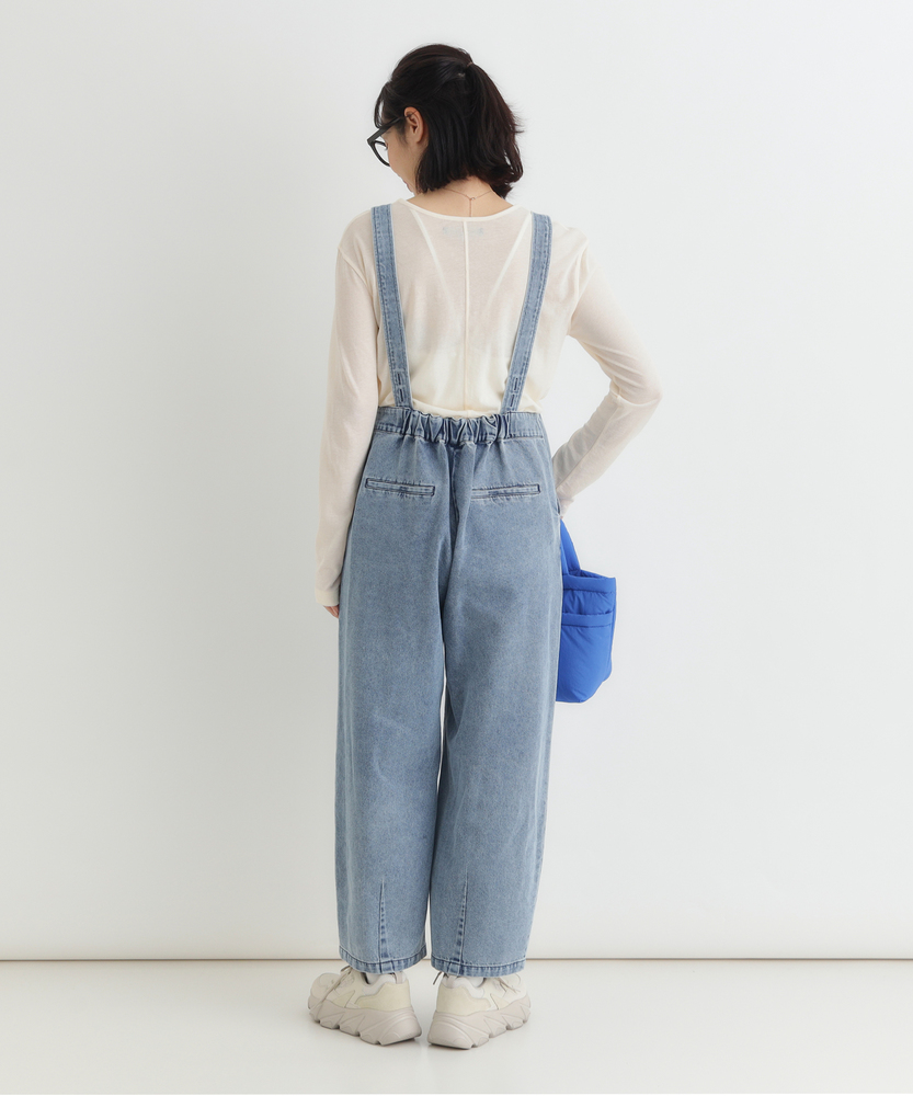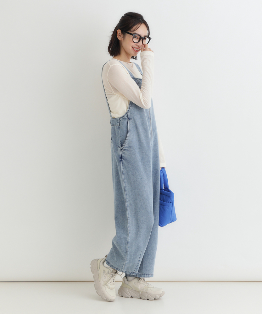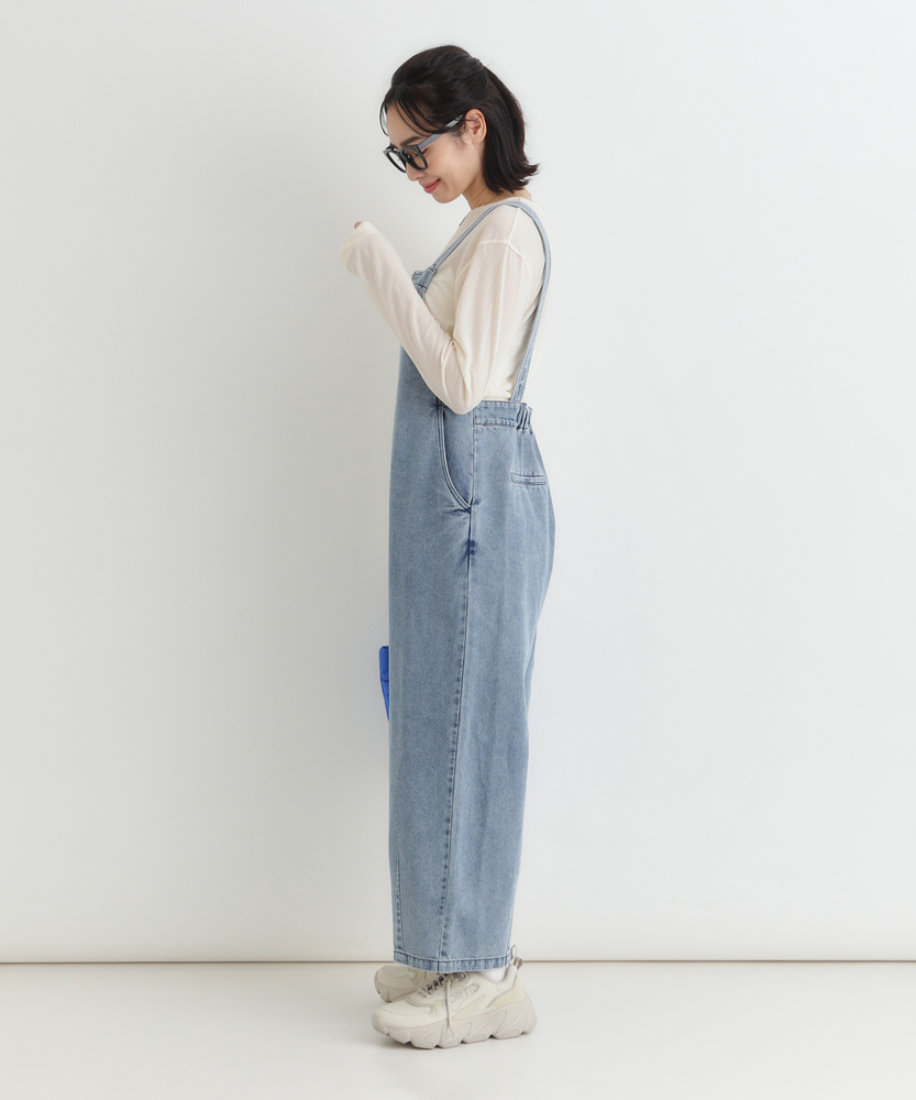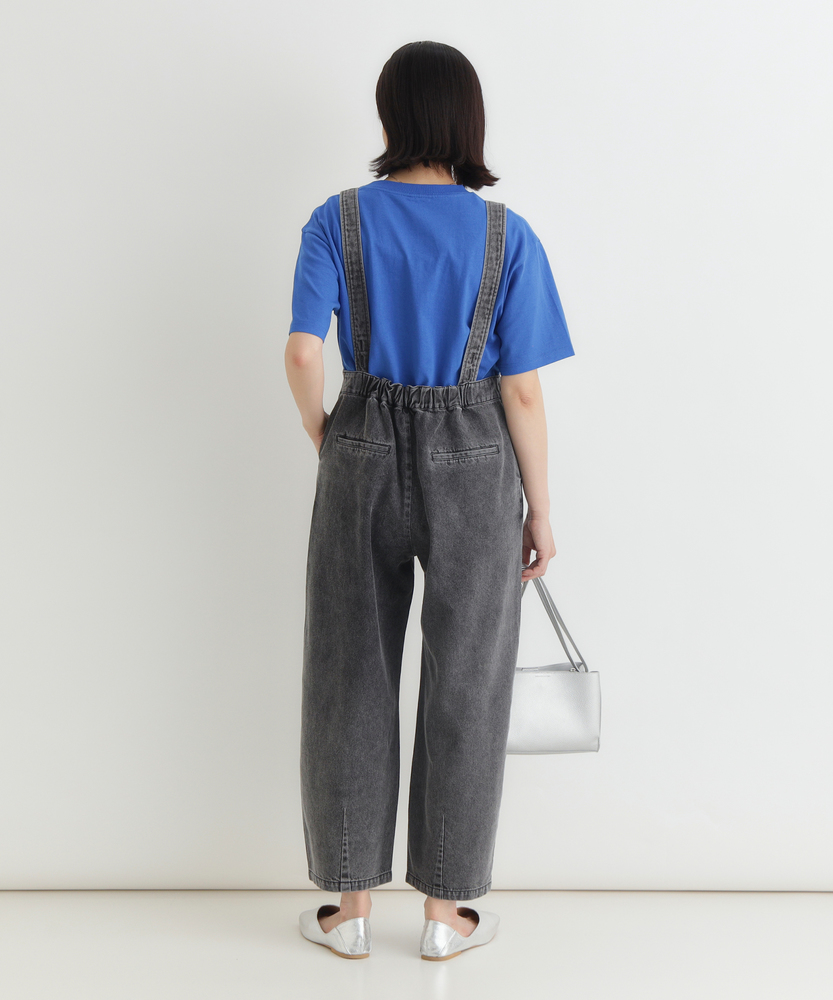 フロントジップで叶える「大人の抜け感」。幼く見えない、洗練されたデニムサロペット。着るだけで、こなれた日常スタイルが完成。■Point・アクセントになる「フロントジップ」縦のラインを強調し、スタイルアップ効果も。金属ファスナーが、カジュアルの中に都会的なシャープさを加えます。着脱がスムーズなのも嬉しいポイントです。・体型を拾わない「美ワイドシルエット」ゆったりとした着心地ながら、ルーズになりすぎない絶妙なバランス。気になる腰回りや脚のラインを自然にカバーします。リラックス感とスマートさを両立しました。・立体感を生む「裾ダーツデザイン」裾に施されたダーツ処理が、平面的なデニムに立体的な表情をプラス。ただのワイドパンツとは一味違う、こだわりのシルエットです。足元に軽やかなニュアンスを与えます。・ヴィンテージライクな「加工感」長年着込んだような、味のある色落ち加工が魅力。深みのあるダークトーンは、どんな色のトップスとも好相性。大人のカジュアルスタイルに馴染む落ち着いた風合いです。・実用的な「ポケットデザイン」両サイドには深めのポケットを配置し、機能性も確保。ヒップポケットは玉縁仕様ですっきりとさせ、余計な装飾を削ぎ落としたミニマルなデザインに仕上げています。【デザイン】ワークテイストなサロペットを、フロントジップと洗練されたシルエットで大人顔にアップデートしました。胸元から続くファスナーが全体を引き締め、アクセサリーなしでもサマになるデザインです。肩紐をシンプルに仕上げることで、子供っぽさを抑え、モードな雰囲気さえ漂う一着に仕上げています。【素材】程よい厚みがありながらも、洗いをかけたような馴染みの良いデニム生地を使用しています。硬すぎず、ごわつきにくい風合いで、シーズンレスに活躍。インナーを変えることで、春先から秋冬まで長く愛用できる頼れる素材感です。【着こなしポイント】Tシャツやタンクトップを合わせたヘルシーなスタイルはもちろん、甘めのブラウスを合わせてテイストをミックスさせるのもおすすめ。足元はスニーカーでカジュアルに、パンプスやブーツでレディにと、小物次第で幅広い表情を楽しめます。フロントジップの開け具合で、インナーの見え方を調整できるのも魅力です。