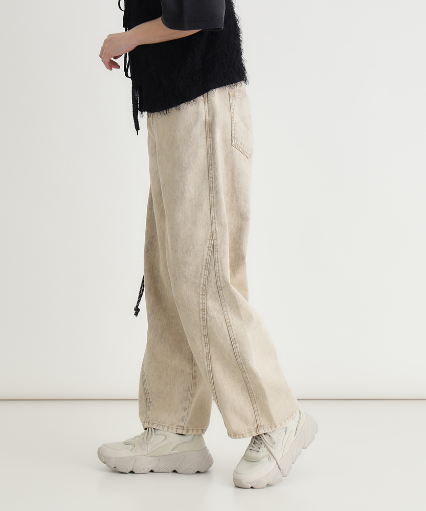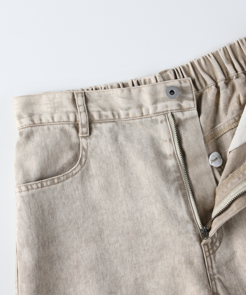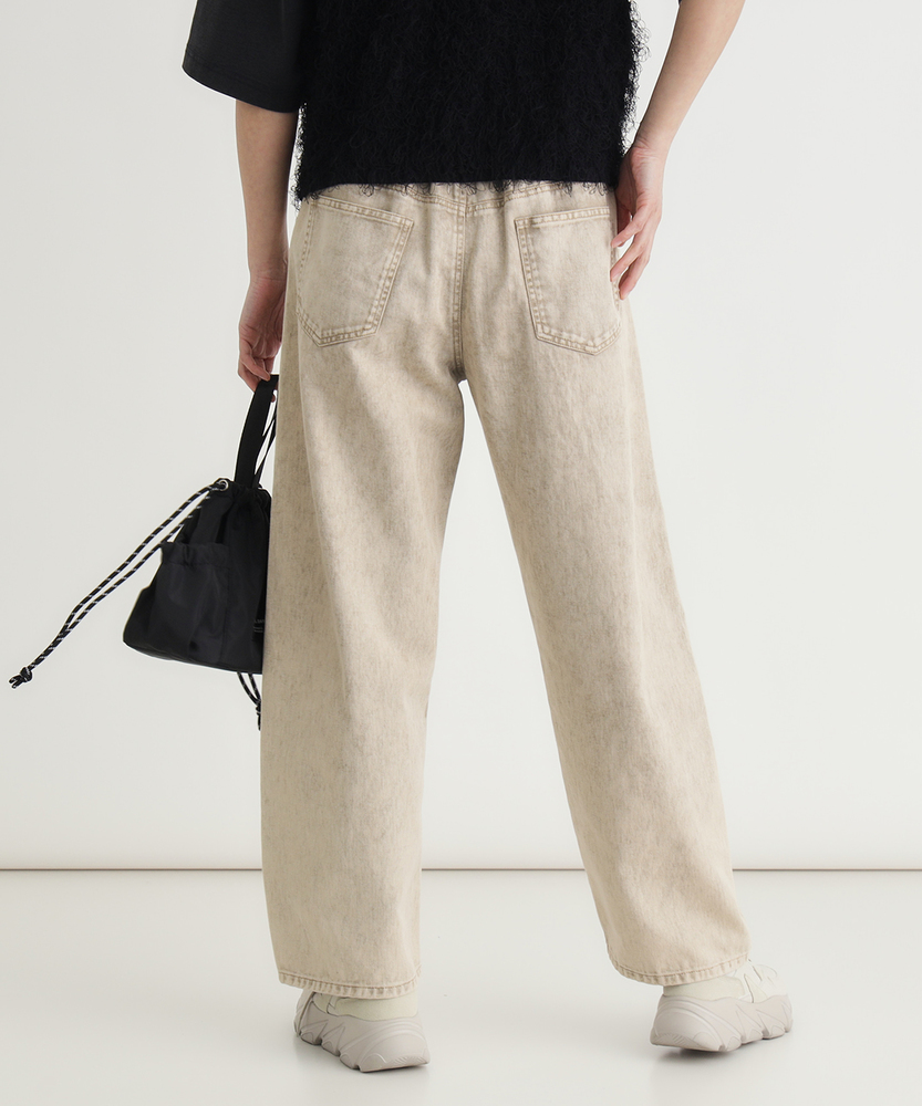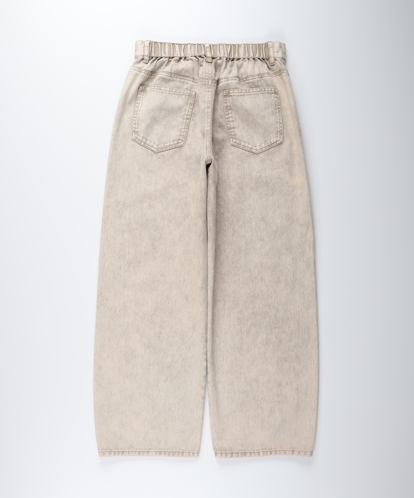 穿くだけでこなれる、大人のヴィンテージライク。気になるラインをカバーする、最旬コクーンシルエット。頑張りすぎない、私らしい日常のカジュアルパンツ。■Point・最旬コクーンシルエット立体的な丸みが特徴。トレンド感を押さえつつ、大人のリラックスを演出。・嬉しい体型カバー効果ゆったりとしたサイジング。脚のラインを拾わず、すっきりと見せてくれます。・こだわりのケミカル加工硫化染めツイル生地を使用。絶妙な色落ちとアタリ感。表情豊かな仕上がりです。・快適な穿き心地の綿100%肌馴染みの良いコットン素材。ハリのあるしっかりとした生地。ロングシーズン活躍します。・すっきり見えの切り替えラインフロントに入ったダーツライン。縦のラインを強調し、野暮ったさを回避します。・楽ちんな後ろウエストゴムバックスタイルはゴム仕様。締め付け感を軽減し、快適なフィット感を実現。【仕様】丸みを帯びたトレンドのコクーンシルエットが、リラクシーな大人の抜け感を演出するパンツです。フロントにあしらわれた切り替えラインが立体感を生み出し、すっきりとした印象を与えます。後ろウエストはゴム仕様になっており、長時間の着用でもストレスフリーな穿き心地を実現。実用性とデザイン性を兼ね備えた一枚です。【素材】しっかりとしたハリ感のある綿100%のツイル生地を採用しています。特殊な硫化染めとケミカル加工を施すことで、長年穿き込んだようなヴィンテージライクな表情に仕上げました。肌触りが良く丈夫な素材なので、デイリーユースとして気兼ねなくお使いいただけます。季節を問わずロングシーズン着回せるのも魅力です。【スタイリング】存在感のあるパンツなので、シンプルなTシャツやリブニットを合わせるだけでこなれたカジュアルスタイルが完成します。トップスをコンパクトにまとめたり、フロントだけ軽くインすると、コクーンシルエットがより引き立ちバランス良くまとまります。足元はスニーカーからパンプスまで、幅広いアイテムと好相性です。 【セットアップで着用可能なアイテムはこちら】HR26102300019 ケミカル加工ワーク半袖シャツ/セットアップ対応