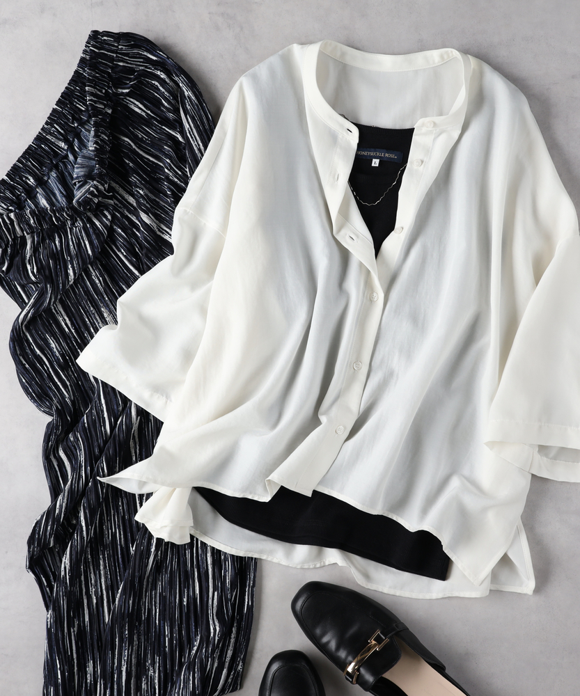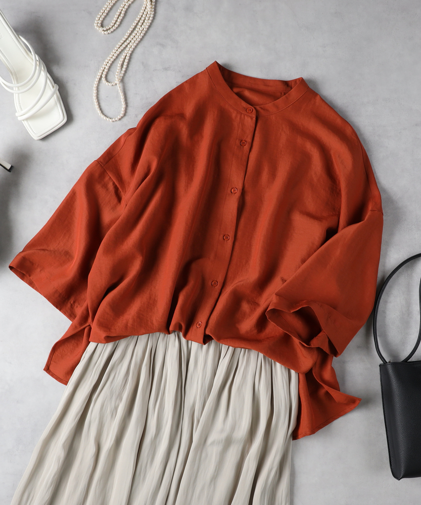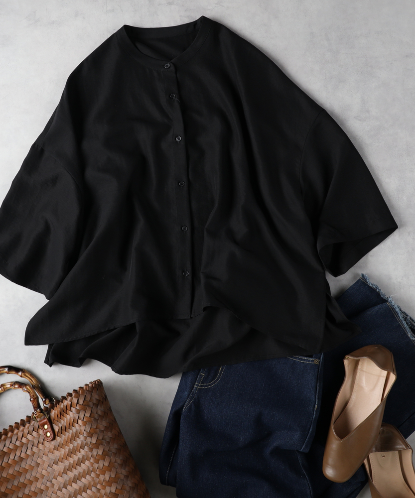 【仕様】リラックス感のあるシルエットが特徴のフィブリルサテンシャツ。軽やかな生地を使用し、動きやすさとエレガンスを両立。ボタンを外して着こなすことで、開放感のあるスタイルが楽しめます。【素材】特別に仕立てたフィブリルサテンを使用し、柔らかな光沢感を持つ一枚。通気性が良く、肌当たりも滑らかで夏場でも快適に着用できます。洗練された印象を損なうことなく、デイリーユースに最適なアイテムです。【スタイリング】デニムやリブパンツとの相性が抜群で、カジュアルなコーディネートが楽しめます。シンプルなアクセサリーを合わせて、全体をクリーンな印象に仕上げるのがおすすめ。また、パンプスを合わせて少しエレガントに仕上げるコーデも◎。