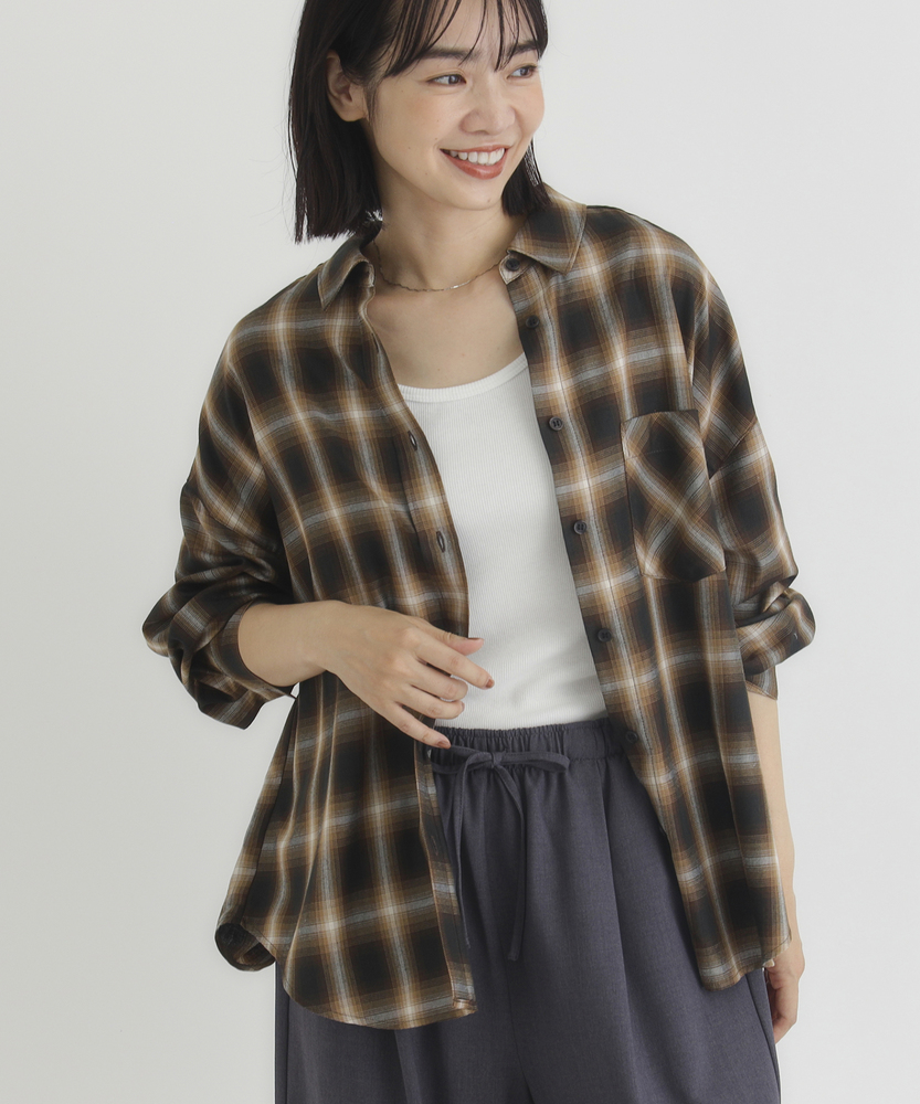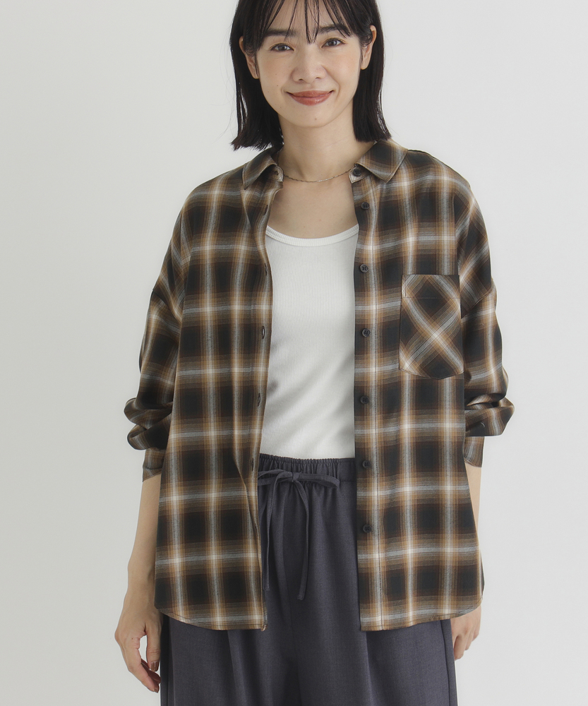 この秋冬はこれで決まり!な人気アイテム。お尻も隠せて体型カバーも叶えるチャックシャツ。■Point・ゆったりめのシルエット。お尻も隠れる着丈で体型カバー。・ドロップショルダーでワイドな身幅。・前身は短く、後ろはヒップも隠れる絶妙な長さの着丈。・寒暖差の大きい時期にピッタリな羽織アイテム。・コレ1つで秋気分に。【仕様】オンブレチェックシャツは、カジュアルでありながらも洗練された印象を与える一着です。ゆったりとしたシルエットと、フロントのボタンが特徴で、リラックスした着こなしが楽しめます。胸ポケットがアクセントになり、実用性も兼ね備えています。【素材】 柔らかな素材を使用しており、肌触りが良く、快適な着心地を実現。通気性があり、季節を問わず着用できるため、デイリーユースに最適です。チェック柄がスタイリングに深みを与えます。 【スタイリング】 シンプルなTシャツやタンクトップの上に重ねることで、リラックスしたカジュアルスタイルが完成。デニムやチノパンと合わせれば、アクティブな日常にもぴったりです。アクセサリーで個性をプラスして、スタイリッシュに仕上げましょう。 【親子でお揃い】キッズアイテムはこちら▶MP25203200008 オンブレチェックシャツ
