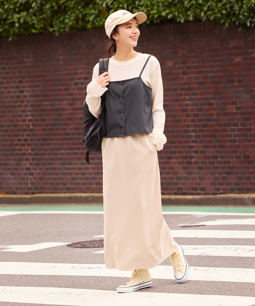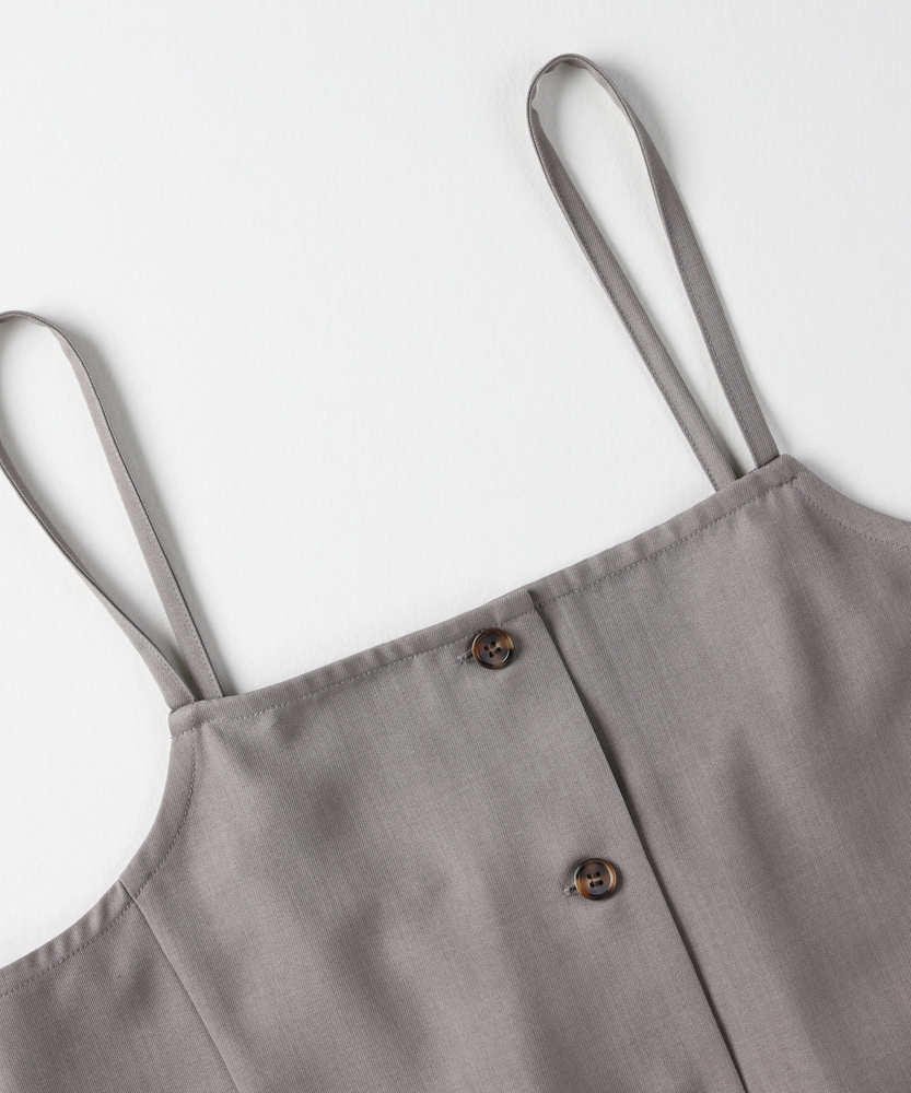 【仕様】洗練されたウール調キャミビスチェは、シンプルながらも存在感のあるアイテム。フロントのボタンディテールがアクセントとなり、カジュアルさとエレガンスを兼ね備えています。調整可能なストラップで、フィット感を自在に調整可能です。【素材】 柔らかなウール調生地を使用し、心地よい肌触りが特徴。軽やかでありながら、しっかりとした質感があり、季節を問わず快適に着用できます。通気性も良く、デイリー使いに最適です。 【スタイリング】 シンプルなTシャツやブラウスの上に重ねて、レイヤードスタイルを楽しむのがオススメ。スカートやワイドパンツと合わせることで、カジュアルながらも洗練された印象に。アクセサリーで個性をプラスすることで、コーディネートの幅が広がります。 【セットアップで着用可能なアイテムはこちら】HR25202200010 ウール調ワイドパンツ /セットアップ対応HR25202200013 ウール調サロペット /セットアップ対応
