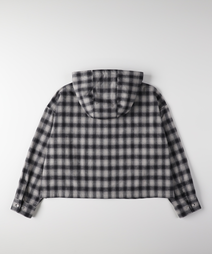 【仕様】トレンドを押さえた短丈のシャツパーカー。ルーズなシルエットとフードデザインがリラックス感を演出し、ネルチェックのパターンが独自のアクセントに。前立てのボタンがスタイリッシュさを加えています。【素材】 柔らかなネルチェック素材を使用しており、優れた保温性を誇ります。軽やかな着心地ながら、肌触りが良く、ストレスを感じさせない仕上がり。カジュアルなシーンだけでなく、ちょっとした外出にも適したアイテムです。 【スタイリング】 カジュアルなパンツやスキニーパンツとの相性は抜群。シンプルなトップスとのレイヤードスタイルで、カジュアルな中にもこなれ感を。ブーツやスニーカーと合わせて、アクティブな日のコーディネートを楽しんで。ロンTやタートルネックと重ね着するのもおすすめです。