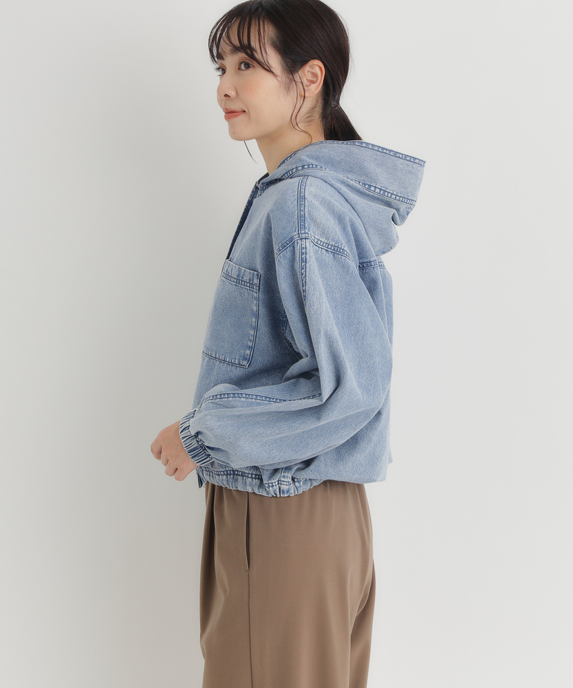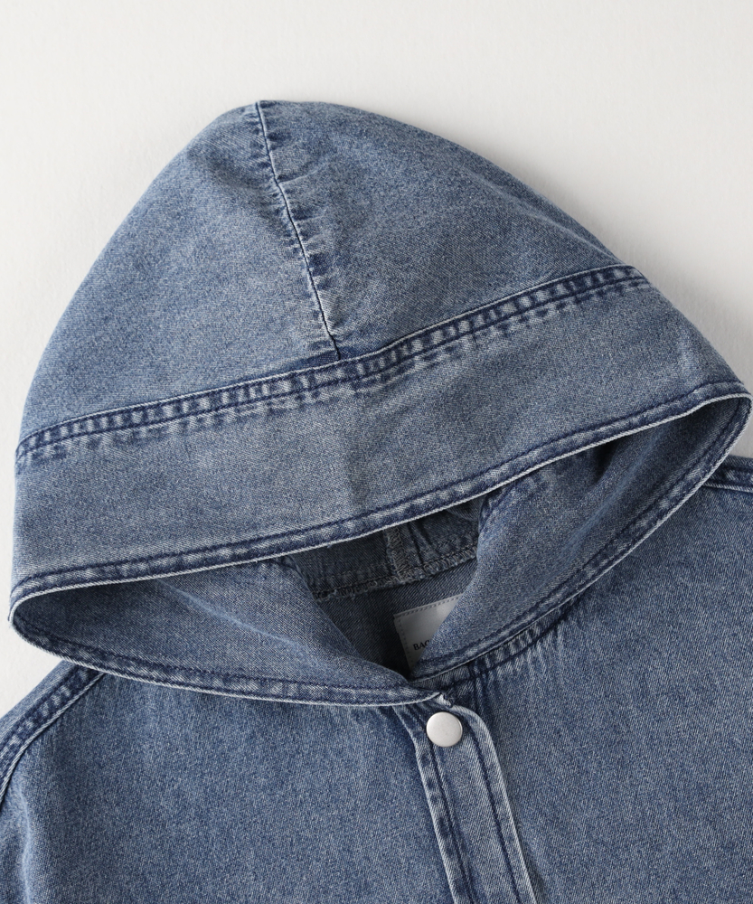 【仕様】カジュアルでありながら洗練された印象を与えるデニムフードシャツ。フード付きのデザインは、リラックス感を演出しつつ、スタイリッシュなシルエットを保っています。袖口のギャザーや、フロントのボタンディテールがアクセントとなり、シンプルながらも個性的な魅力を引き立てます。【素材】 柔らかなデニム素材を使用し、着心地の良さと動きやすさを実現。軽やかな仕上がりで、デイリーコーデにぴったり。耐久性も兼ね備えており、長く愛用できるアイテムです。カジュアルな印象ながら、洗練された雰囲気を醸し出します。 【スタイリング】 デニムフードシャツは、シンプルなTシャツやタートルネックと合わせて、リラックスしたスタイルに。ボトムスには、スリムなパンツやスカートを選ぶことで、バランスの取れたシルエットを作り出します。アクセサリーやシューズで個性をプラスして、洗練されたカジュアルスタイルを楽しんで。