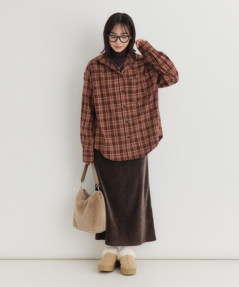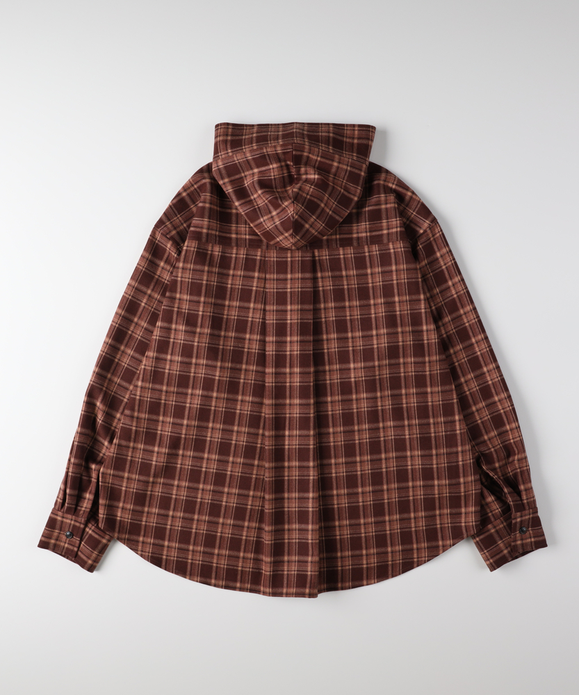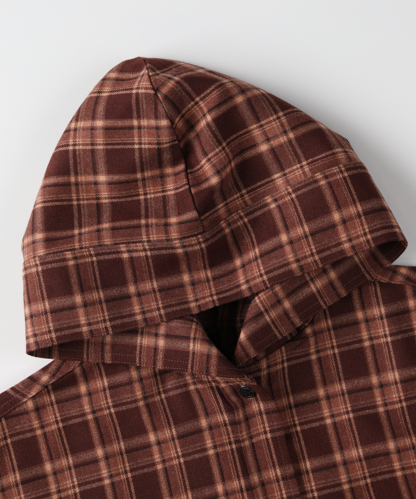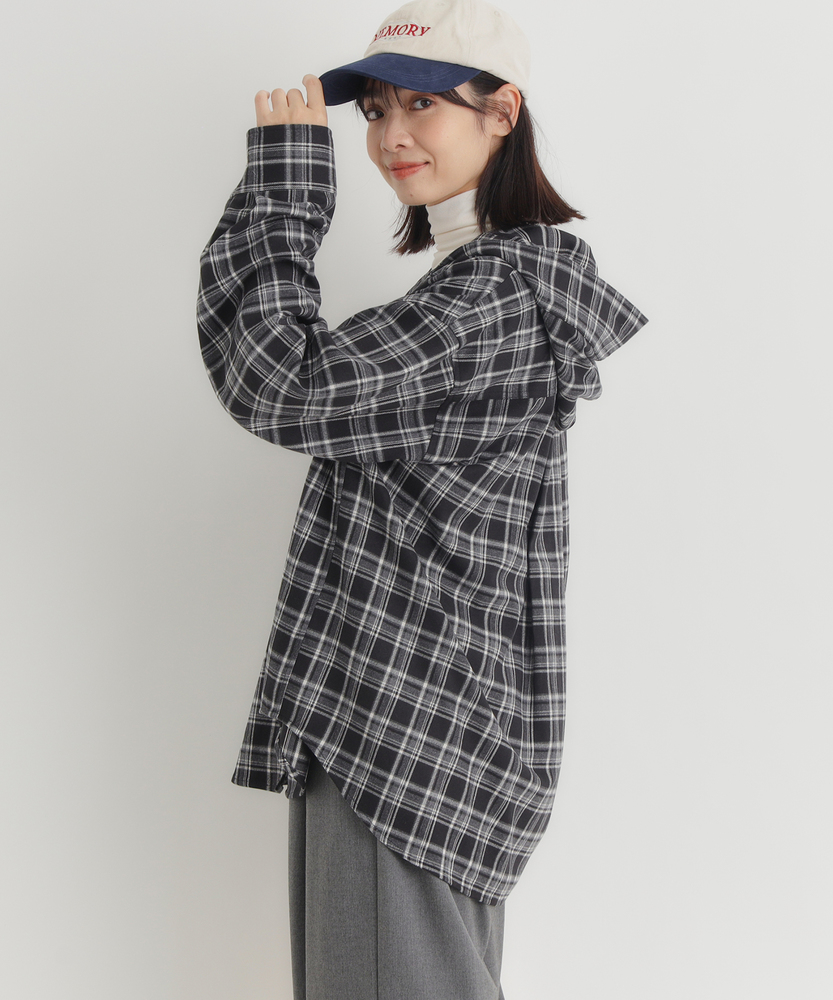 【仕様】フードが印象的なチェックシャツは、トレンド感と機能性を兼ね備え、羽織りとしても活躍します。落ち着いたカラーリングの温かみのあるチェック柄は、一枚でスタイリングの主役に。シンプルなデザインなので、ボトムスを問わず自由にコーディネートできます。【素材】 優しい肌触りの起毛感が特徴の素材は、心地よい温もりを提供。柔らかい風合いが、カジュアルながらも洗練された雰囲気を生み出します。デイリーに取り入れやすく、長時間の着用でも快適さを維持します。 【スタイリング】 ゆったりとしたシルエットは、インナーにTシャツやタートルネックを合わせレイヤードスタイルを楽しむのに最適。デニムやタイトスカートと合わせることで、カジュアルにもフェミニンにも着こなせる汎用性の高いアイテムです。