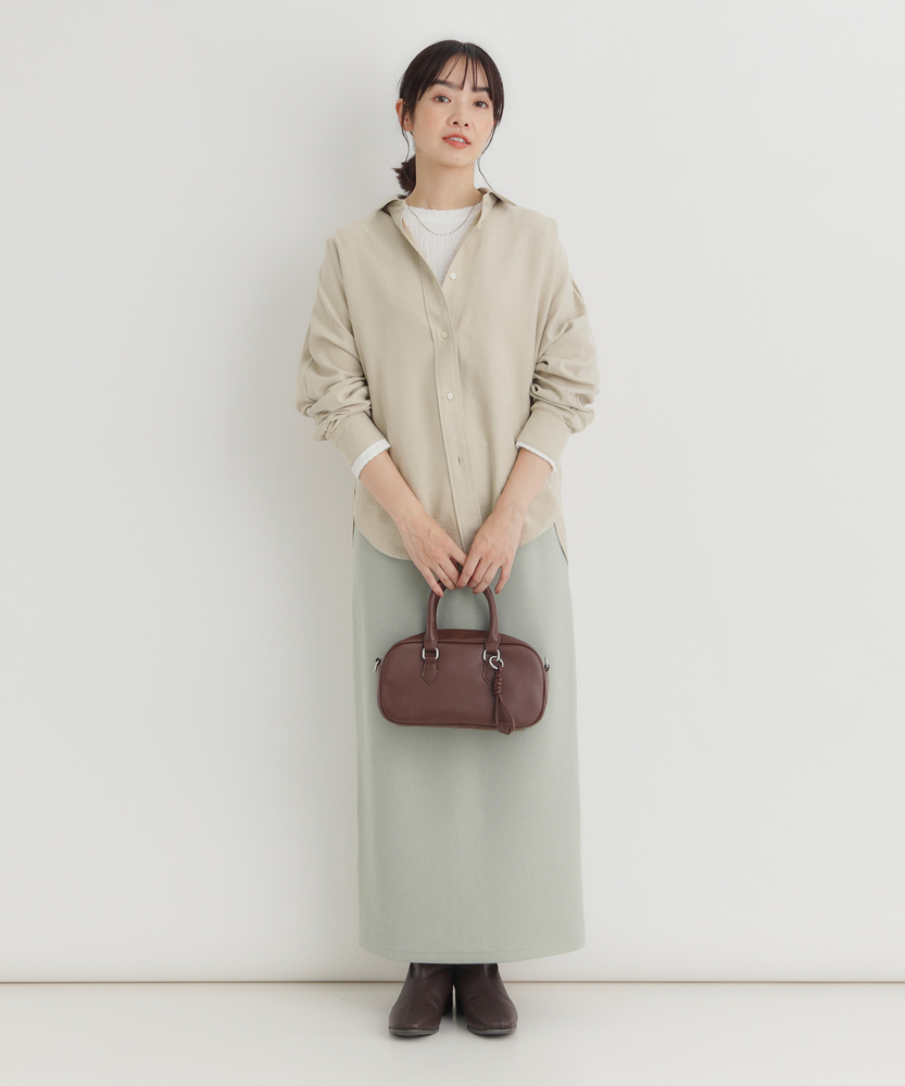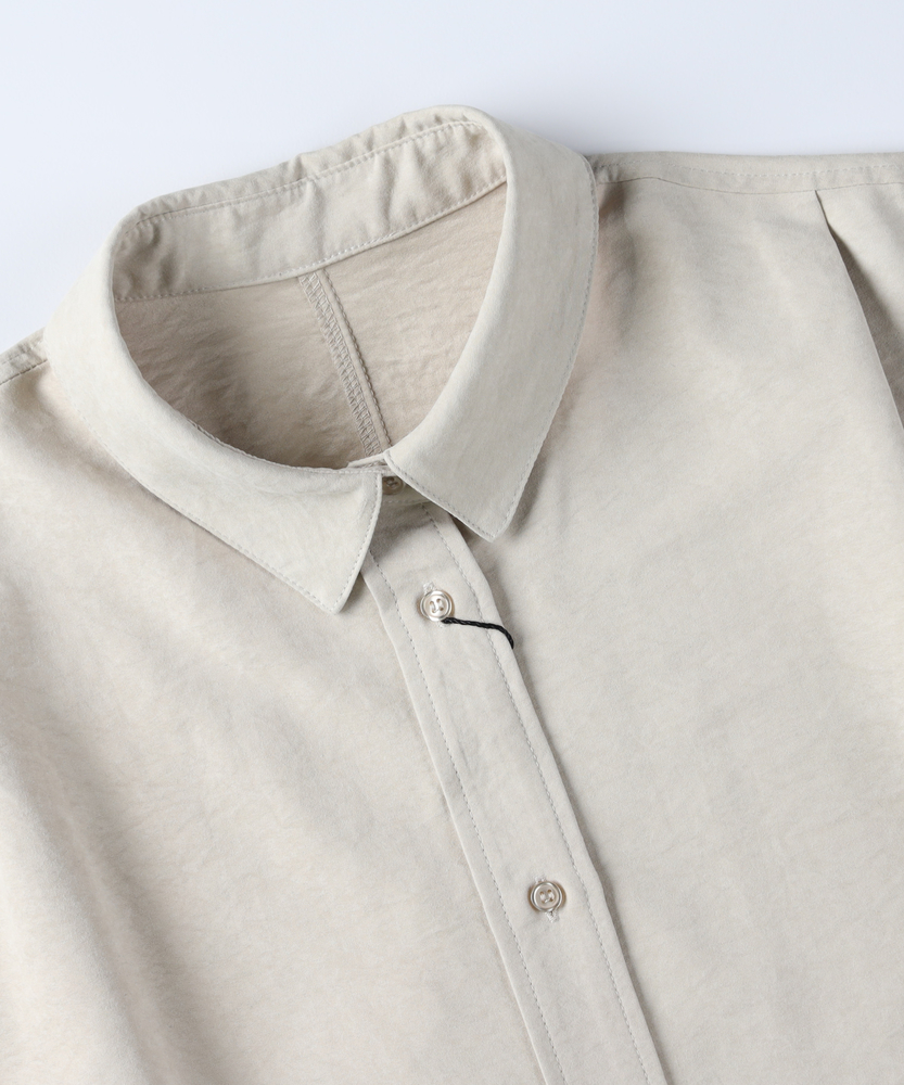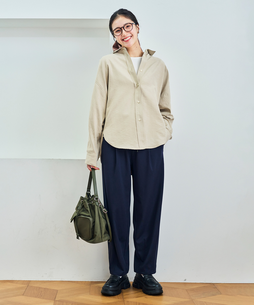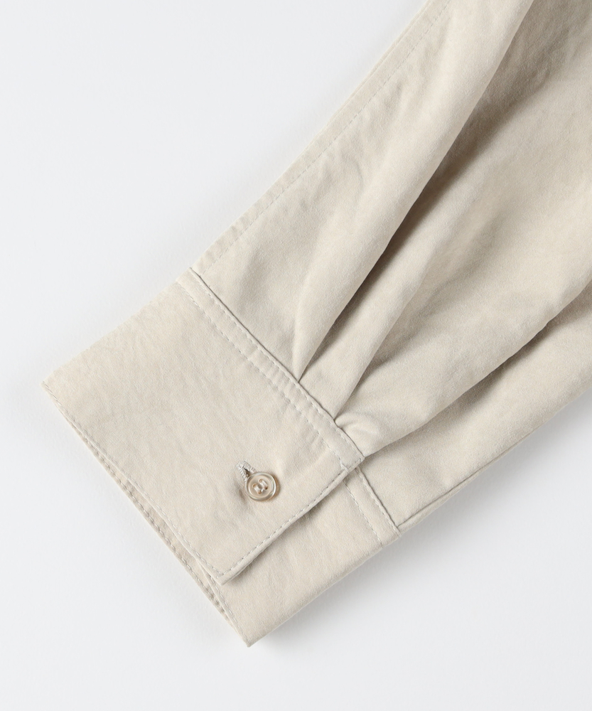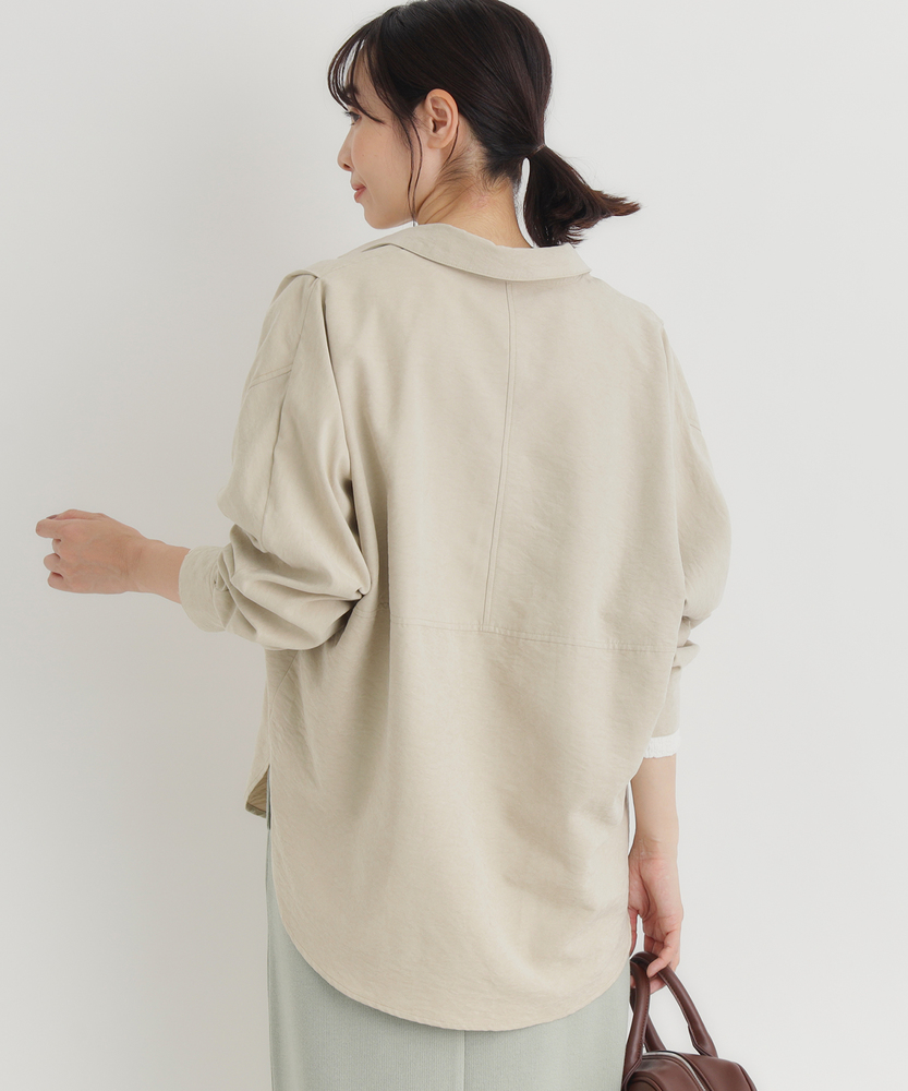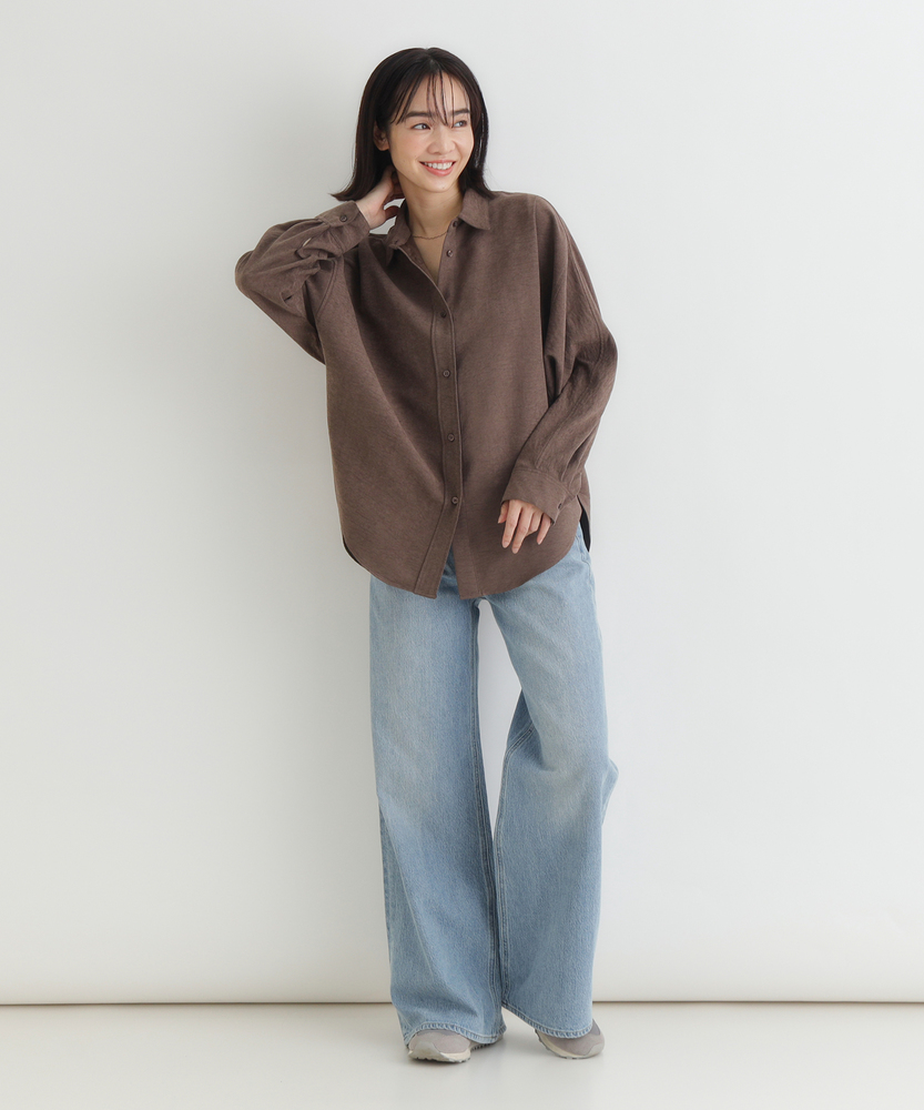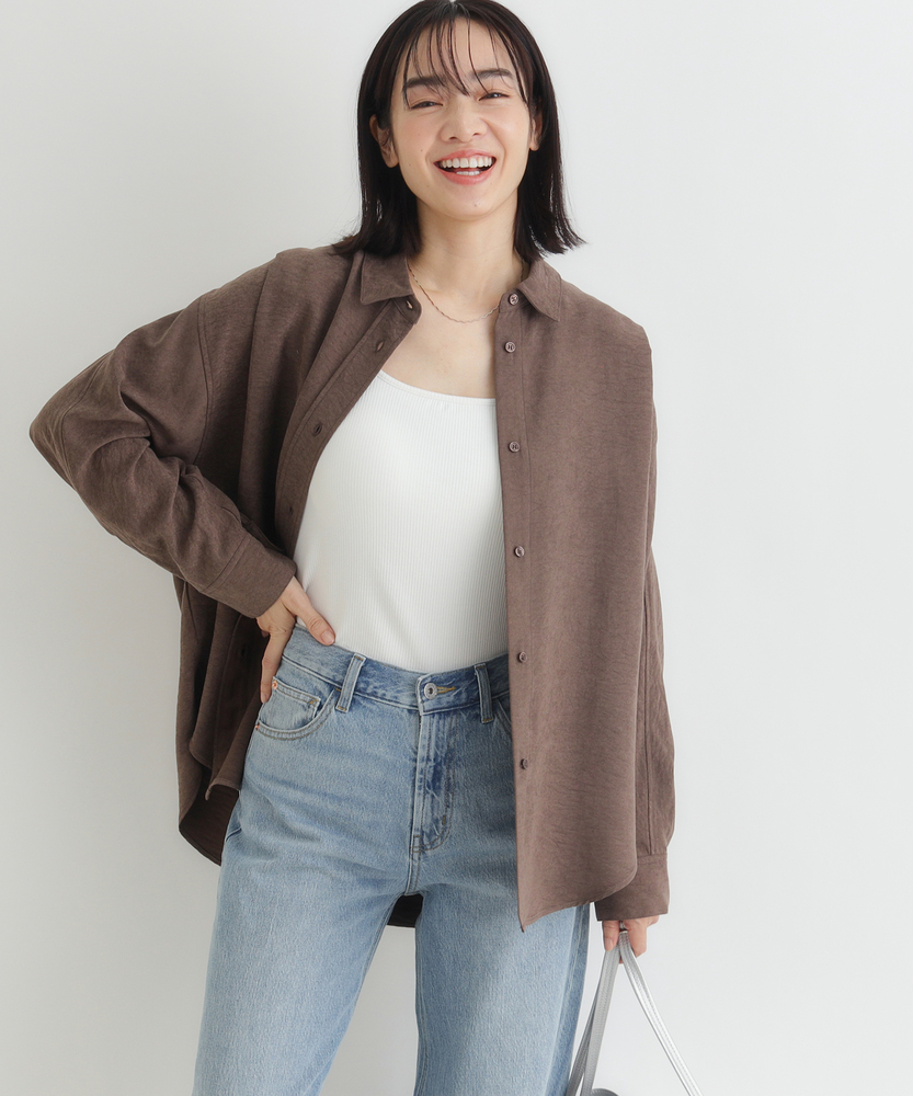 【仕様】ゆったりとしたドルマンシルエットが魅力のスエードシャツ。柔らかな印象のデザインは、リラックス感と上品さを兼ね備え、コーディネートに華を添えます。新しい季節の始まりにぴったりなアイテムです。【素材】 しなやかで風合い豊かなスエードライク素材を使用。軽やかな着心地と温かみのある表情が特徴で、カジュアルからフォーマルまで幅広く活用可能です。心地よさを追求した一枚です。 【スタイリング】 デニムと合わせてシンプルにまとめたり、スカートと組み合わせてフェミニンなスタイルを楽しむのもおすすめ。シンプルなトップスとして、デイリーコーデに活躍し、着こなしの幅を広げてくれるアイテムです。