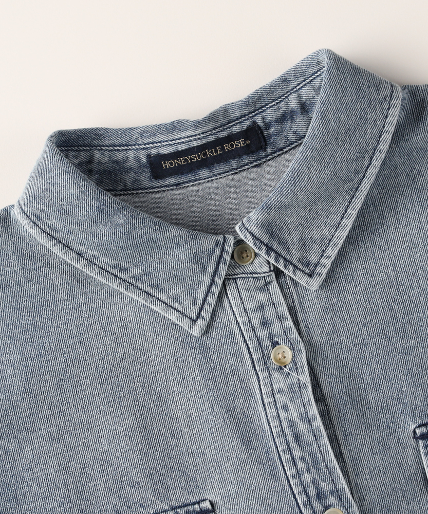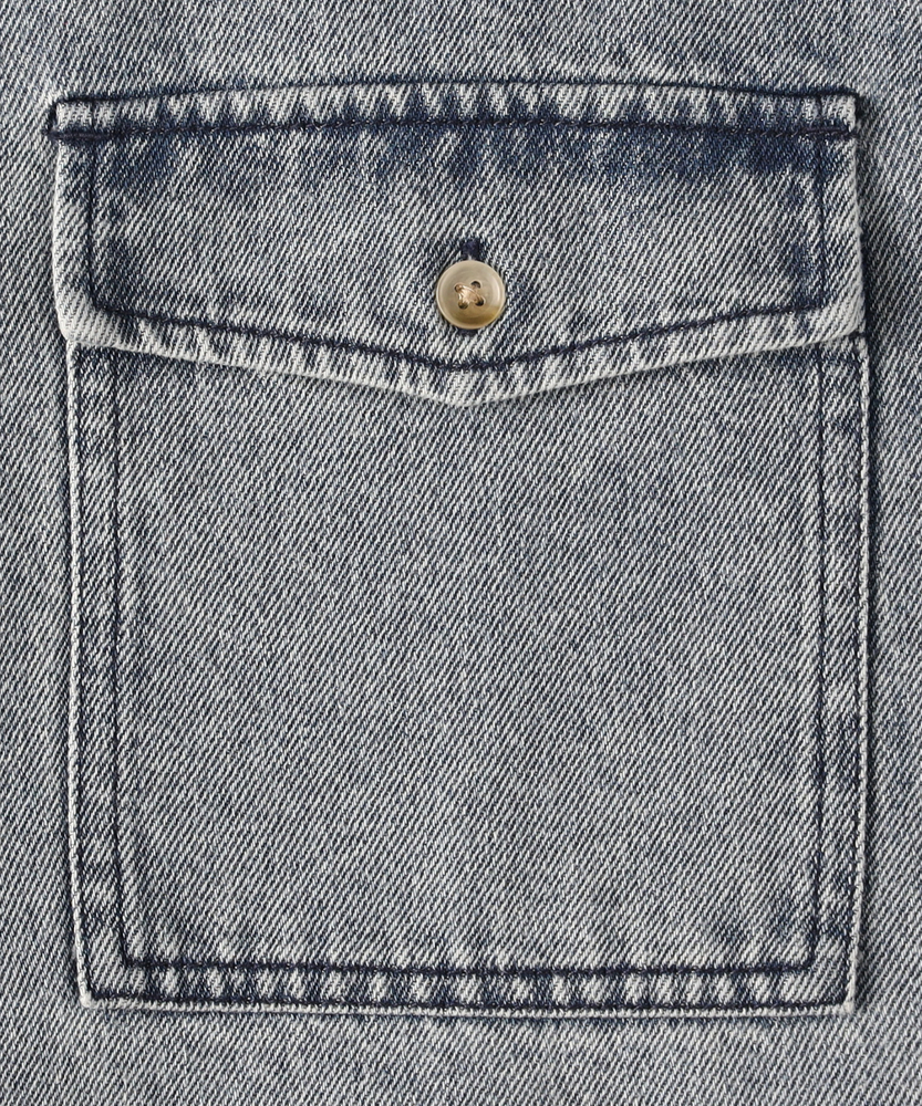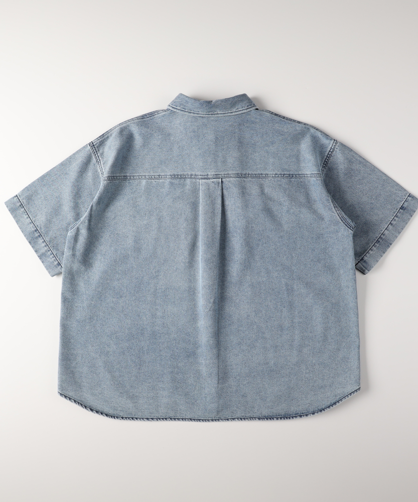 サッと羽織って、こなれ感。大人のヴィンテージライク。柔らかな落ち感で魅せる、最旬ワイドシルエット。初夏の羽織りにも。日常に寄り添う優秀デニムシャツ。■Point・こなれ感漂うケミカル加工ユーズド感のある絶妙な色落ち。表情豊かなデニム素材が、大人のカジュアルを格上げ。・柔らかなテンセル混デニム落ち感のある柔らかな風合い。デニム特引のごわつきがなく、心地よい着心地を叶えます。・トレンドのワイドフィットゆったりとしたサイジング。体のラインを拾わず、リラクシーな雰囲気を演出。・アクセントの胸ポケット両胸にフラップポケットを配置。ワークテイストなデザインが着こなしのアクセントに。・立体感を生む背面タック背中にタックを入れることで、ふんわりとしたシルエットに。後ろ姿も抜かりなく美しく。・着回し力抜群の万能シャツボタンを閉めて一枚着としても、サッと羽織るスタイルにも。初夏まで長く活躍します。【仕様】ゆったりとしたワイドフィットが抜け感を演出する、半袖ワークデニムシャツです。肩の落ちたドロップショルダーが、気になる二の腕やボディラインを優しくカバーします。両胸のフラップポケットや裾のラウンドカット、背面のタックなど、細部にこだわった立体的なシルエットが、360度どこから見てもサマになる一枚です。【素材】落ち感があり、非常に柔らかな着心地が特徴のテンセル混デニムを使用しています。特殊なケミカル加工を施すことで、長年着込んだようなヴィンテージライクな色落ちと表情を表現しました。肌触りが良く軽やかな生地感なので、デニム特有のごわつきが苦手な方にもおすすめ。デイリーに気兼ねなくお使いいただけます。【スタイリング】フロントボタンを閉めて一枚着としてはもちろん、Tシャツやタンクトップの上からサッと羽織るレイヤードスタイルもおすすめです。トレンドのワイドパンツや落ち感のあるスカートと合わせれば、大人のリラクシーなカジュアルコーデが完成します。涼しげな色合いが、初夏のスタイリングに爽やかなアクセントをプラスします。 【セットアップで着用可能なアイテムはこちら】HR26102200014 ケミカル加工コクーンパンツ/セットアップ対応