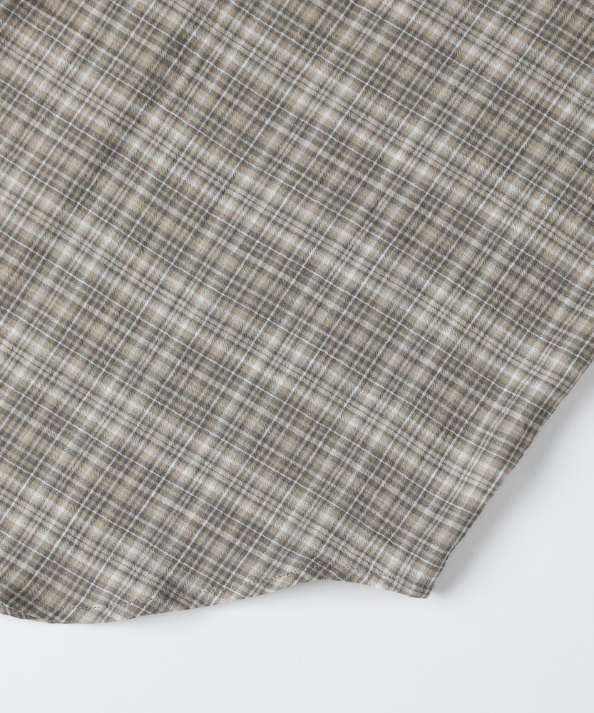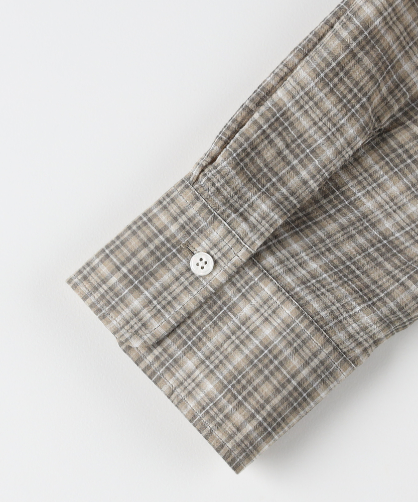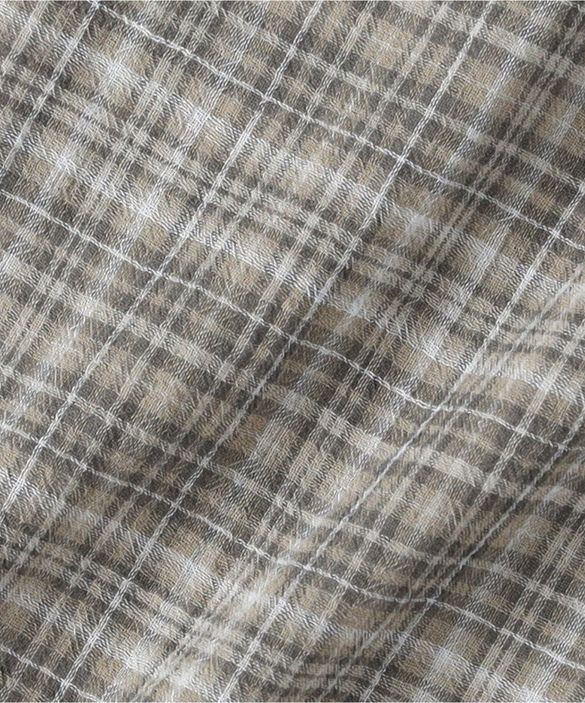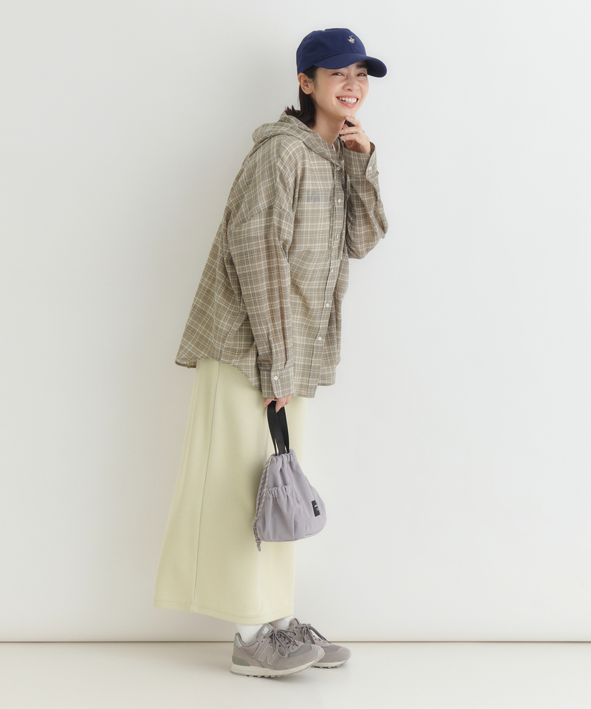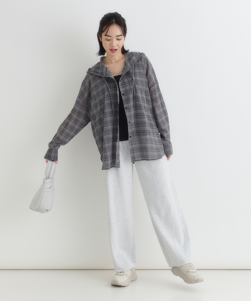 透け感で魅せる大人のカジュアルスタイル。ふんわりシルエットで優しく体型カバー。羽織るだけでこなれ感漂うフード付きシャツ。■Point・軽やかなシアー素材で女性らしく程よい透け感が魅力的な一枚。重たくならず涼しげな印象に。抜け感のある大人の着こなしへ。・ゆったりオーバーサイズ体のラインを拾わないシルエット。リラクシーな着心地を実現します。さりげなく体型カバーも叶う設計。・立体感を生む背中のタックバックスタイルも美しく演出。動くたびにふんわり広がります。後ろ姿まで抜かりないデザイン。・抜け感を作るラウンドヘム前後差のある丸みを帯びた裾。気になる腰回りを自然にカバー。アウトスタイルもすっきり決まる。・大人に似合う細かなチェック柄落ち着いたトーンの配色が魅力。カジュアルすぎず上品な雰囲気に。日常のワードローブに馴染みます。・着回し力抜群の前開き仕様ボタンを閉めてトップスとして。サッと羽織るライトアウターにも。季節の変わり目にも重宝します。【仕様】全体的にゆったりとしたリラクシーなシルエットが特徴のアイテムです。ドロップショルダーと背中に施されたタックがふんわりとした立体感を生み出し、女性らしい柔らかなフォルムを描きます。裾は丸みを帯びたラウンドカットで、抜け感をプラス。日常着として気兼ねなく取り入れやすい、程よいカジュアルさが魅力です。【素材】トレンド感のあるほのかな透け感が特徴のシアー生地を採用しています。細かいチェック柄が落ち着いた印象を与え、大人っぽい雰囲気を演出。肌離れが良く、軽やかで風をはらむような着心地は、ロングシーズンにわたって快適にお召しいただけます。見た目にも涼しげで、レイヤードスタイルを軽快に彩る素材感です。【スタイリング】インナーにキャミソールなどを合わせ、透け感を活かした着こなしがおすすめ。ボトムスには細身のパンツやストレートスカートを合わせると、バランス良くすっきりとまとまります。前を開けて軽い羽織りとして羽織れば、いつものデイリーコーデがぐっと洗練された印象に。大人のリラックススタイルに最適です。