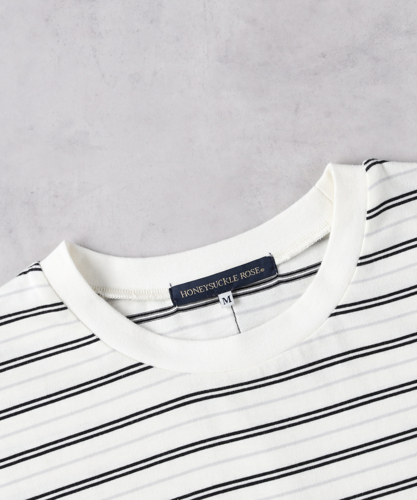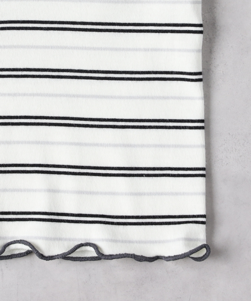【仕様】マルチボーダーのメロウデザインのこのTシャツは、カジュアルながらもスタイリッシュな印象を与えます。裾と袖口にはさりげないフリルが施されており、可愛らしさとフェミニンさをプラス。アイコニックな一着でありながら、どんなスタイルにもスムーズに馴染みます。【素材】柔らかく心地よいコットン素材を使用しているため、肌触りが抜群。通気性が高く、さらりとした着心地を提供します。ボーダーには色合いを工夫し、コーディネートしやすいシンプルさを持ちながらも存在感のあるデザインです。【スタイリング】フレアスカートやデニムと合わせることで、バランスの取れたスタイルを楽しめます。小物にはシンプルなトートバッグやスニーカーを選べば、軽快で都会的な印象に。季節を問わず活躍できるこのTシャツで、あなたのスタイルに新たなエッセンスを加えてみてください。