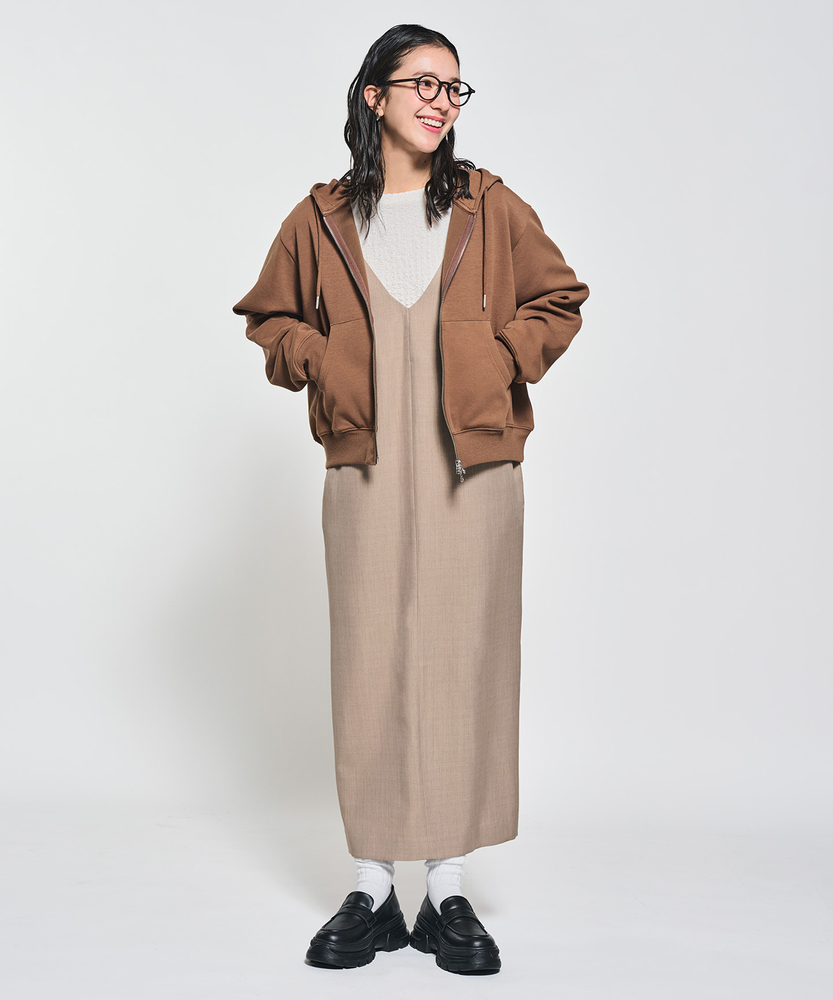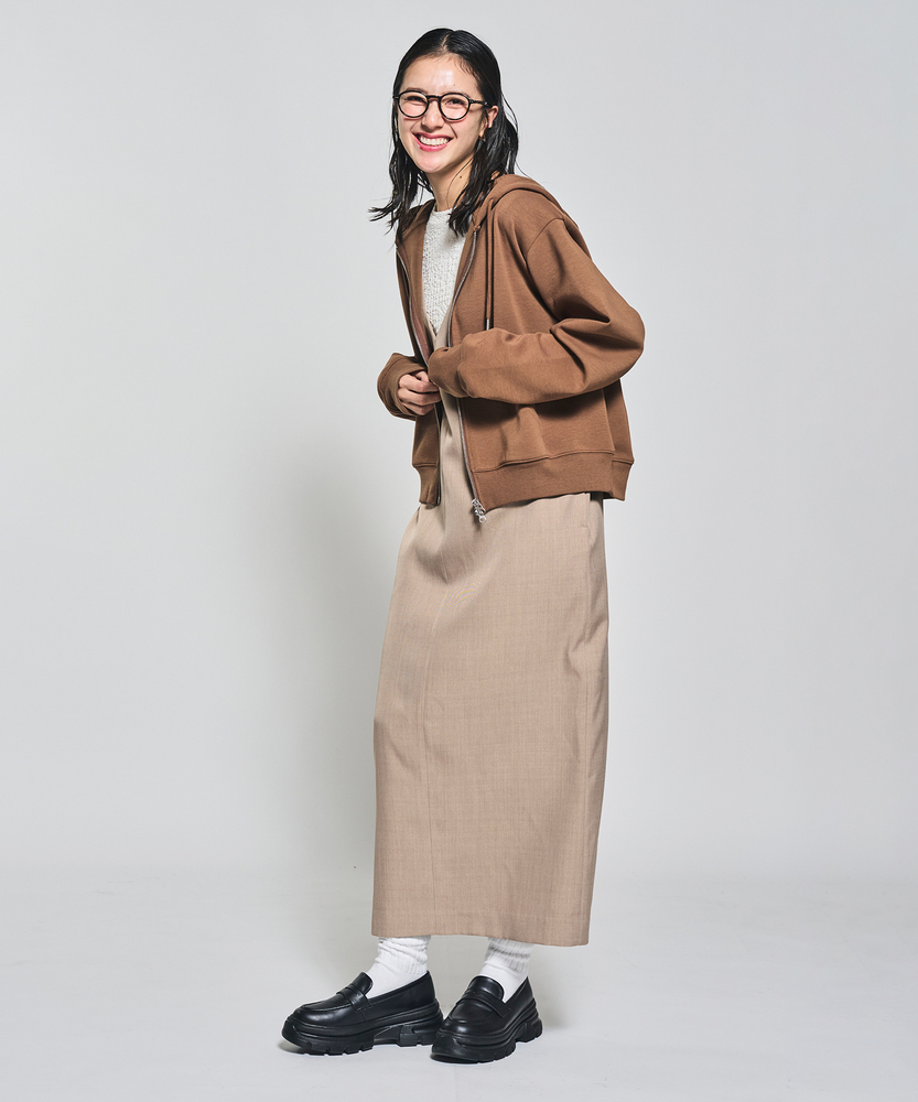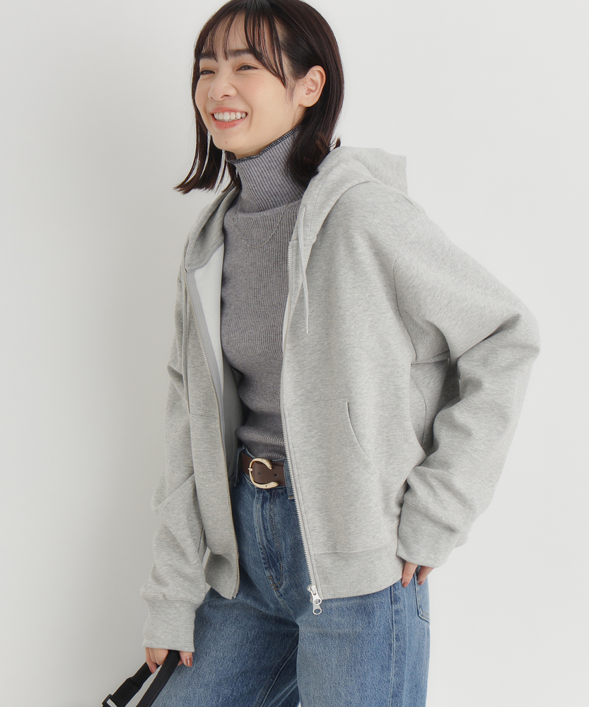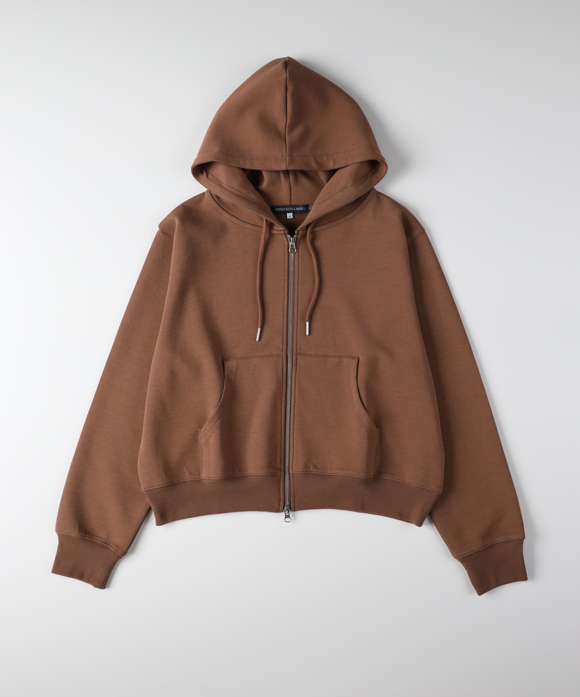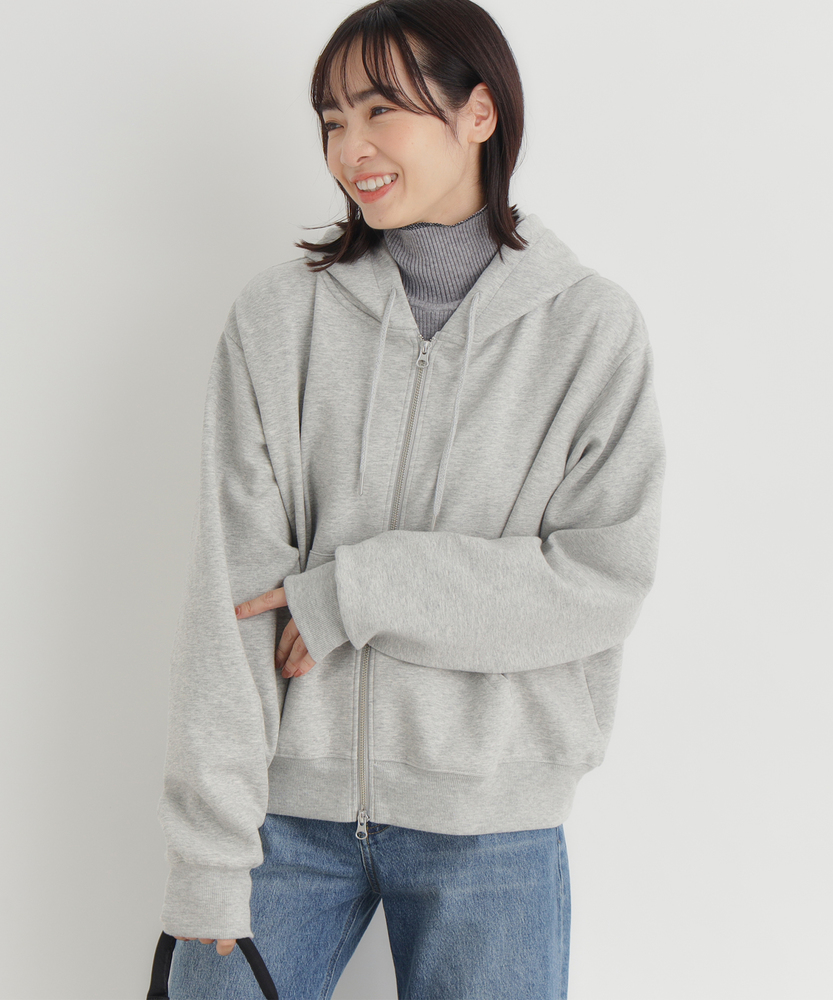 【仕様】レギュラーシルエットのダブルジップパーカーは、着回ししやすく、洗練された印象を与えます。フロントの両ジップデザインが、カジュアルさの中にもスタイリッシュさをプラス。シンプルかつ多機能な一着です。【素材】 ハリ感のあるダンボール素材を使用し、しっかりとしたボディながらも柔らかい着心地が特徴。軽量で通気性も良いため、季節を問わず快適に着用でき、日常のスタイルにアクセントを加えます。 【スタイリング】 カジュアルなパンツと合わせてラフなスタイルを楽しむのはもちろん、ワンピースやスカートとのレイヤードもおすすめ。スニーカーやサンダルなど、足元をカジュアルに仕上げて、都会的なスタイルを演出しましょう。