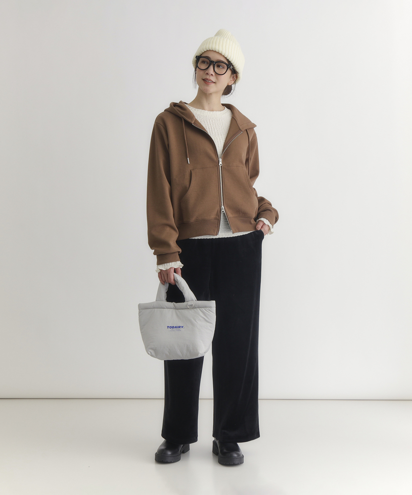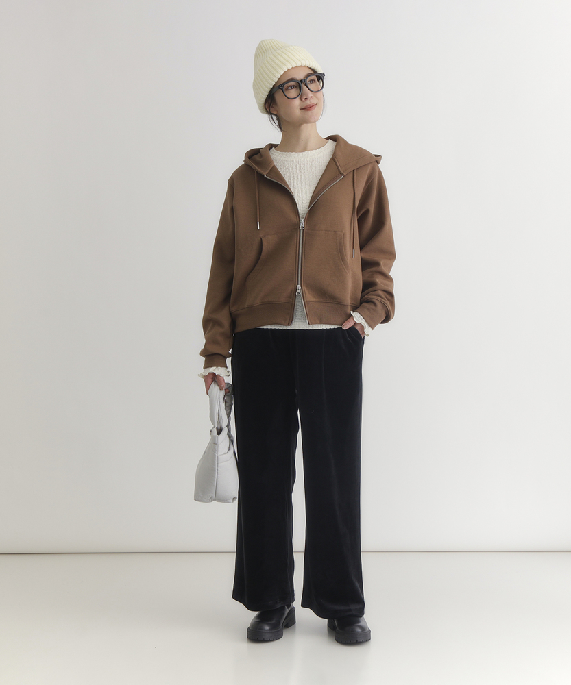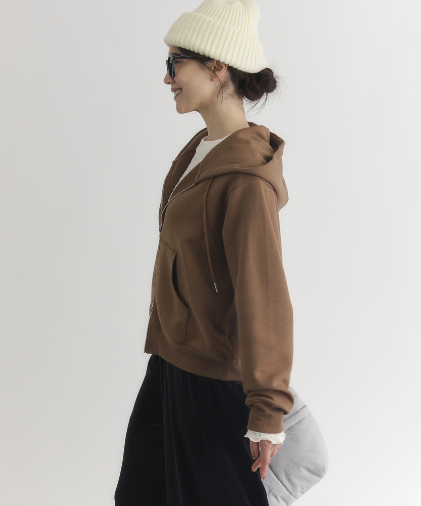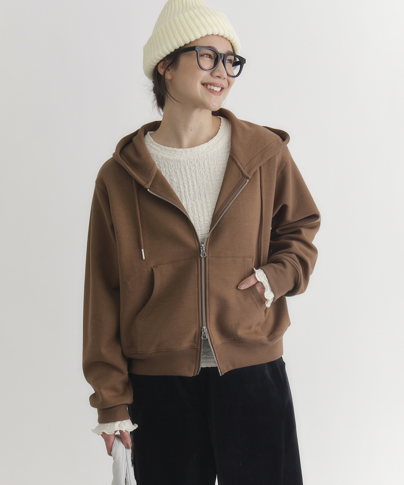 【仕様】レギュラーシルエットのダブルジップパーカーは、着回ししやすく、洗練された印象を与えます。フロントの両ジップデザインが、カジュアルさの中にもスタイリッシュさをプラス。シンプルかつ多機能な一着です。【素材】 ハリ感のあるダンボール素材を使用し、しっかりとしたボディながらも柔らかい着心地が特徴。軽量で通気性も良いため、季節を問わず快適に着用でき、日常のスタイルにアクセントを加えます。 【スタイリング】 カジュアルなパンツと合わせてラフなスタイルを楽しむのはもちろん、ワンピースやスカートとのレイヤードもおすすめ。スニーカーやサンダルなど、足元をカジュアルに仕上げて、都会的なスタイルを演出しましょう。