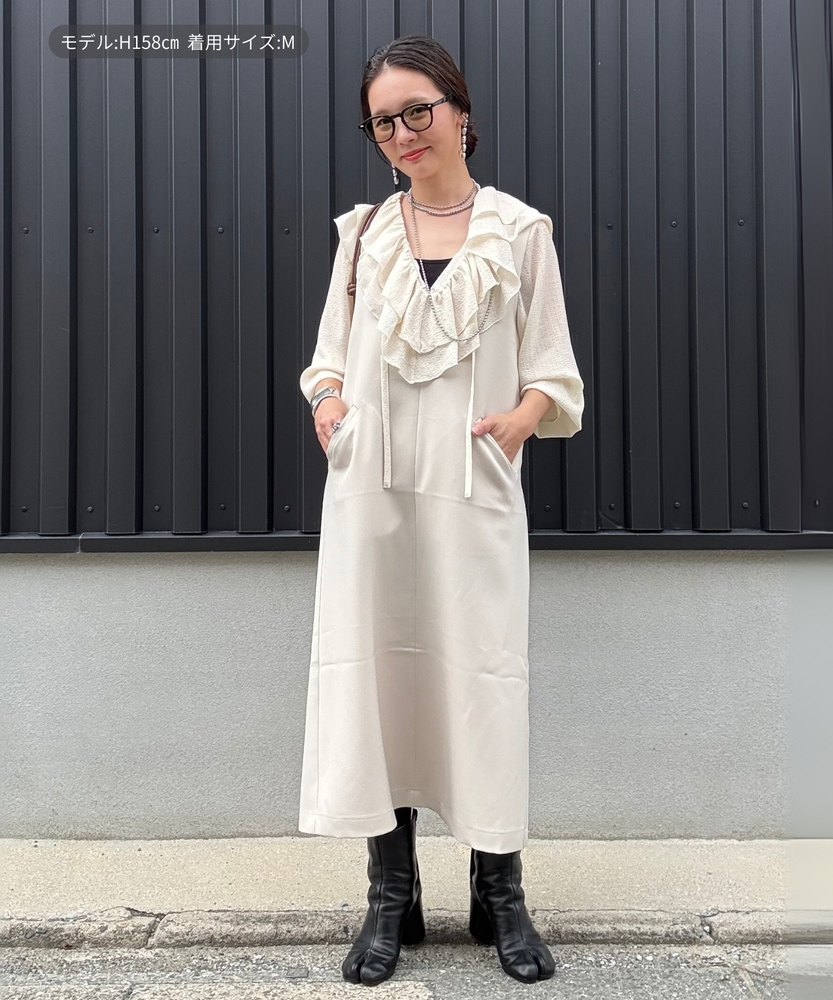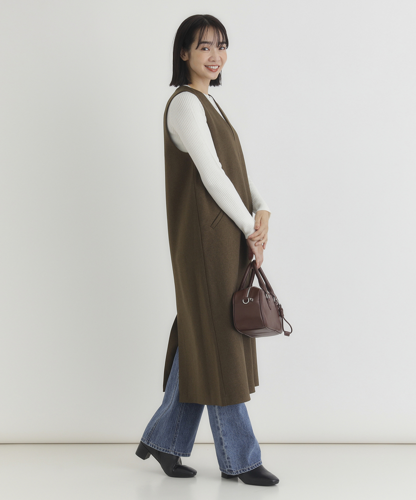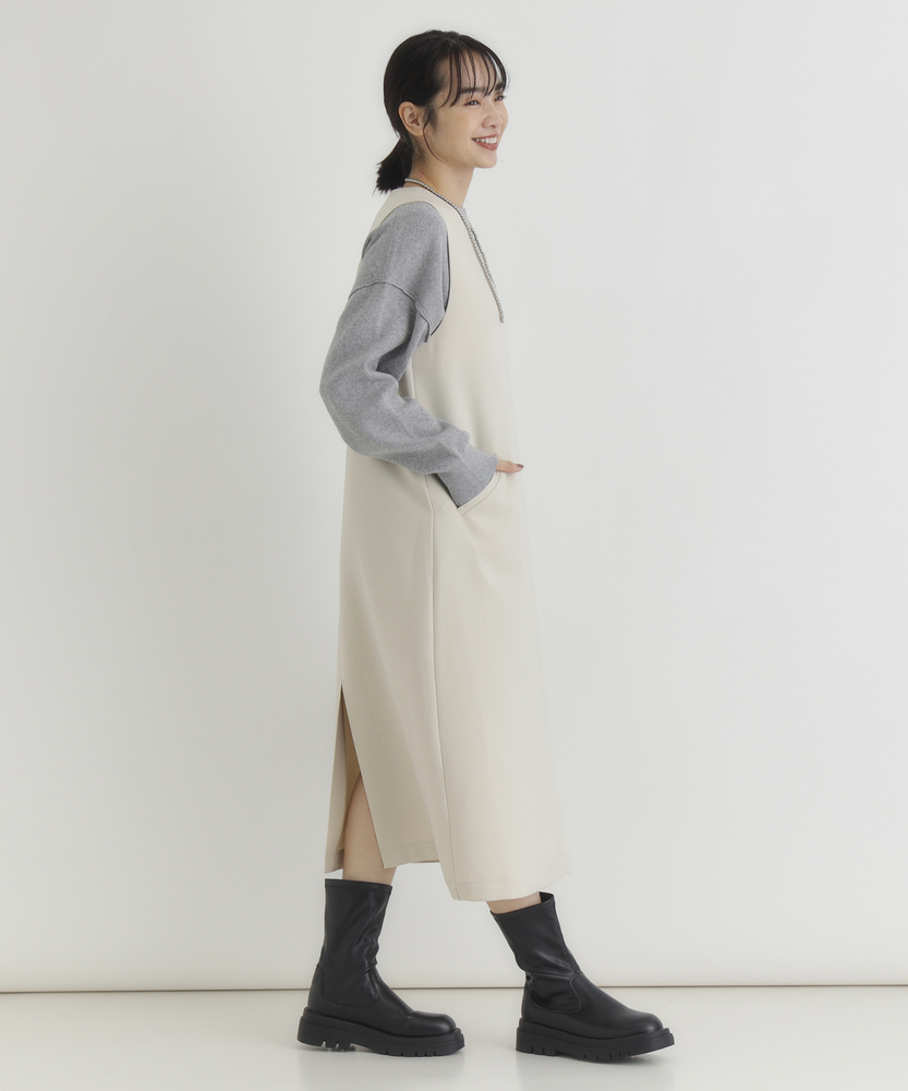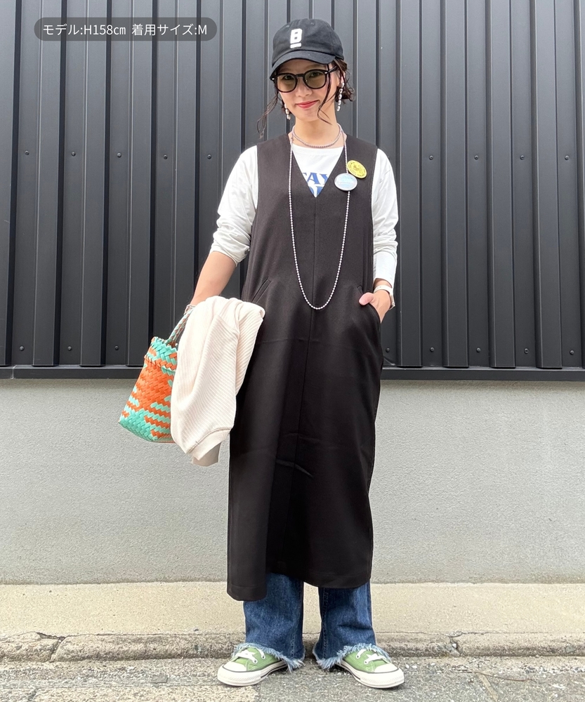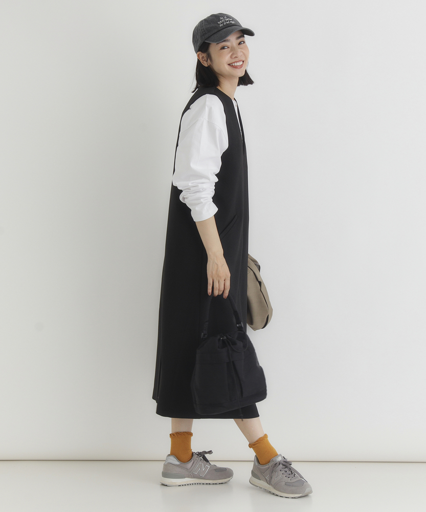 カジュアルはもちろん、キチン感を出す時にも!体型を拾いづらくスッキリ見えするワンピース。■Point・カジュアルにもキレイ目にも合わせられる汎用性。・Vネックで小顔効果も。・Iラインですっきり見え。・斜めに設置されたポケットはシルエットに配慮した仕様に。・ハリ感のある素材で体のラインを拾いにくい。・パンツのレイヤードスタイルにもおすすめ。【仕様】洗練されたベーシックなVネックワンピースは、トレンド感のあるデザインが魅力です。バックスリットが施されており、上品さを演出。シンプルながらも存在感のある一着です。【素材】 ポリエステル100%のツイル素材を使用しており、しっかりとした質感が特徴です。適度なゆとりがあり、重ね着を楽しむことができるため、季節を問わず活躍します。 【スタイリング】 シンプルなデザインなので、インナーにシャツやタートルネックを合わせてレイヤードスタイルを楽しむのがおすすめ。アクセサリーやシューズで個性をプラスし、オールシーズンで多彩なコーディネートが可能です。※こちらの商品はEC、一部店舗での限定展開となります。また店頭での発売日と前後する可能性がございます。予めご了承下さい。