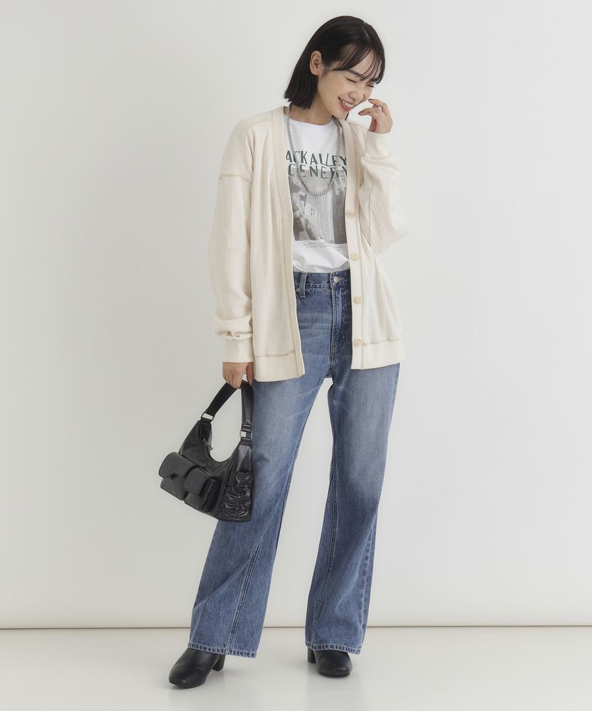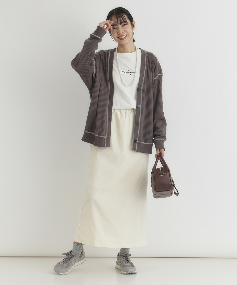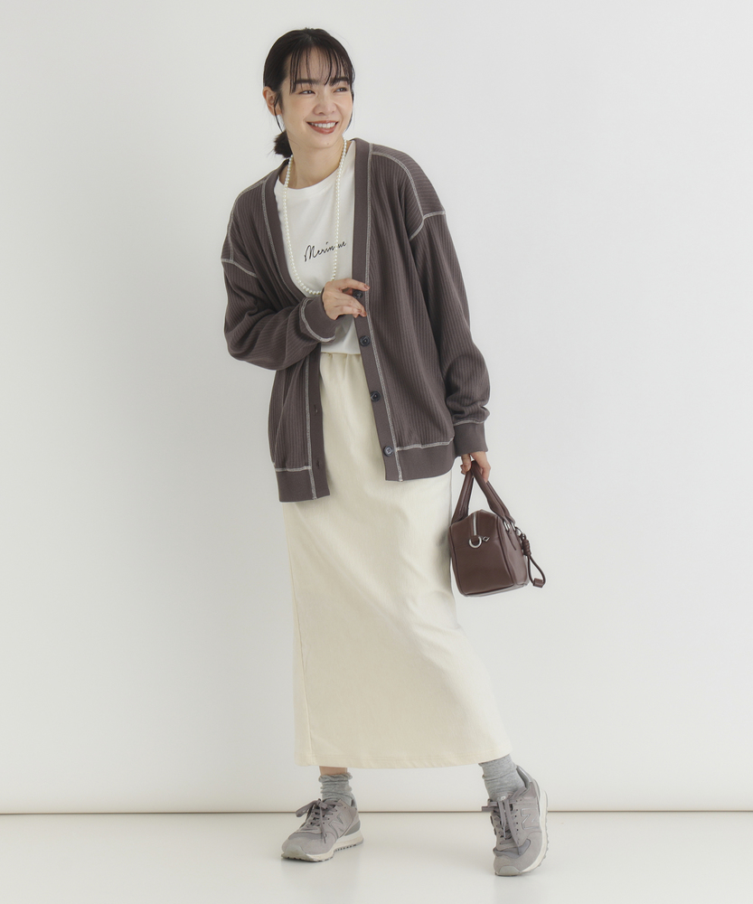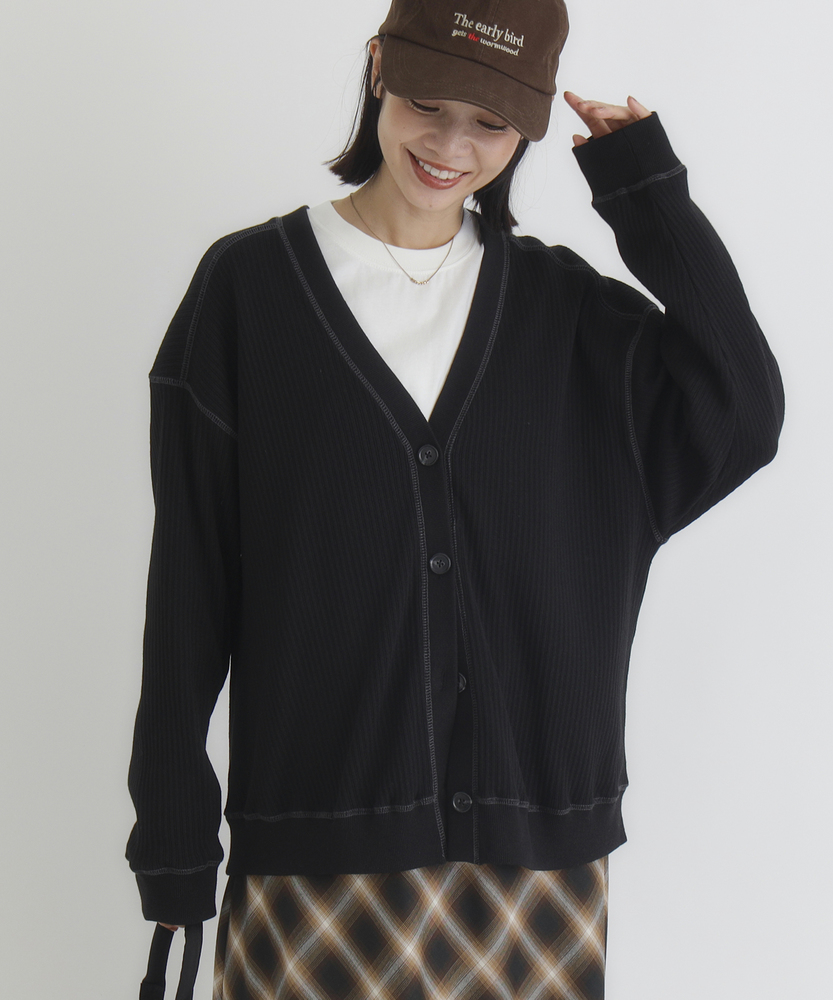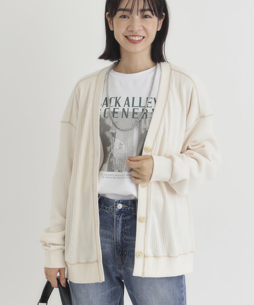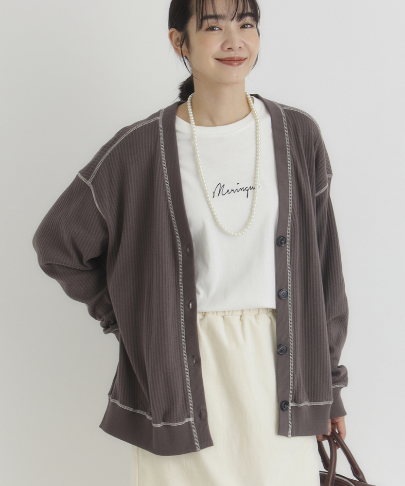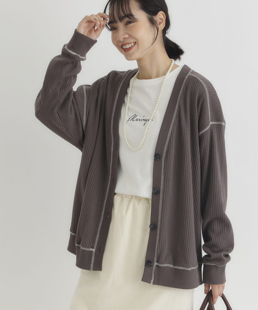 カーデが苦手な方にこそオススメ。お尻も隠せて体型カバーも叶えるカットソー素材のカーディガン。■Point・ゆったりめのシルエット。・後ろ丈はヒップも隠れる絶妙な長さの着丈。・リブ素材で見た目もスッキリ。・ドロップショルダーでワイドな身幅。・寒暖差の大きい時期にピッタリな羽織アイテム。・カッソー素材なので毛玉を気にせず気軽に羽織れる&お洗濯にも◎【仕様】シンプルでありながらも洗練された印象のカットカーディガン。リブ編みのテクスチャーが特徴で、すっきりとしたシルエットが魅力です。ボタン付きのデザインは、幅広いスタイルに対応します。【素材】 柔らかなカット素材を使用し、快適な着心地を実現。伸縮性があり、動きやすさを考慮したデザインです。通気性にも優れ、季節を問わず快適に着用できるため、デイリーユースに最適です。 【スタイリング】 Tシャツやシャツの上にさらっと羽織るスタイルがおすすめ。デニムやチノパンと合わせることで、カジュアルでありながらも洗練された雰囲気に。レイヤードスタイルにも活躍し、マルチに使えるアイテムです。※こちらの商品はEC、一部店舗での限定展開となります。また店頭での発売日と前後する可能性がございます。予めご了承下さい。