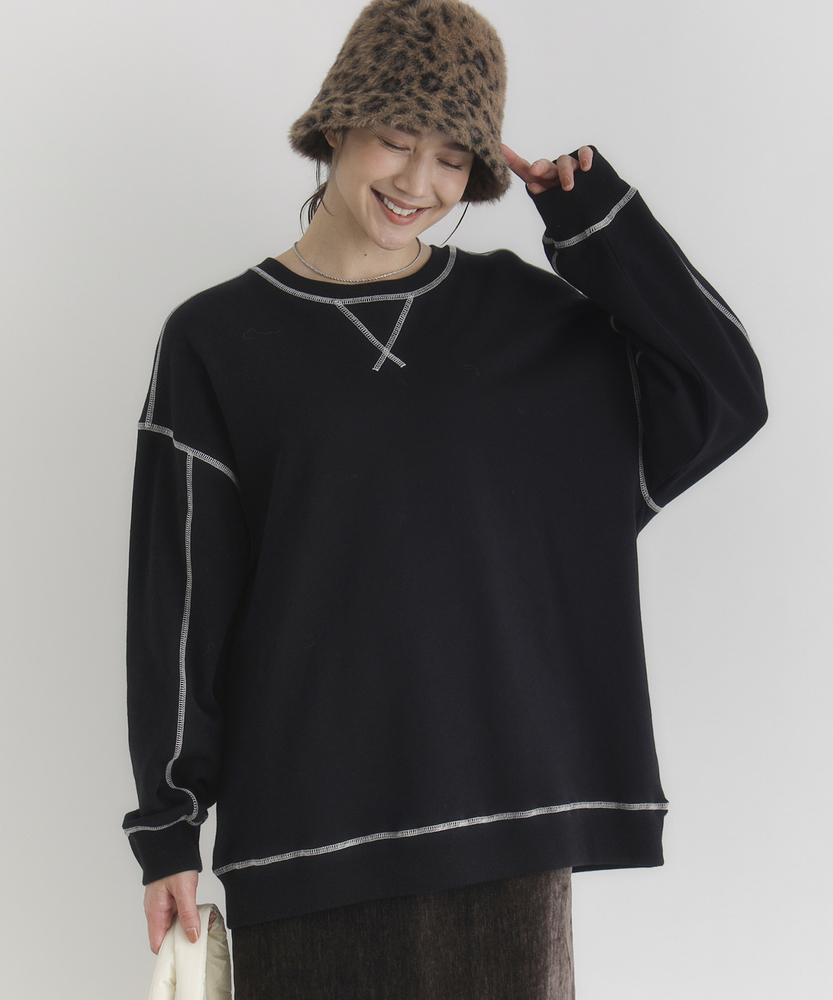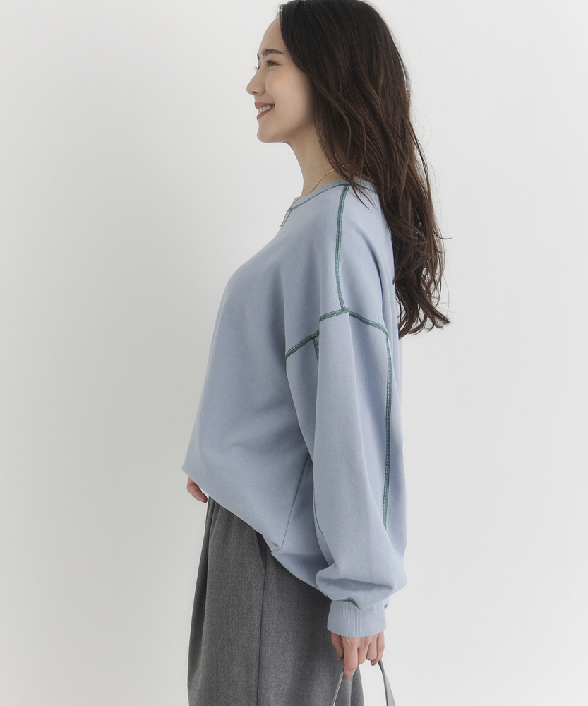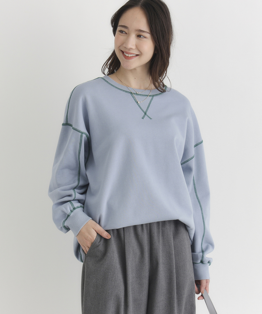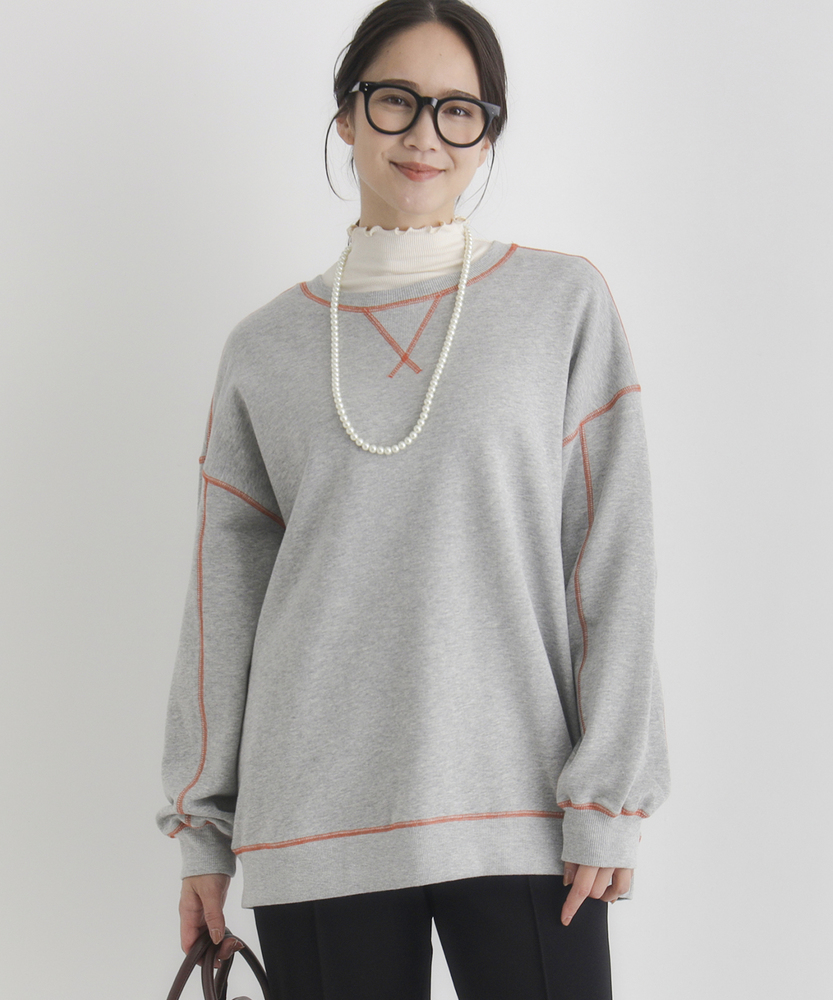 【仕様】配色ステッチがアクセントのクルーネックスウェットプルオーバー。シンプルなシルエットに、遊び心をプラスしたデザインは、カジュアルな日常着にぴったり。ゆったりとしたシルエットが、リラックスしたスタイルを提供します。【素材】 柔らかなコットンを使用し、快適な着心地を実現。スウェット素材は通気性が良く、デイリーユースに最適。洗濯後も形を崩さず、長く愛用できる耐久性を備えています。 【スタイリング】 ゆったりとしたパンツと合わせることで、リラックスしたカジュアルスタイルを楽しめます。スカートと合わせることで、女性らしさを引き立てたコーディネートも可能。アクセサリーやスニーカーで個性を演出し、自分らしいスタイルを楽しんでください。
