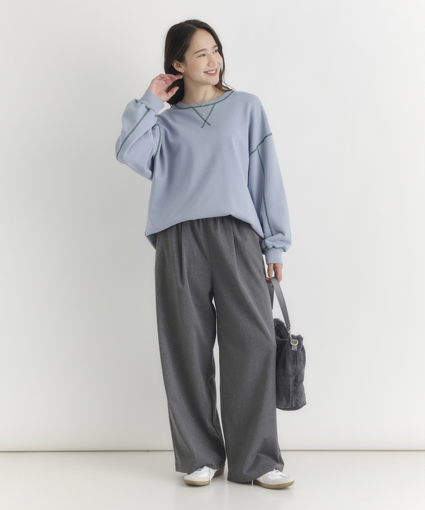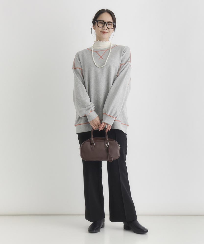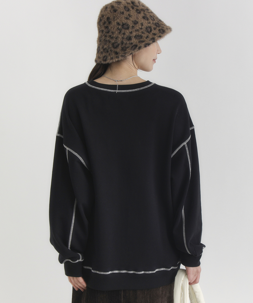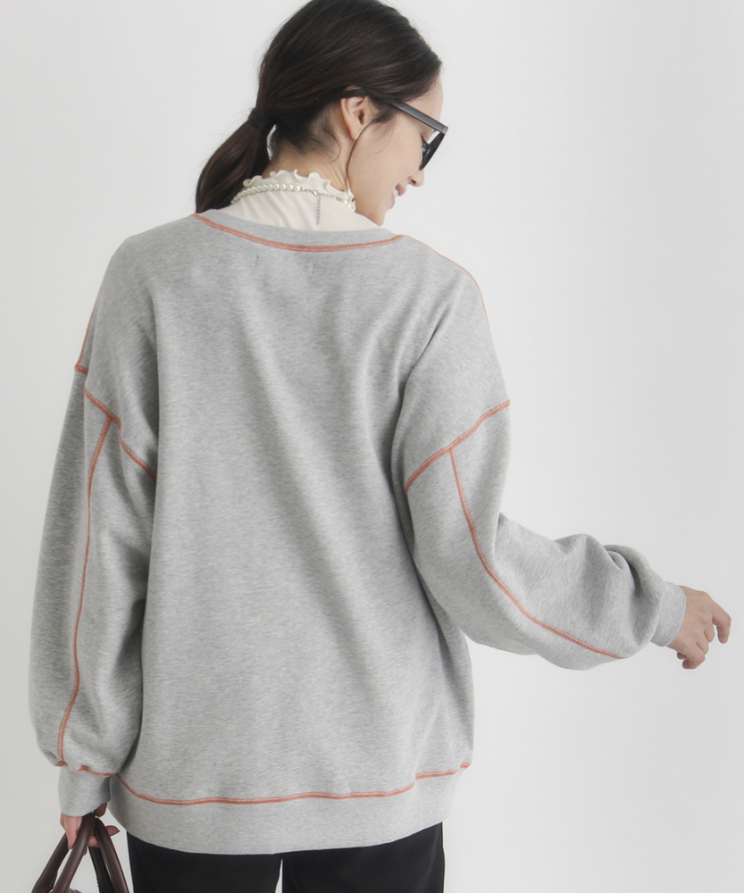 【仕様】配色ステッチがアクセントのクルーネックスウェットプルオーバー。シンプルなシルエットに、遊び心をプラスしたデザインは、カジュアルな日常着にぴったり。ゆったりとしたシルエットが、リラックスしたスタイルを提供します。【素材】 柔らかなコットンを使用し、快適な着心地を実現。スウェット素材は通気性が良く、デイリーユースに最適。洗濯後も形を崩さず、長く愛用できる耐久性を備えています。 【スタイリング】 ゆったりとしたパンツと合わせることで、リラックスしたカジュアルスタイルを楽しめます。スカートと合わせることで、女性らしさを引き立てたコーディネートも可能。アクセサリーやスニーカーで個性を演出し、自分らしいスタイルを楽しんでください。