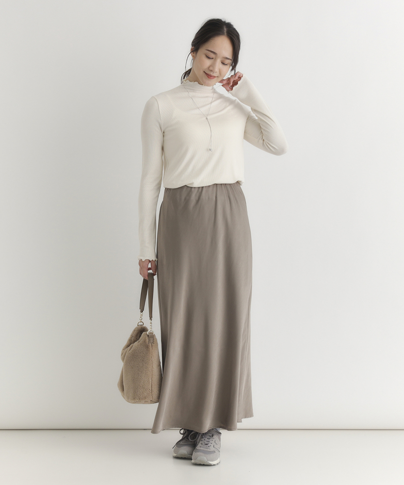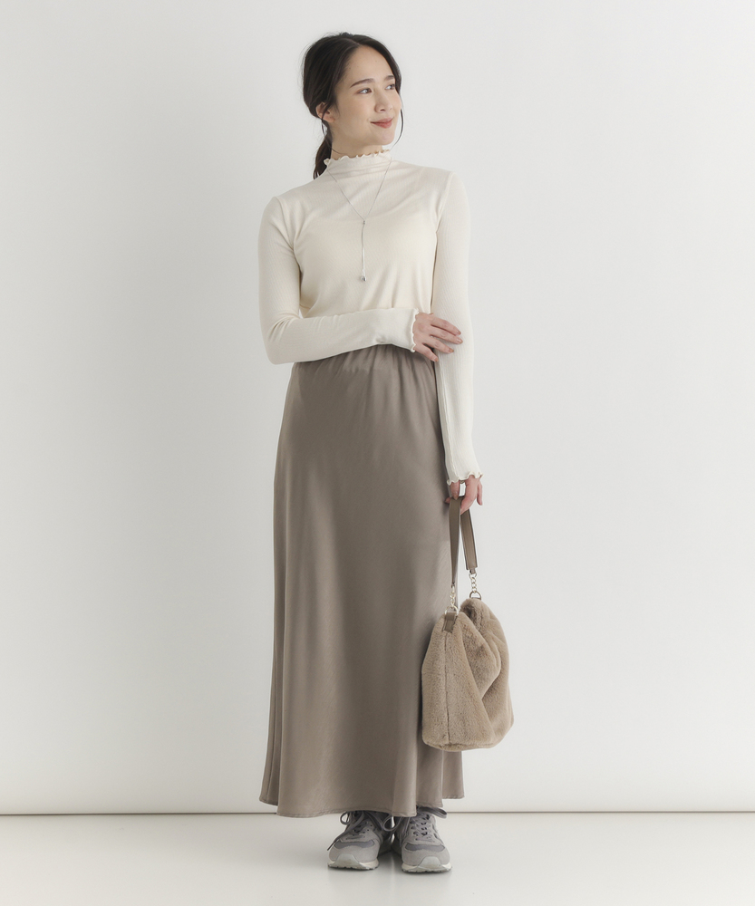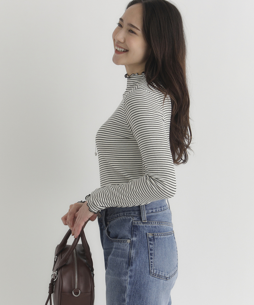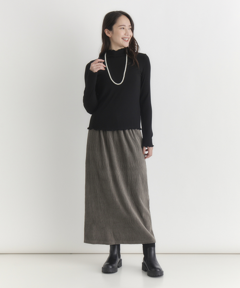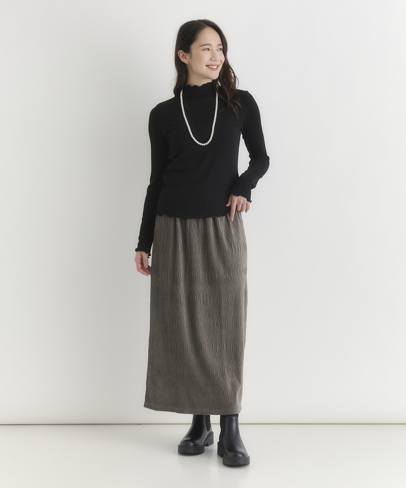 【仕様】メロウデザインが特徴のハイネックロングスリーブプルオーバー。レギュラーフィットで、体に優しくフィットしながらも、着やすさを追求したベーシックなシルエットです。【素材】 柔らかい素材を使用しており、心地良い着心地を実現。ハイネックデザインによって暖かさを保ちながら、メロウのディテールが柔らかさを演出。シーズンレスで活躍すること間違いなしです。 【スタイリング】 カジュアルなパンツやスカートと合わせたカジュアルスタイルはもちろん、ジャケットのインナーとしても活用できます。レイヤリングもしやすく、様々なスタイルにアレンジ可能なアイテムとして重宝します。